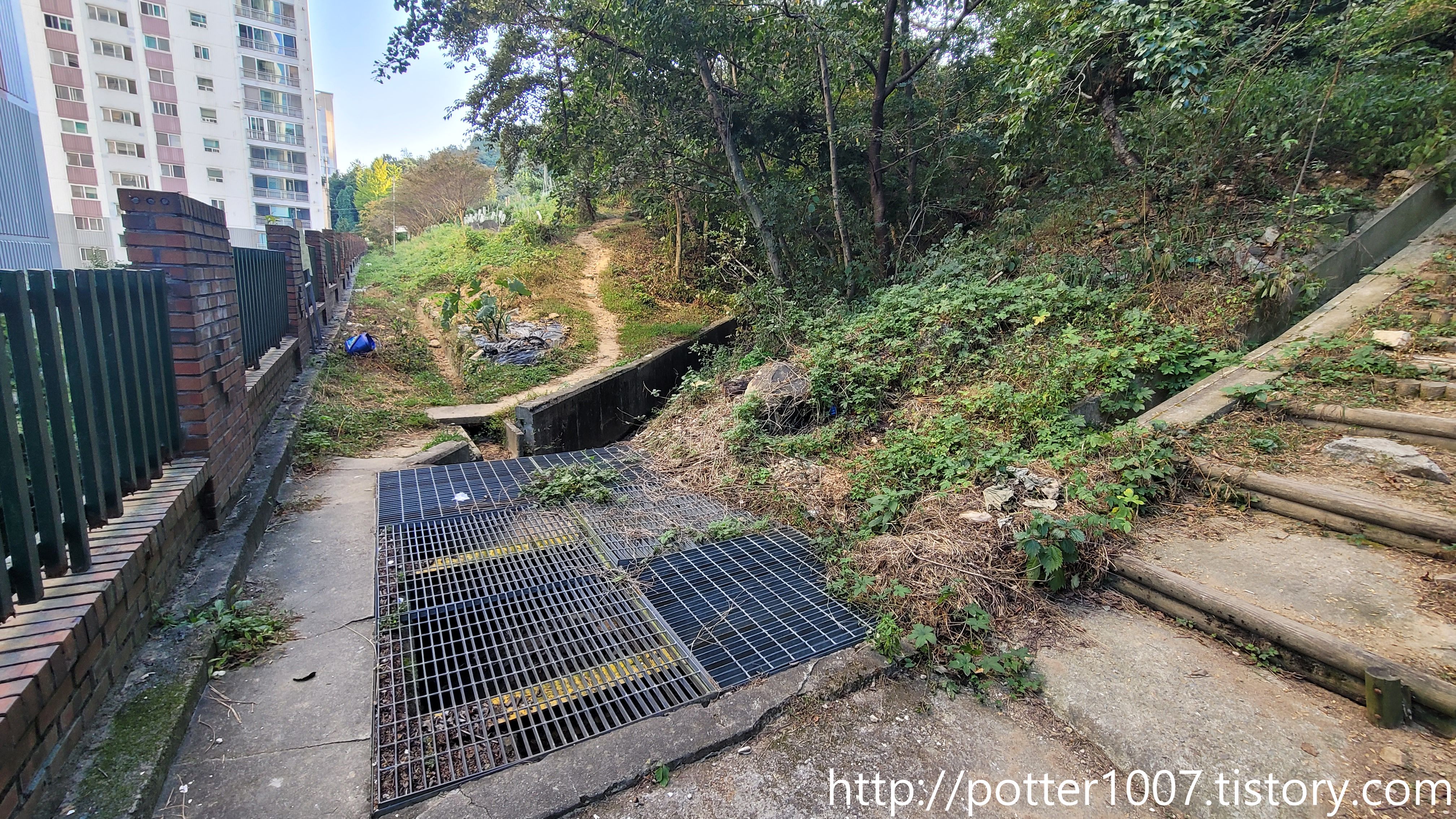 사진과 같이 더이상의 접근을 불허하는듯이 풀들이 자라있어서 이정도까지만 보았습니다. 그래도 광복천으로 들어가는 물길중 비교적 물 흐름을 잘 볼수 있는 지천이라 할수 있습니다.
