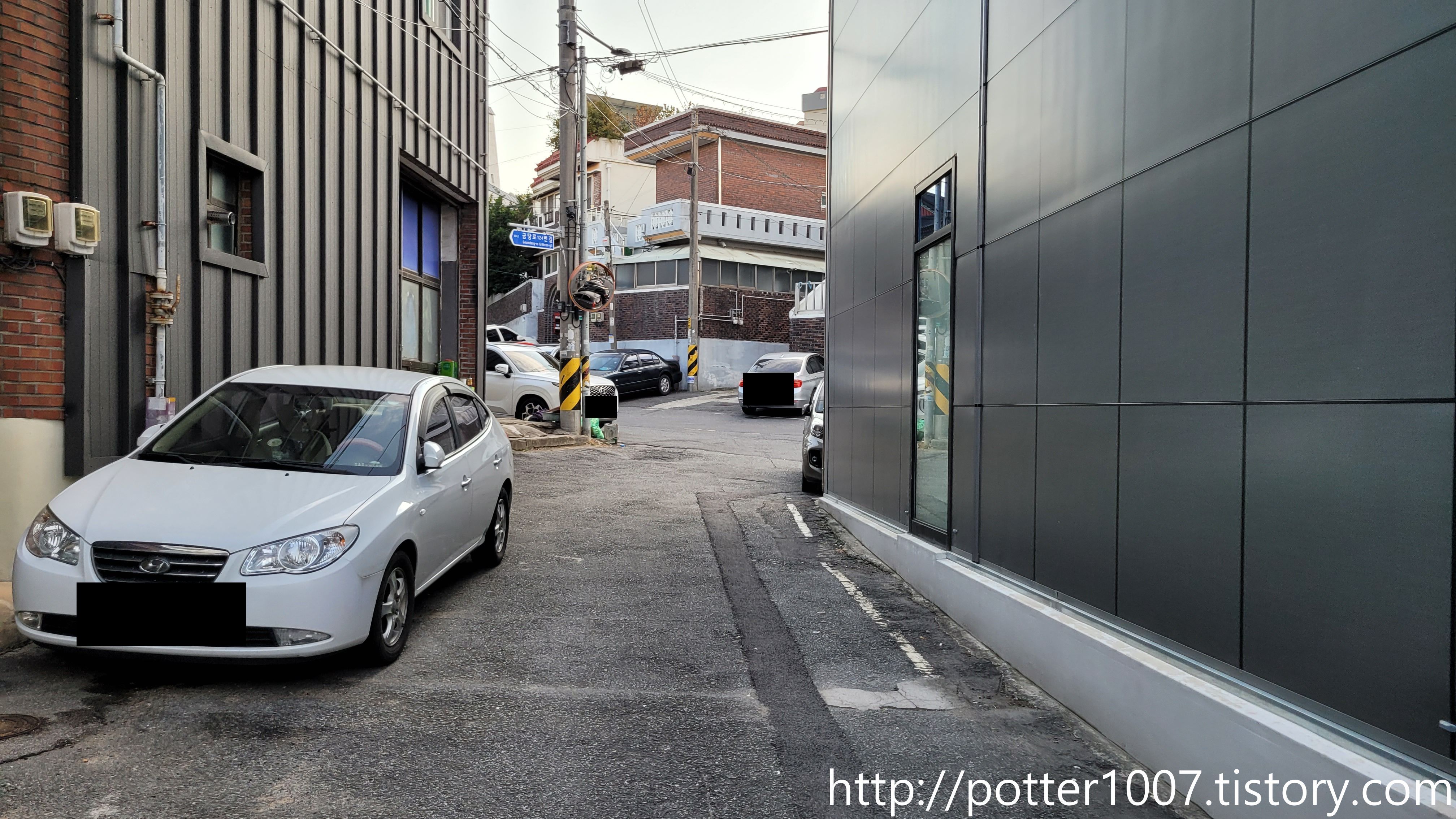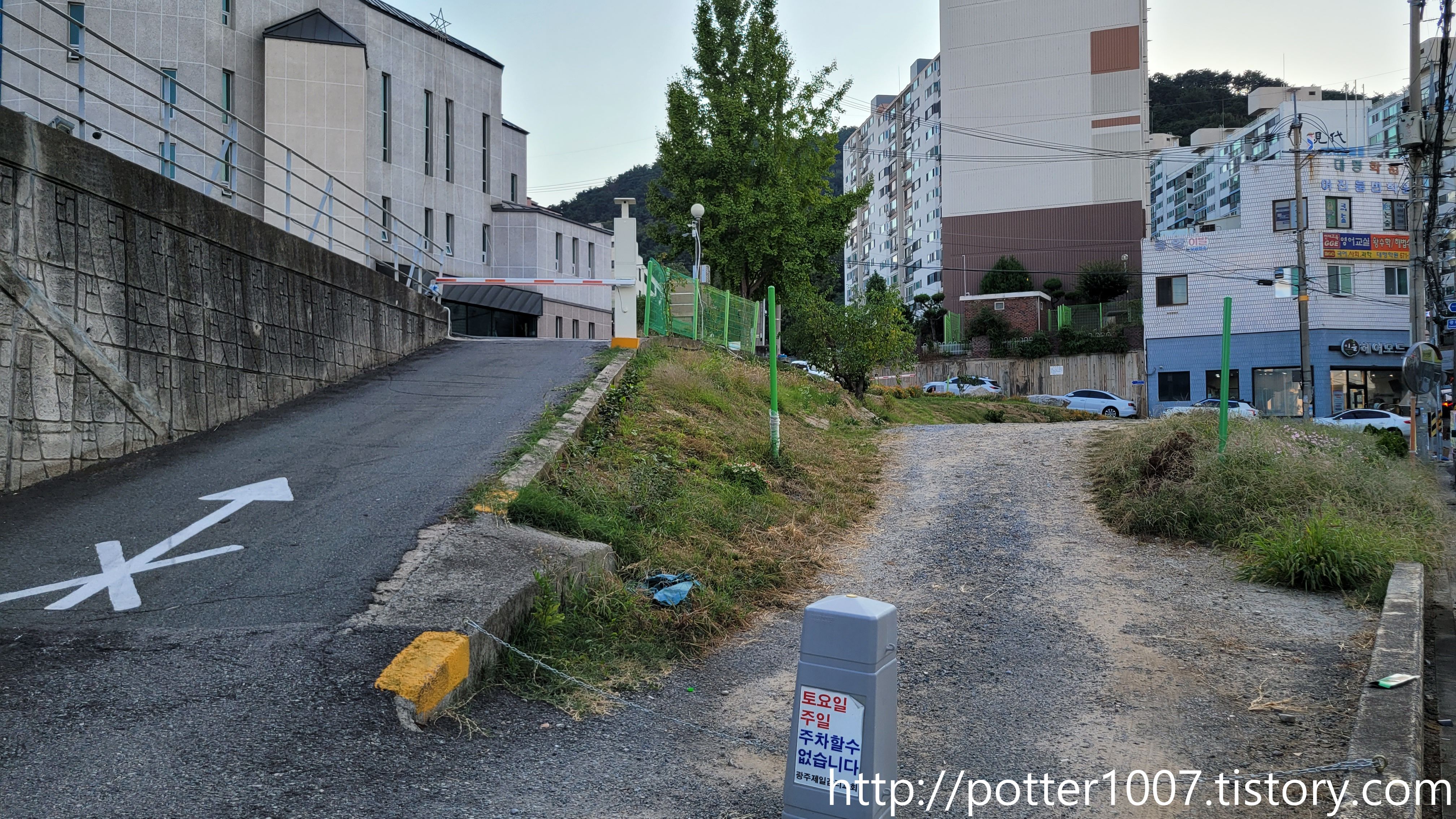 바로 이쪽인데 왼편은 교회 주차장 입구이고 오른편은 공터입니다.