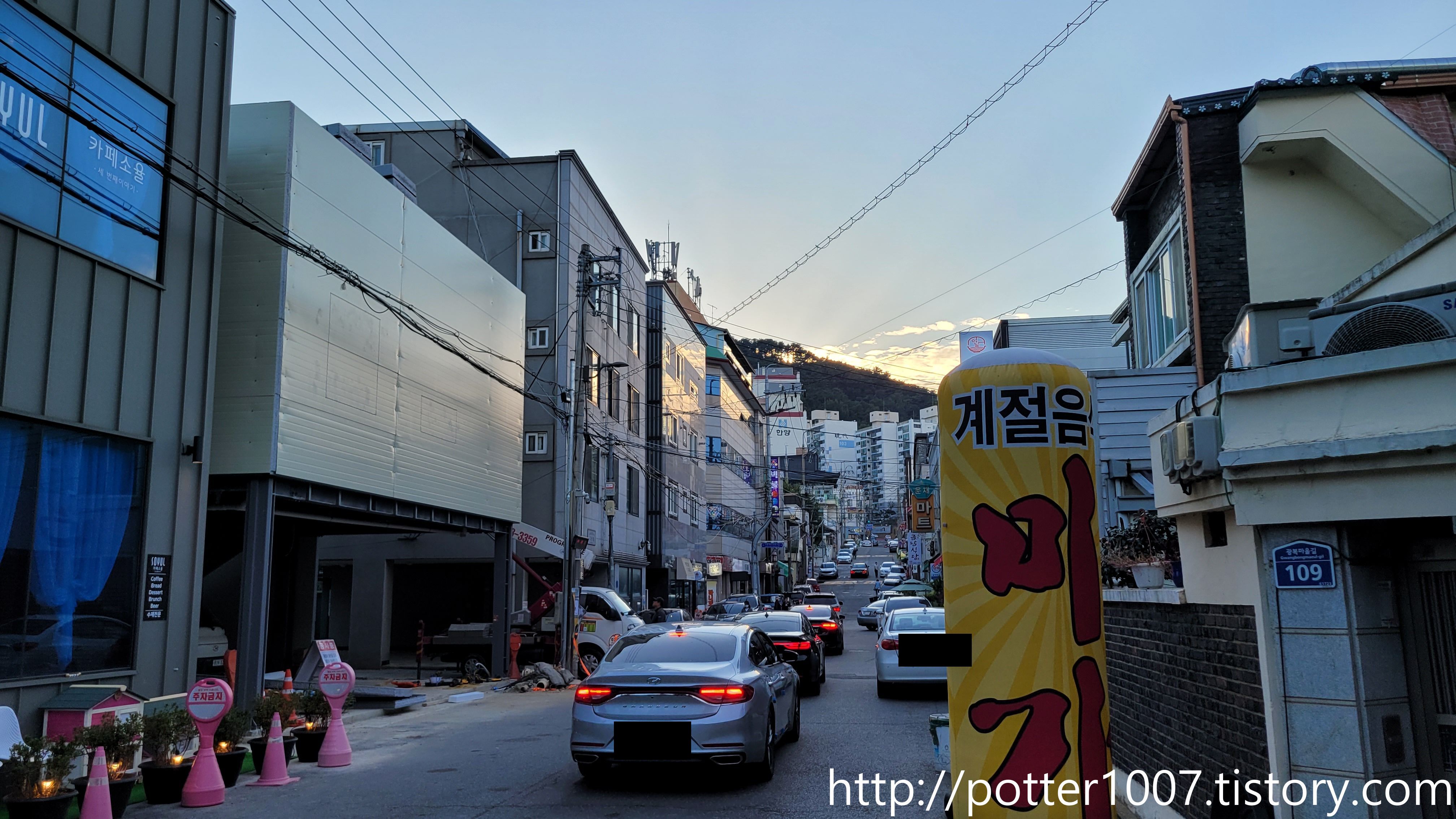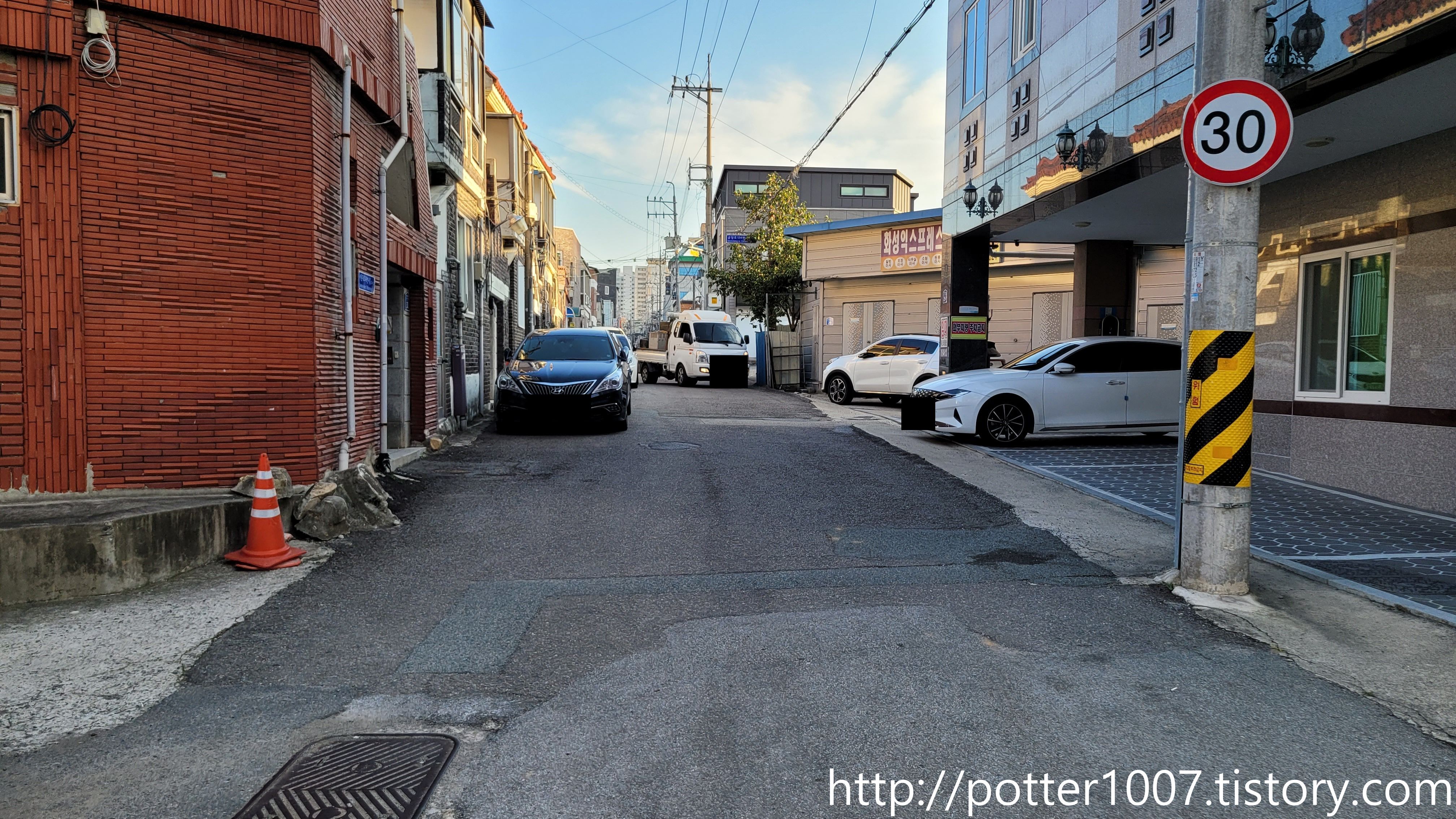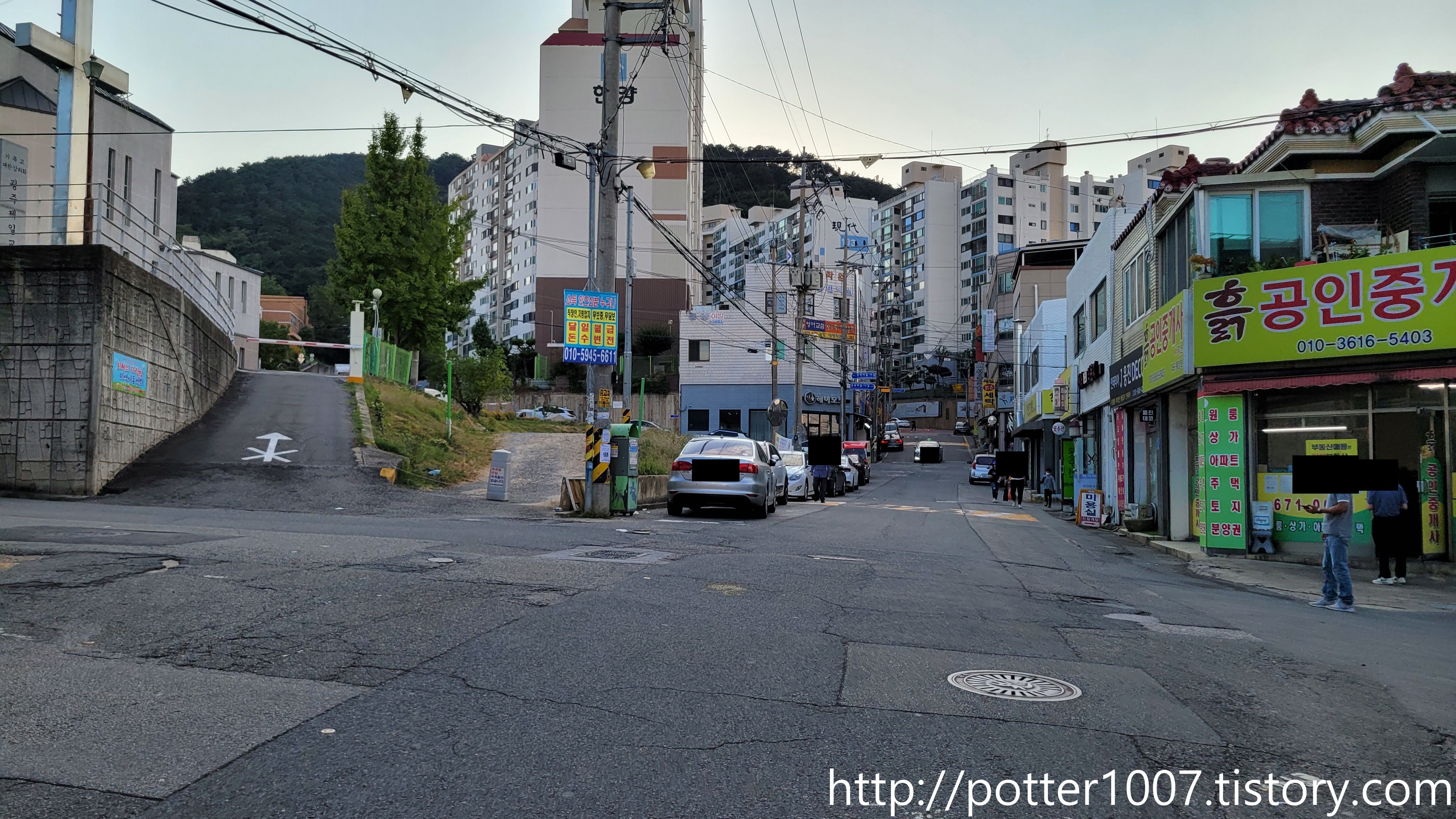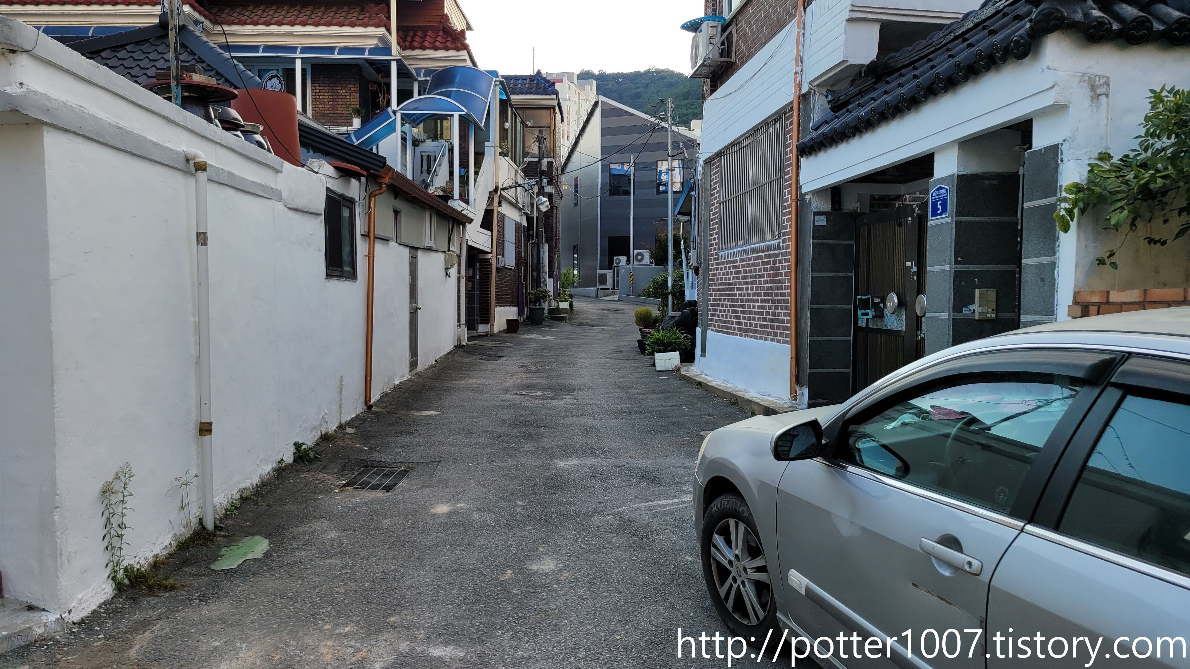 반대편 모습인데, 보통이면 정면의 광복마을 7길을 따라 흘러나올것 같아 보이지만, 실제로는 왼편의 샛길에서 흘러나옵니다.