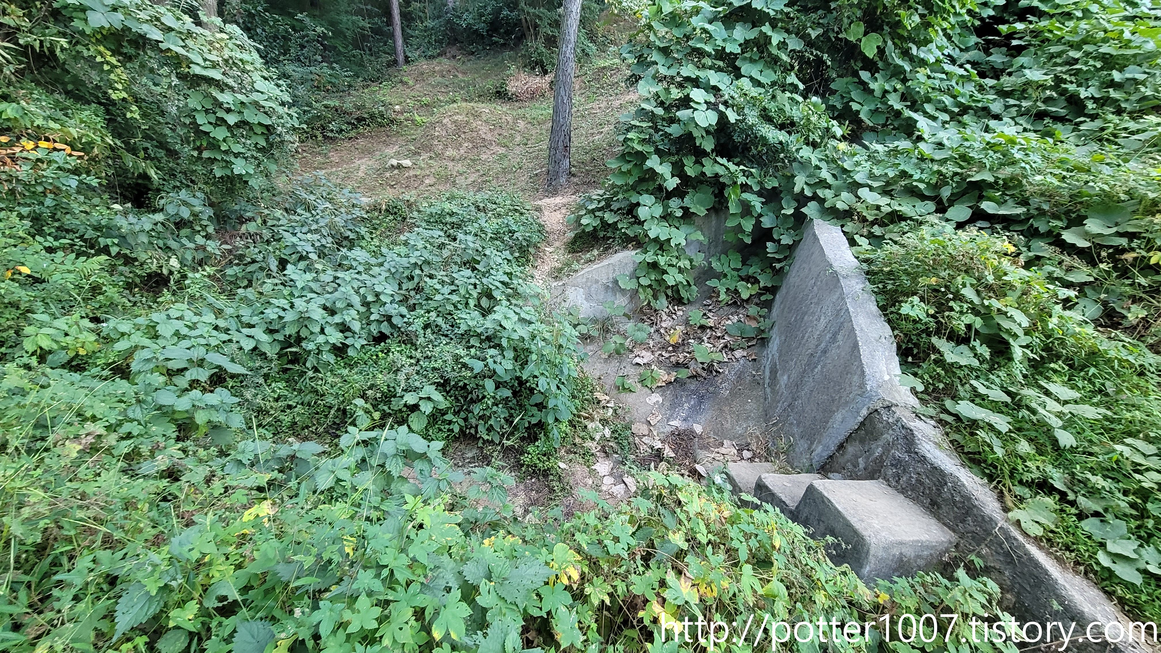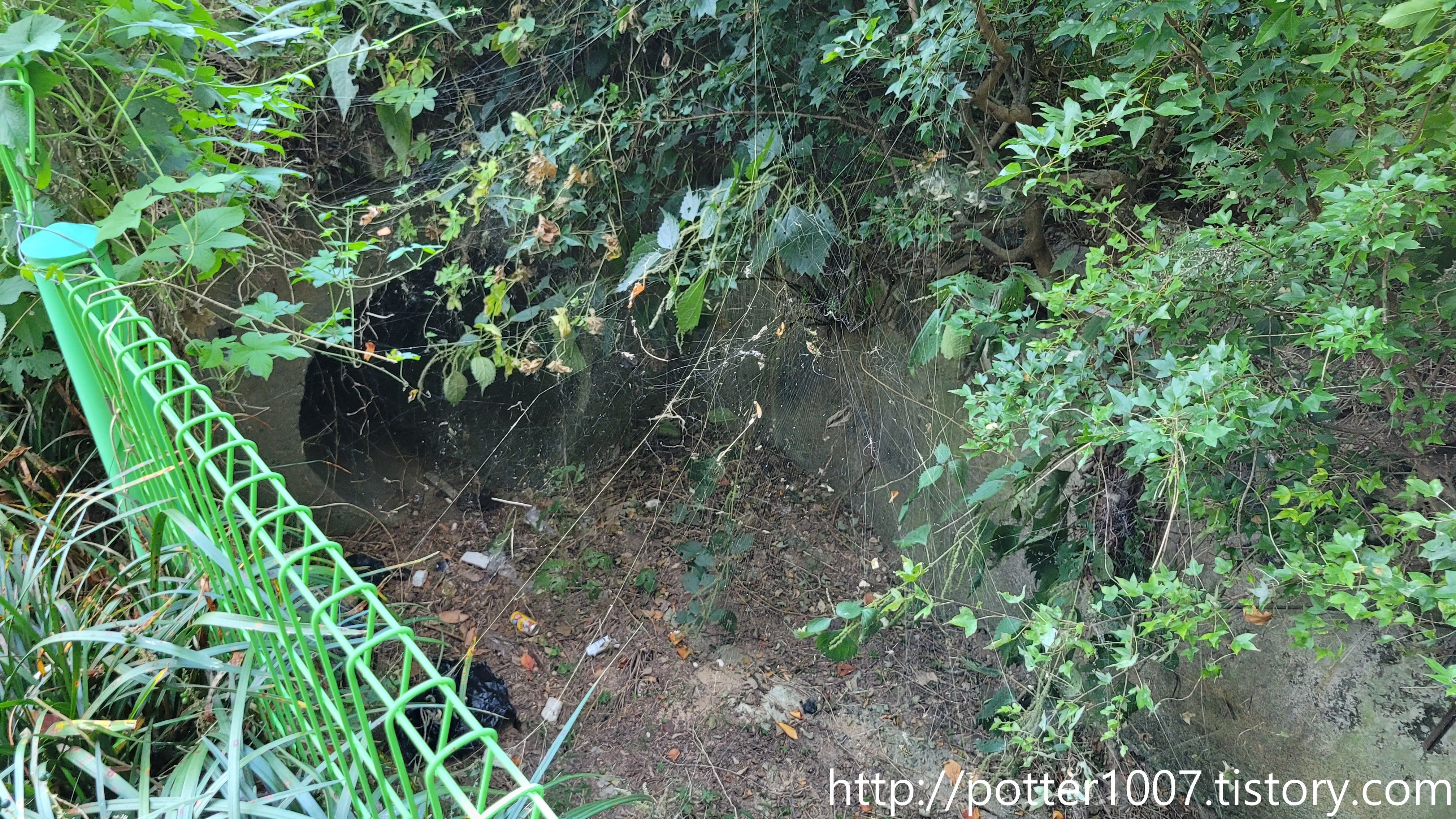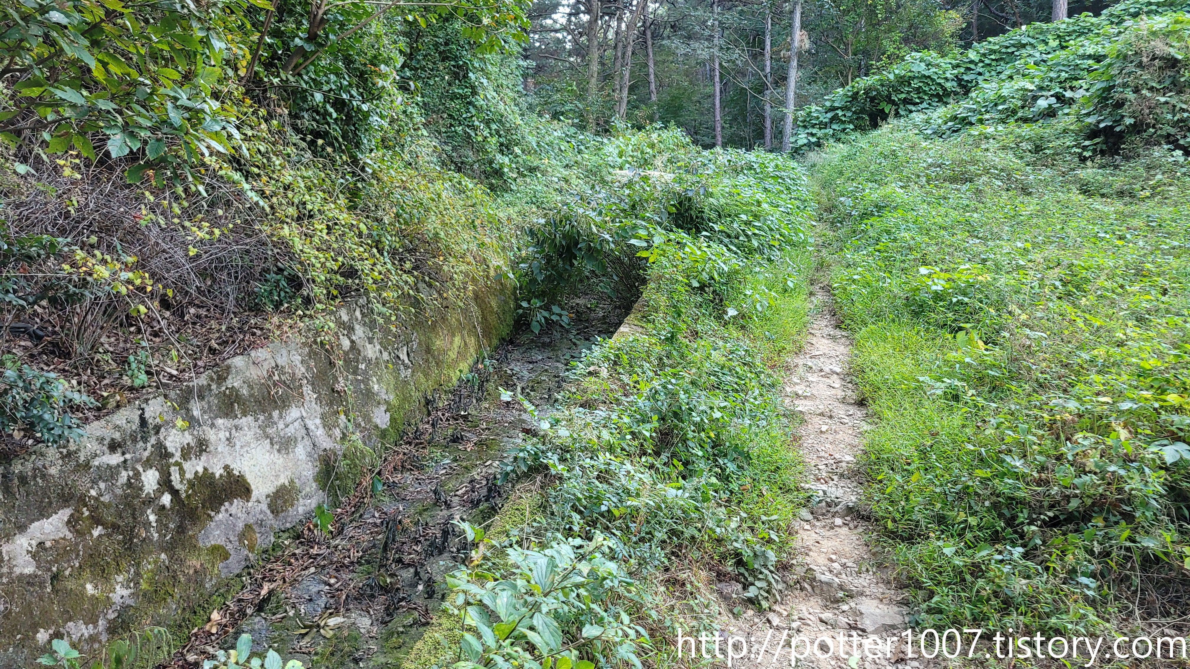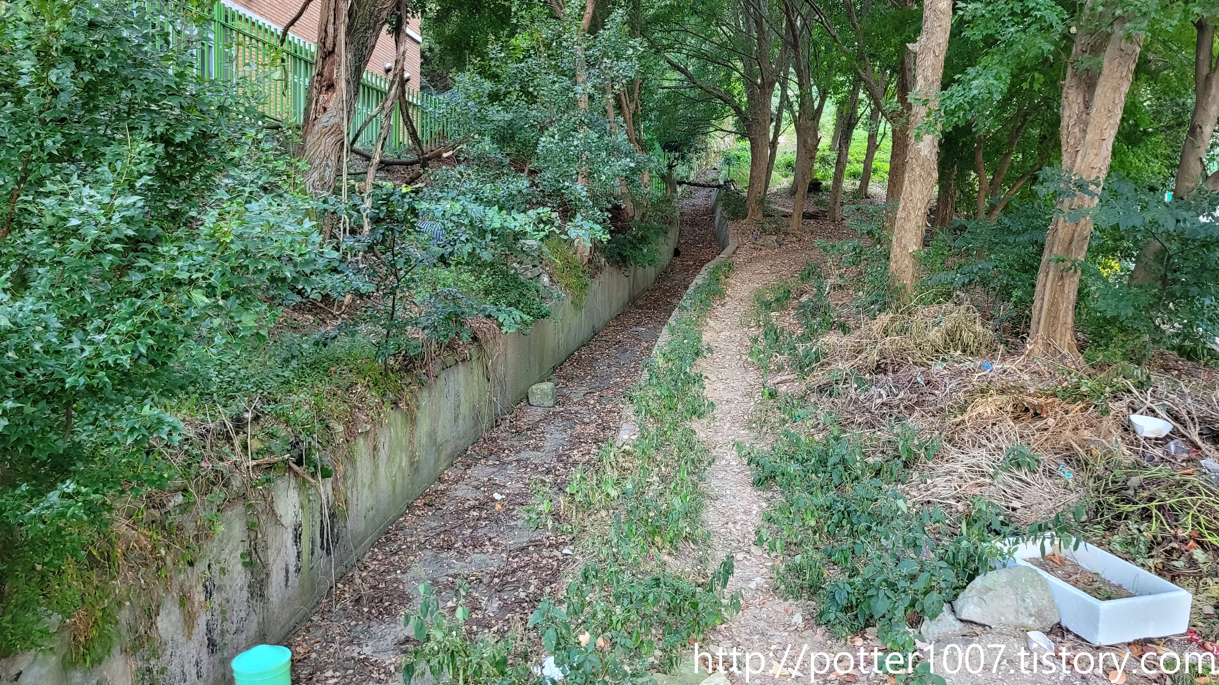 일부는 수풀에 덮혔군요. 그나마 배수로처럼 양옆에 콘크리트 석축이 있어서 묻히지는 않았습니다.