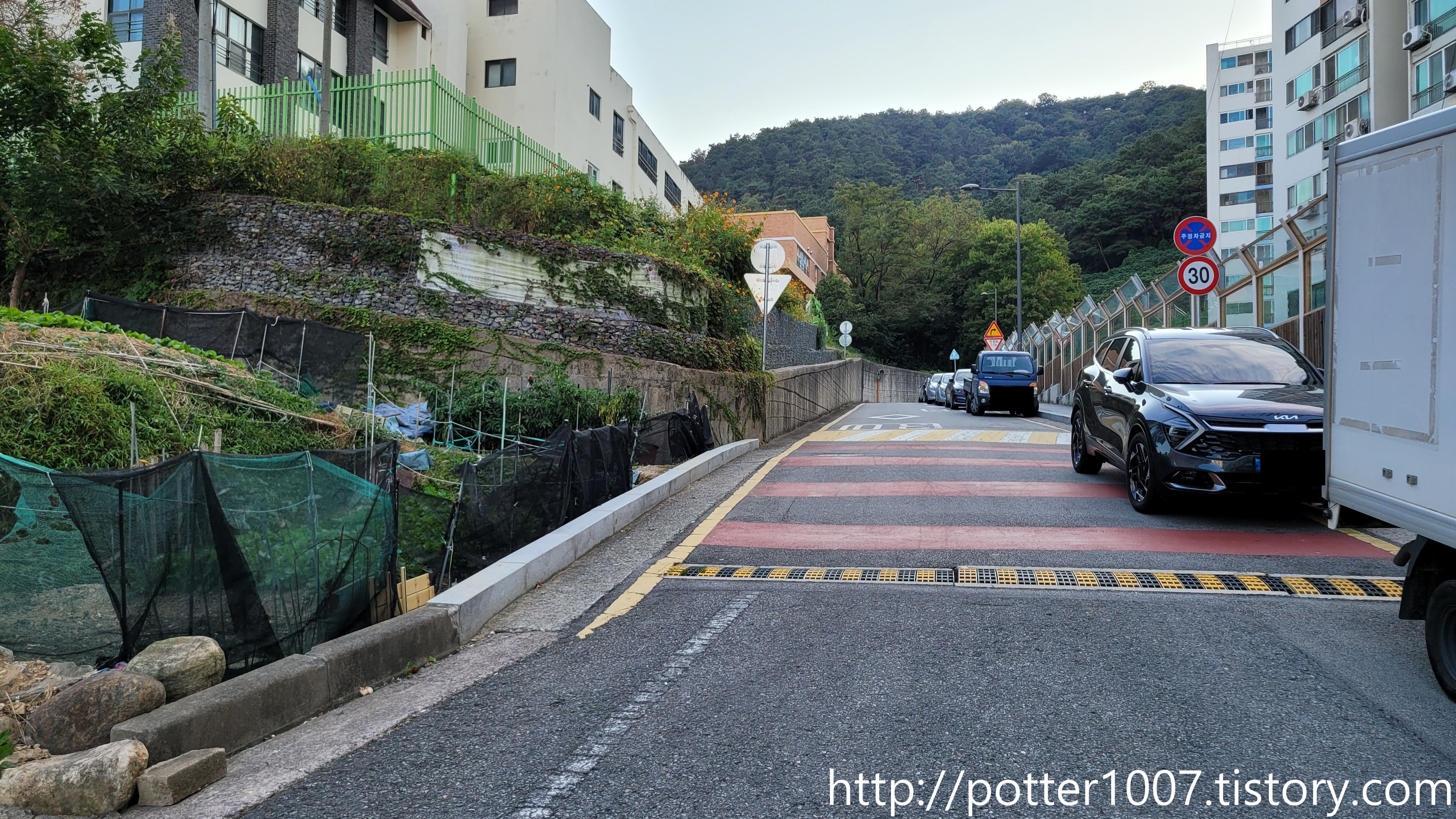 아파트로 들어가봤자 의미가 없으므로 왼편의 계단으로 올라갑니다.