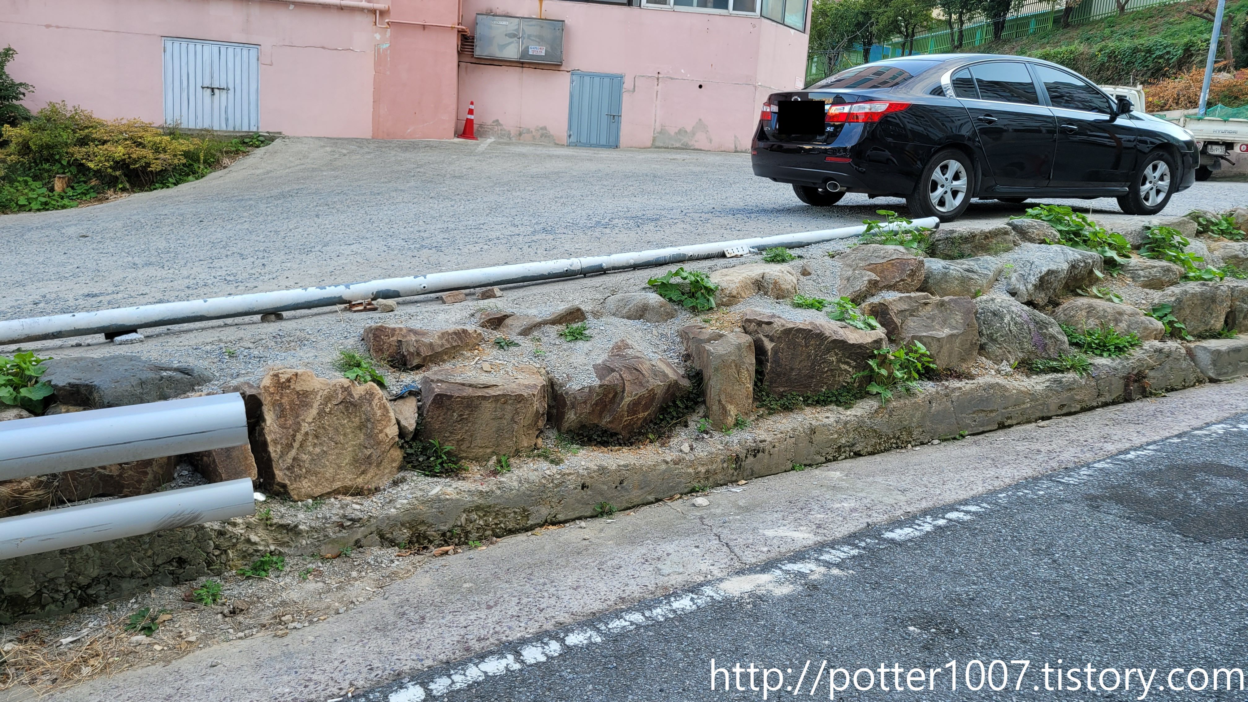 다리에서나 쓰일법한 난간이 도로옆에 붙어있습니다.