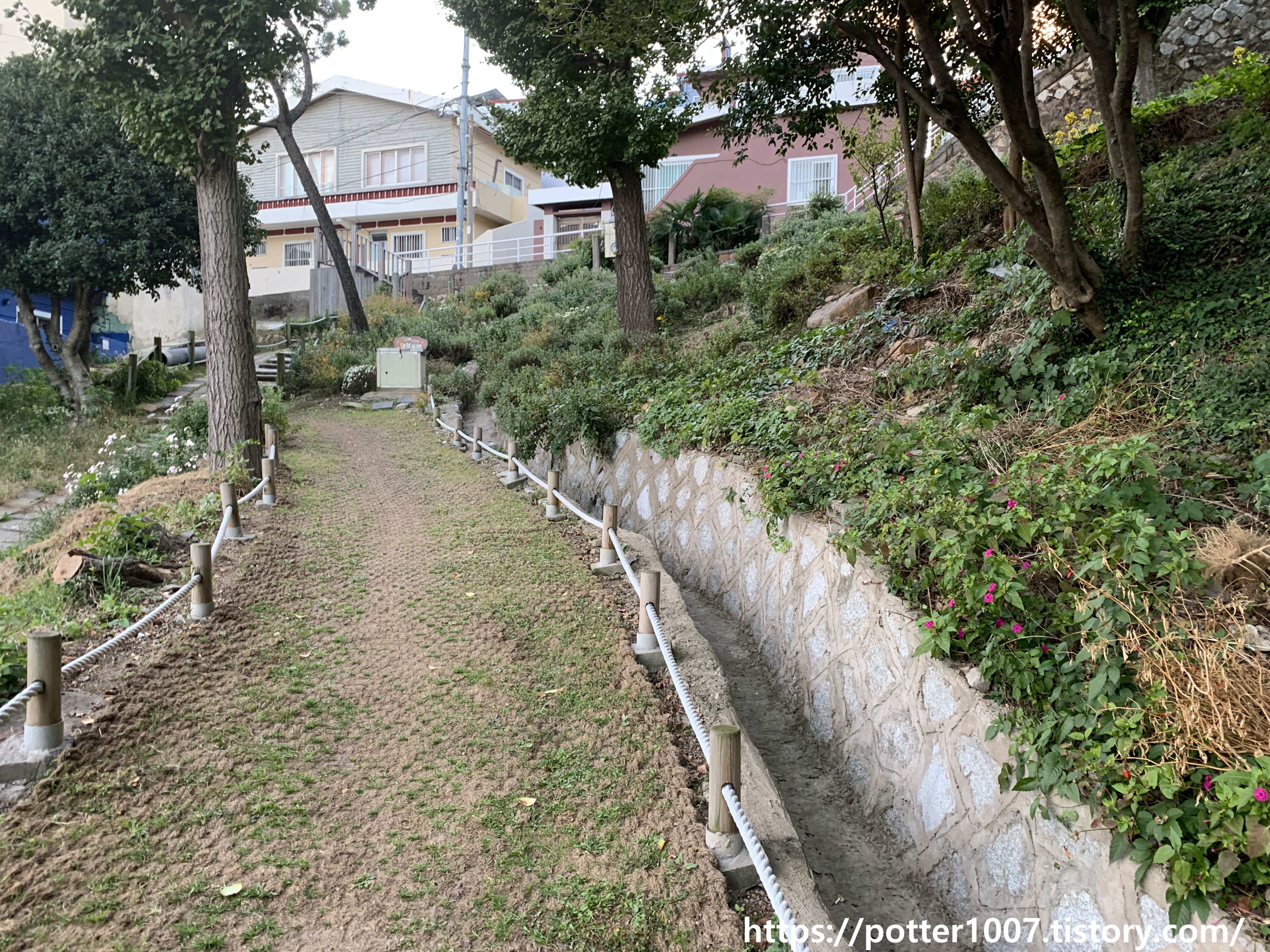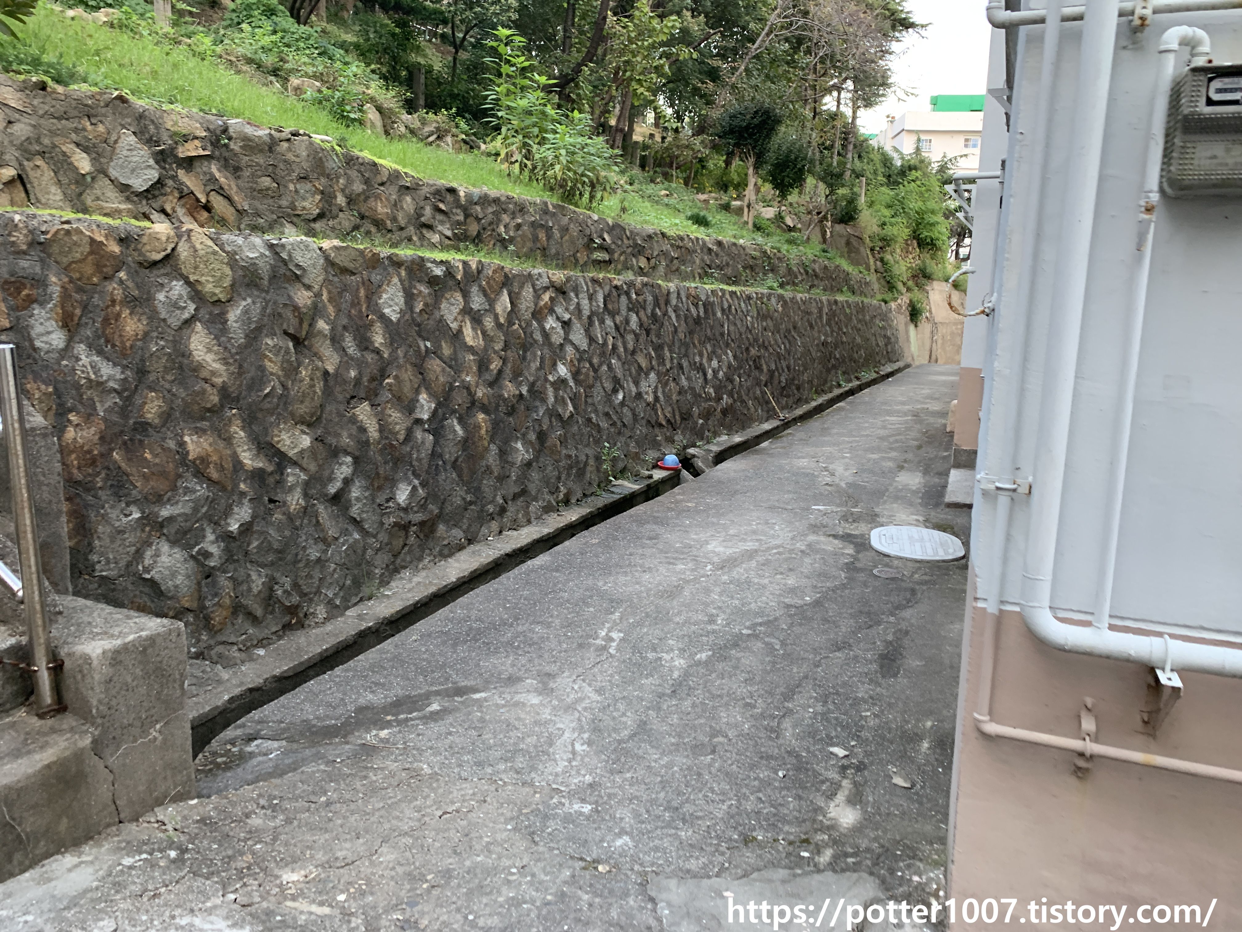 반대편쪽은 이런 모습인데 저 계단쪽으로 흐르는것 같지는 않아보입니다. 이 계단에도 양편에 하수도용 배수로가 있긴 합니다.