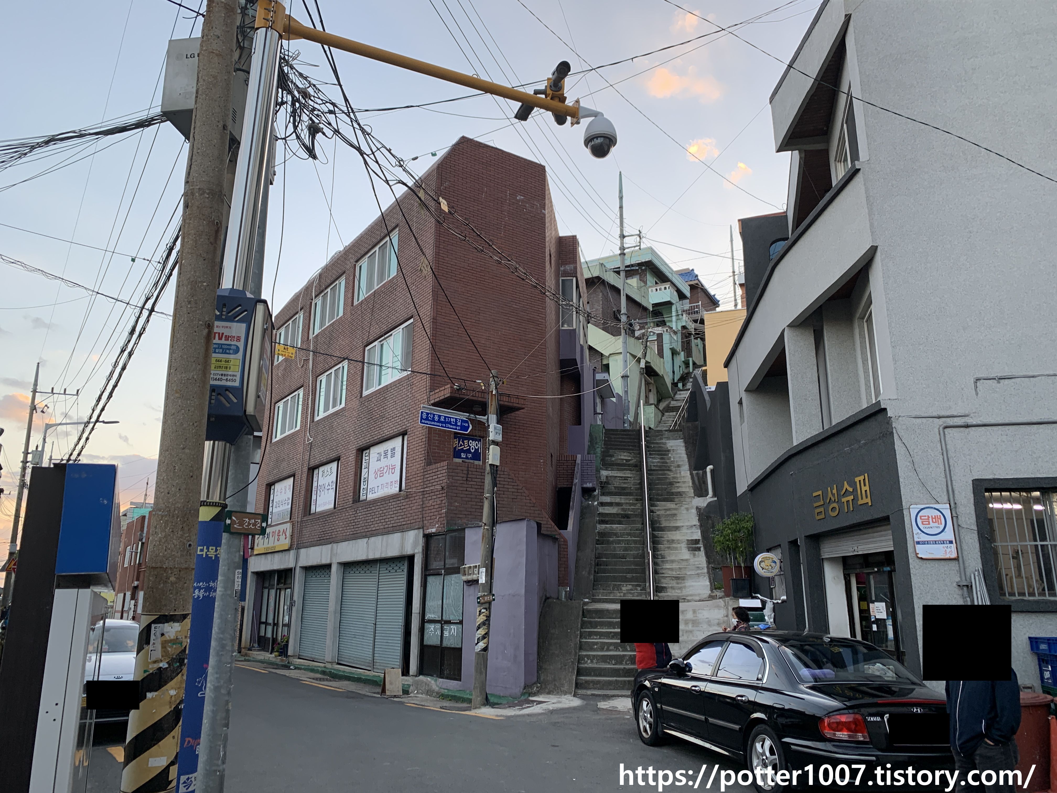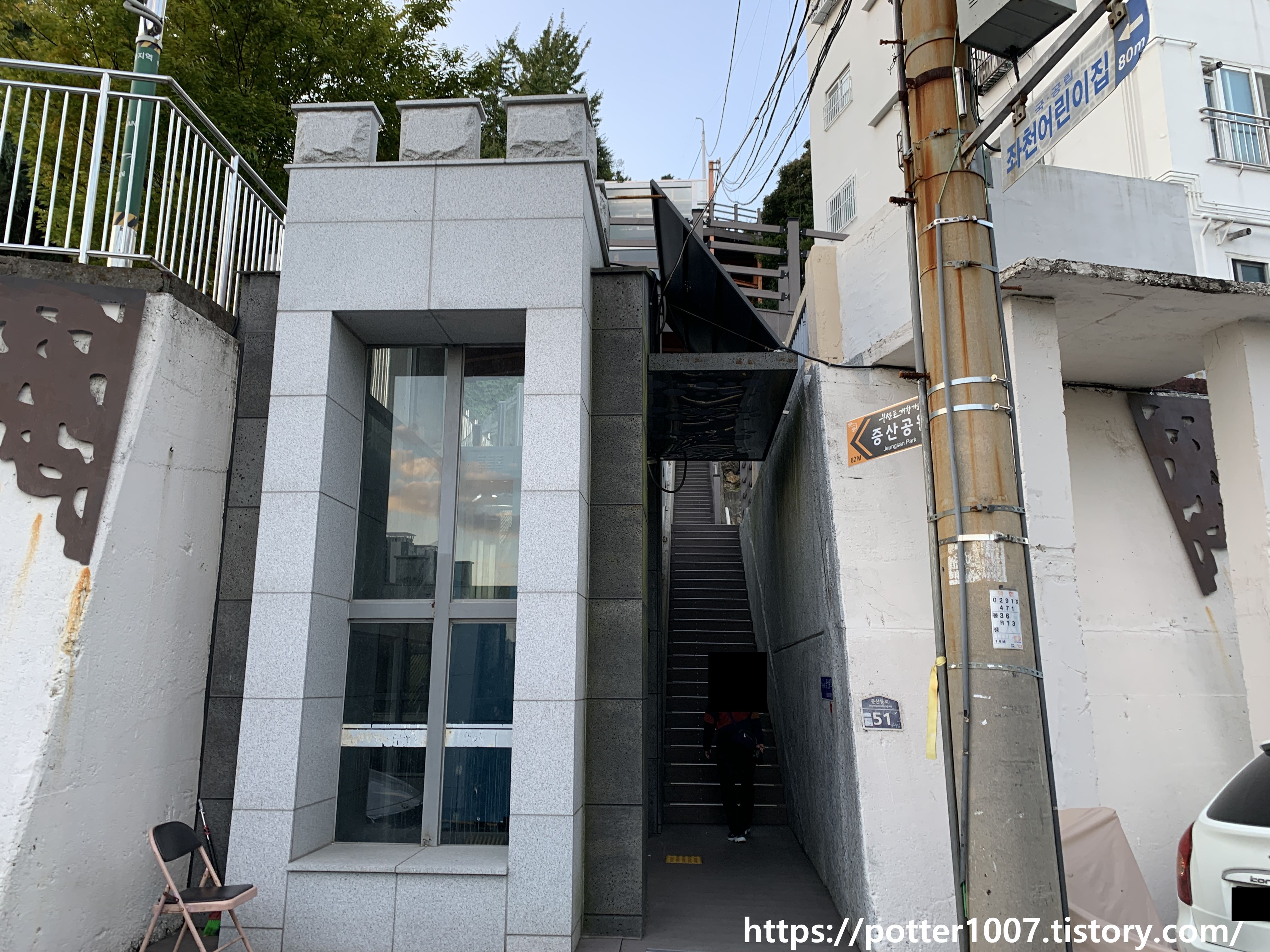 증산동로까지 올라오면 좌천시민아파트까지 올라가는 경사형 엘리베이터를 볼수 있는데 그쪽은 나중에 올라가도록 하고 먼저 범일천이 있는쪽으로 가봅니다.