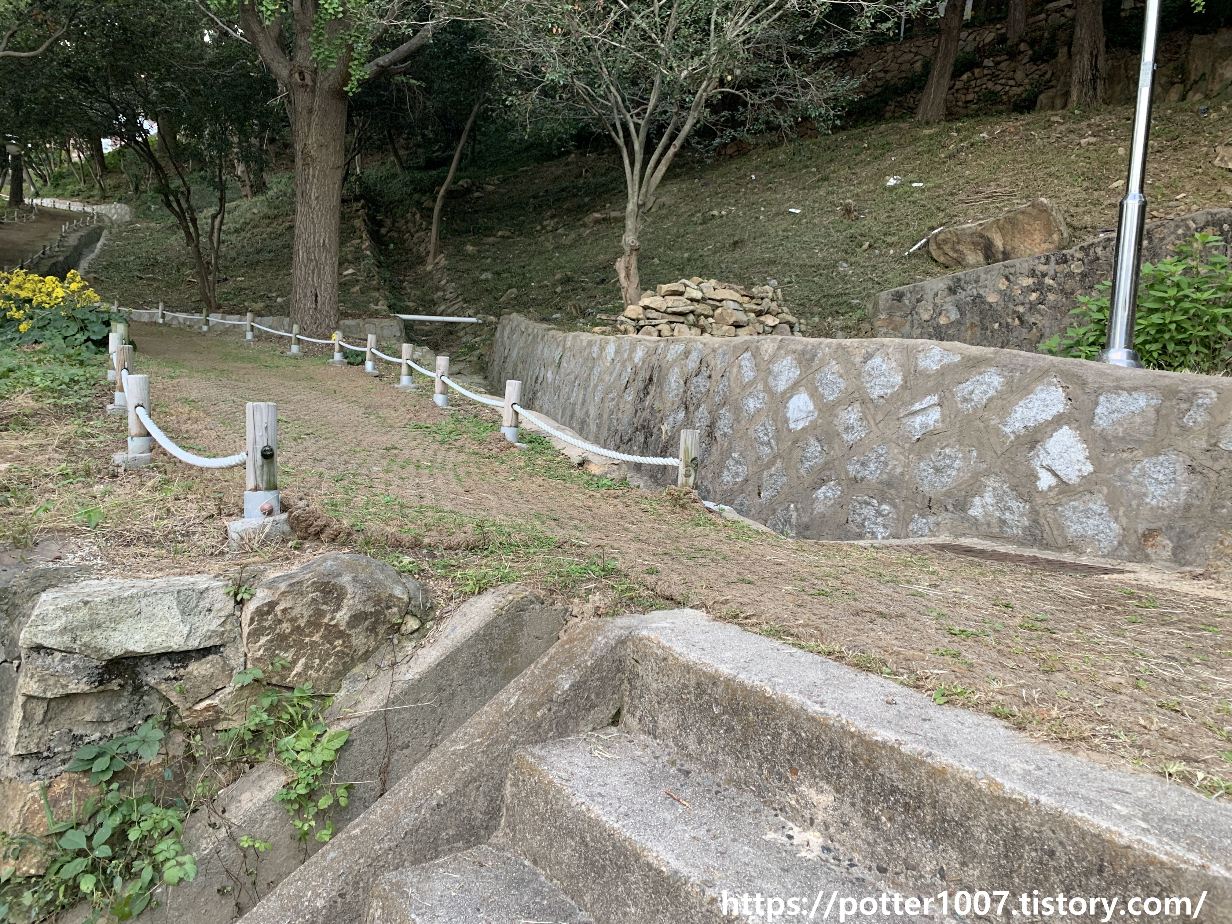 보시다시피 옹벽과 배수로 사이에 바가지까지 있는 약수터같은곳이 있습니다. 정확하게는 샘에 더 가까운 모습입니다.