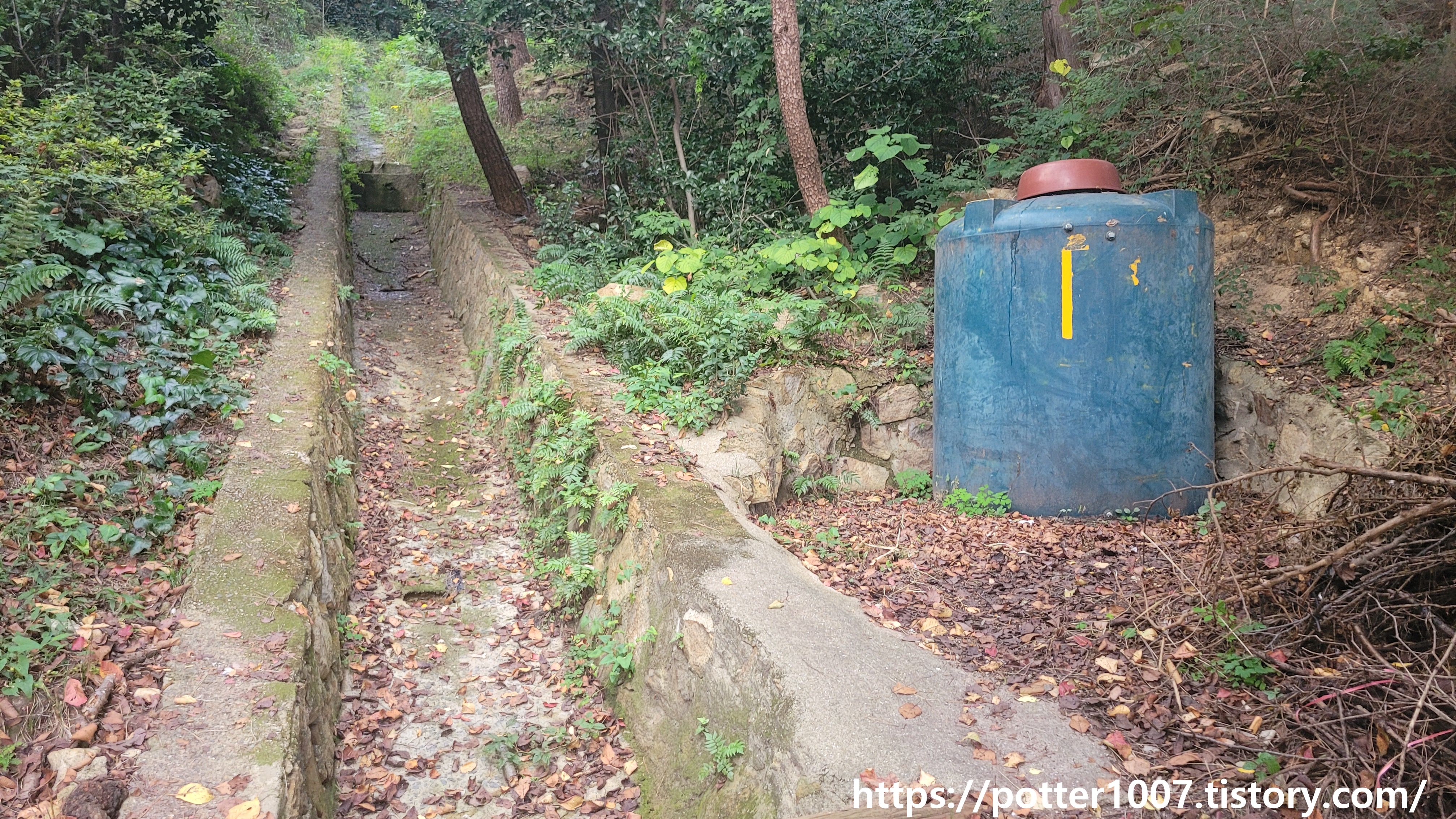 오른편의 물탱크도 약수터 관련 시설로 보이는데, 중요한 약수터가 폐쇄되어 없어졌으니 의미가 없어졌습니다.