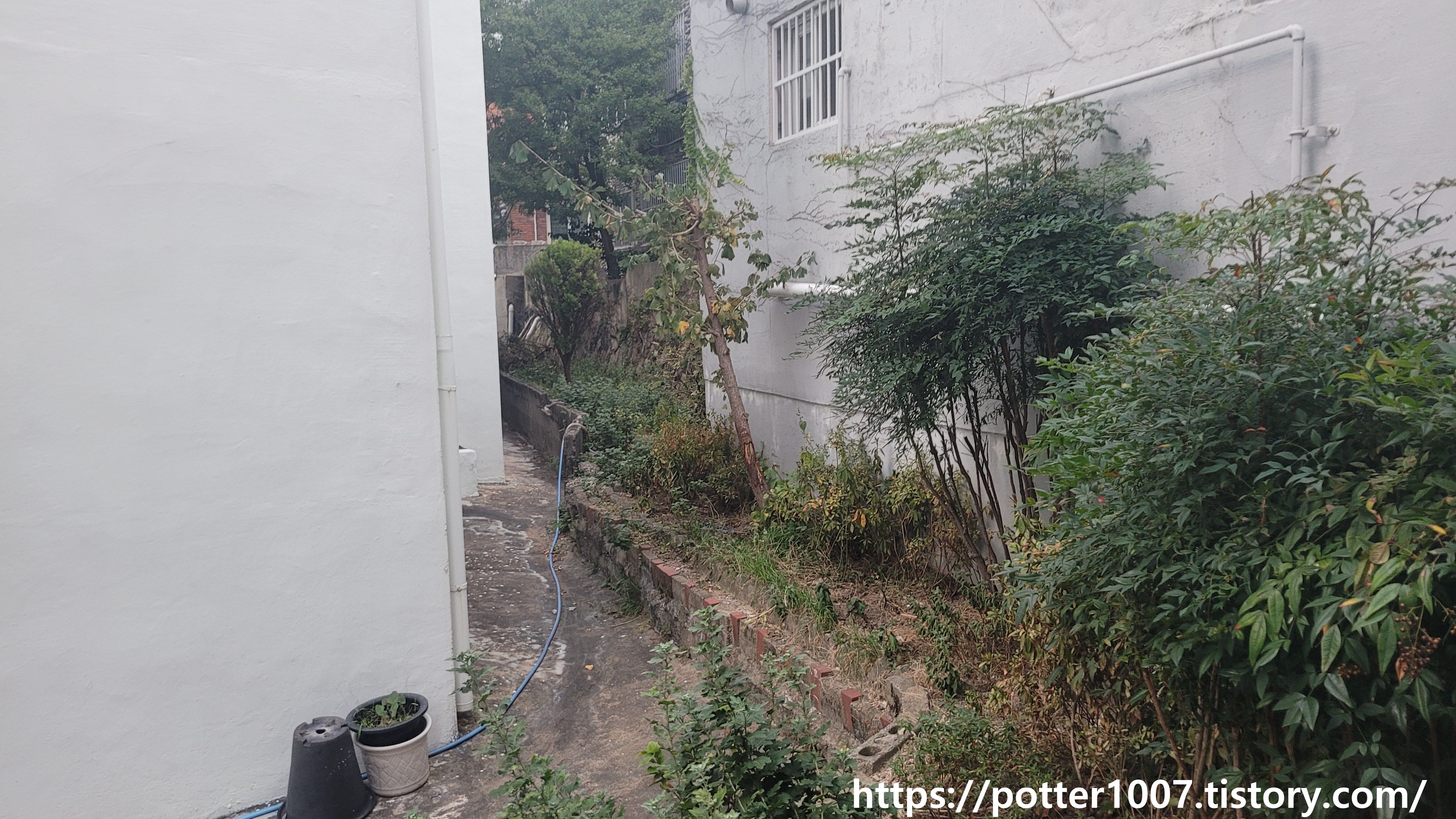 그 다음으로는 능풍길 7번길 13 건물 뒷편(지도상 C 지점)으로 가야 합니다. 이쪽까지도 지도상에는 길이 있는것으로 표시되어 있으나 그런거 없습니다.