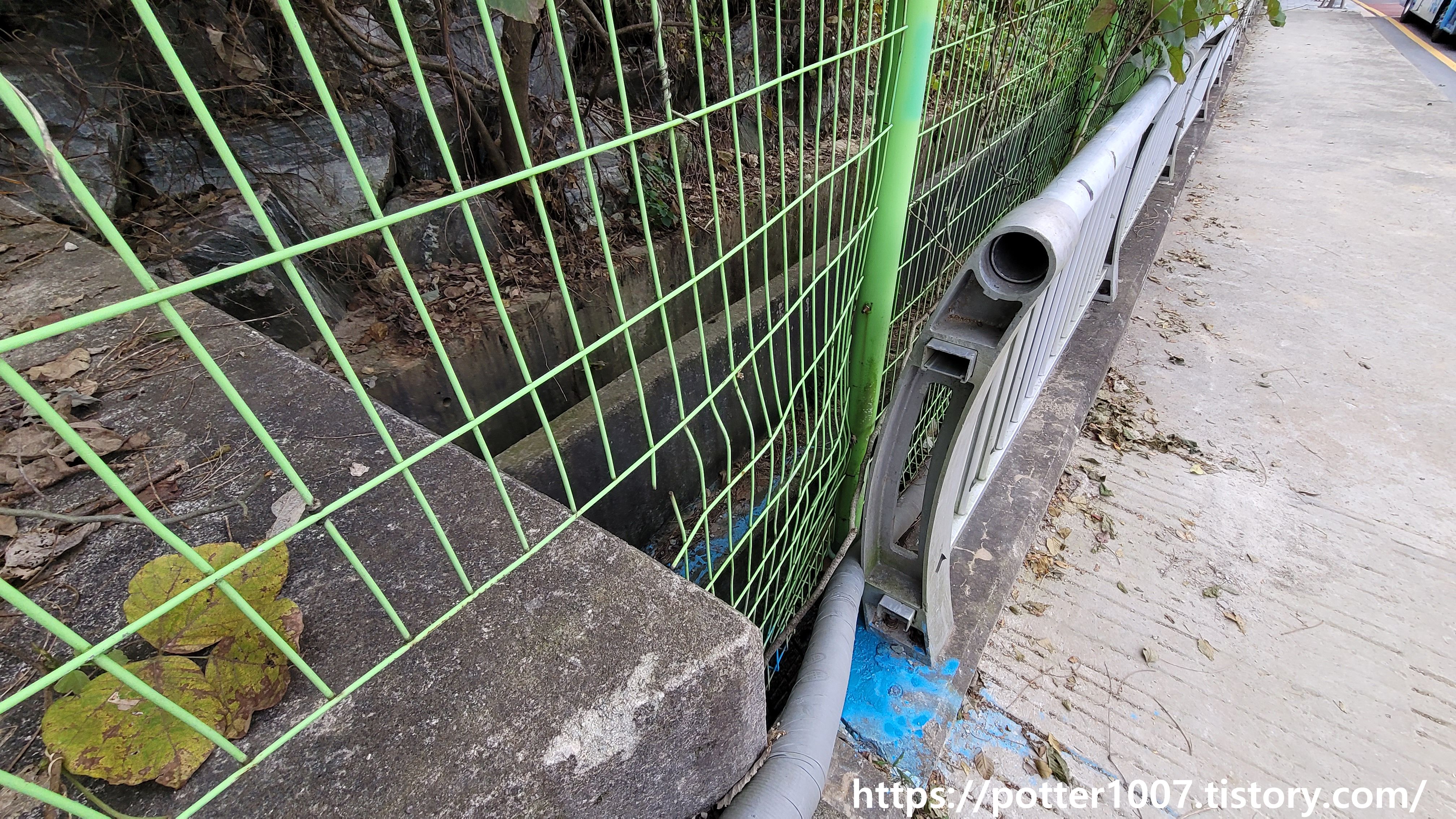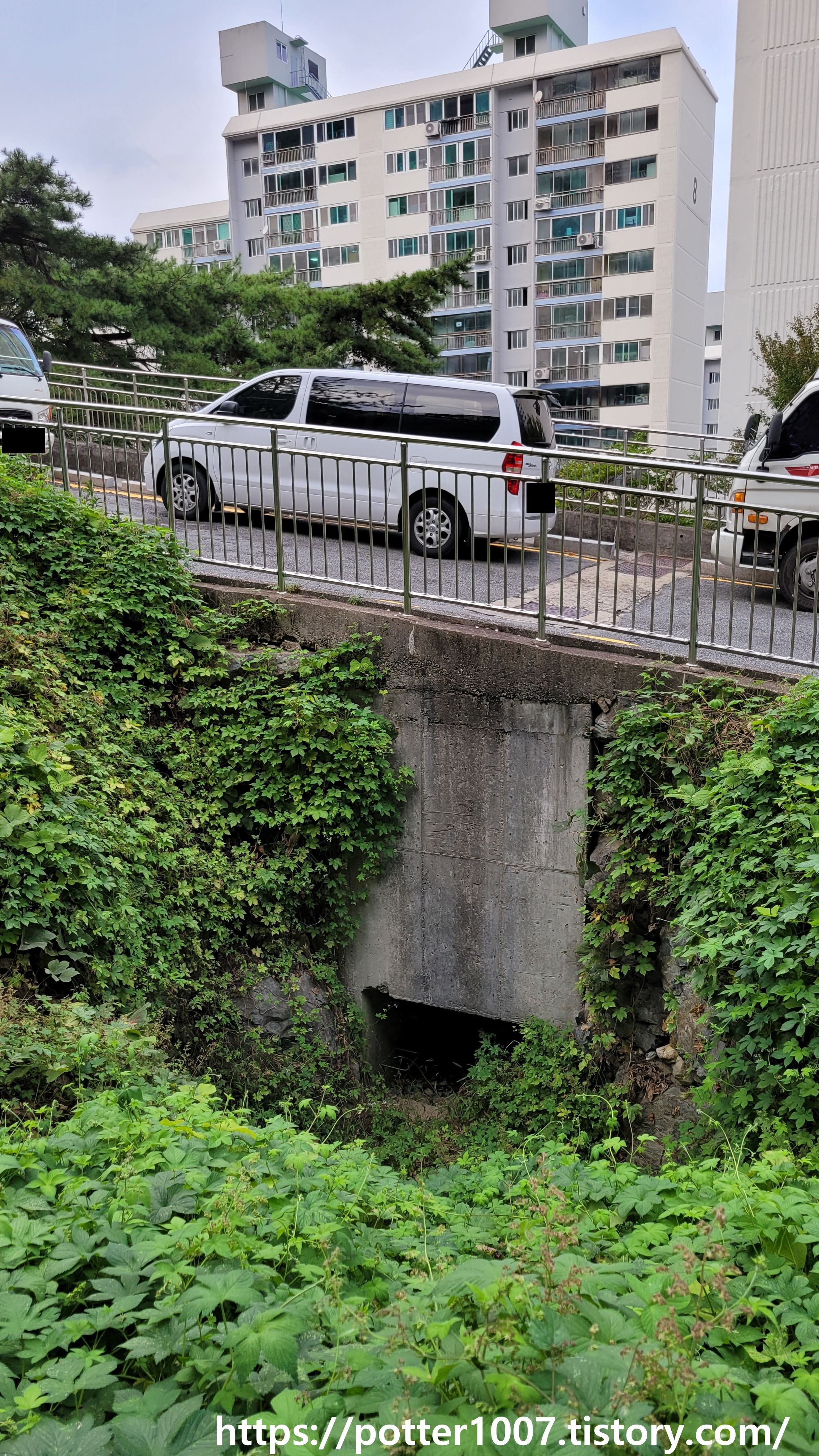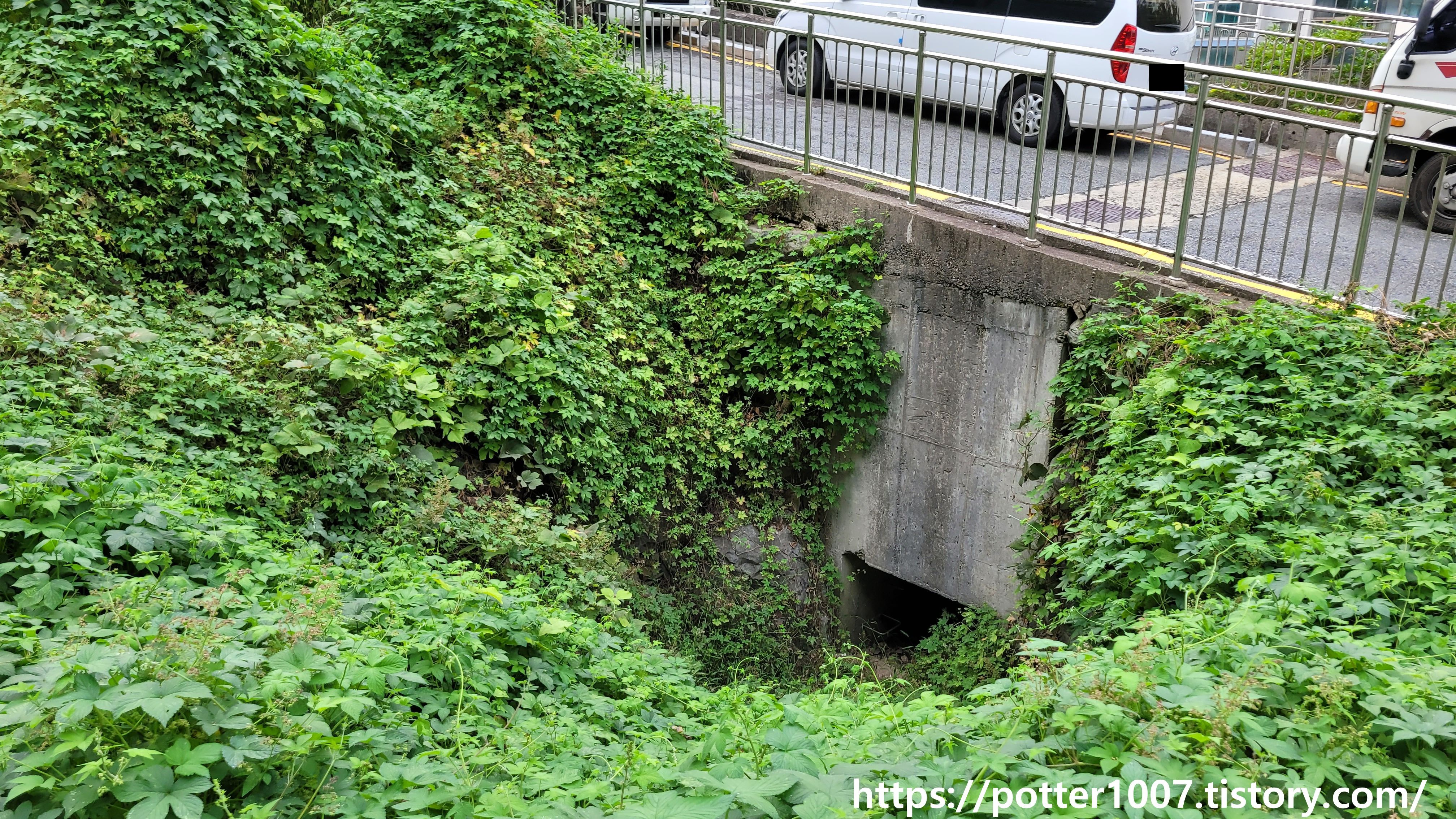 더 황당한것은 박스같이 옆면이 노출되어 있는데 거기서 수로로 나와서 아래로 흘러내려가는 구조라는 것입니다.