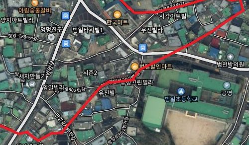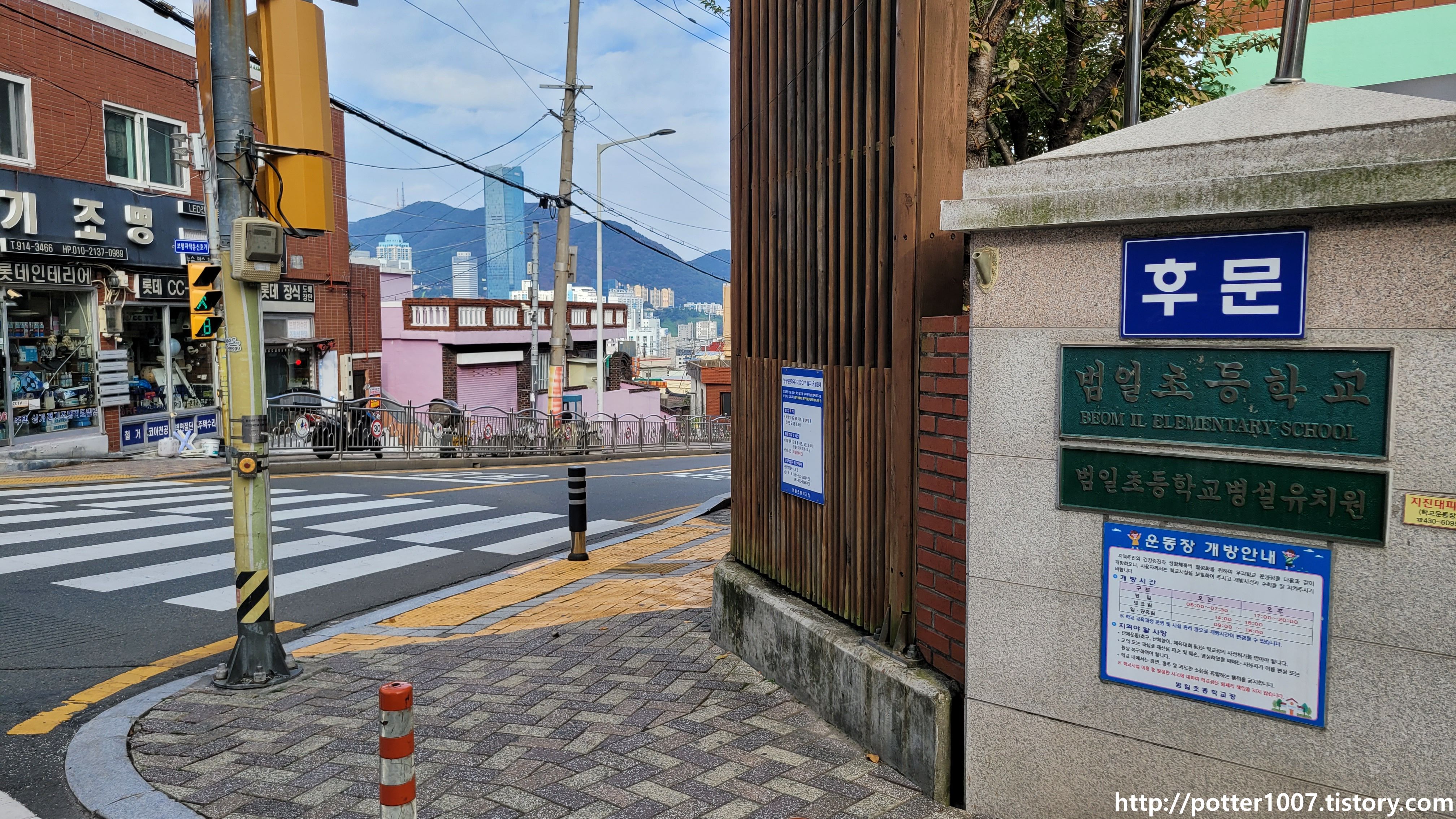 위로 올라오면 망양로를 만나게 됩니다. 왼편에는 범일초등학교가 있습니다.