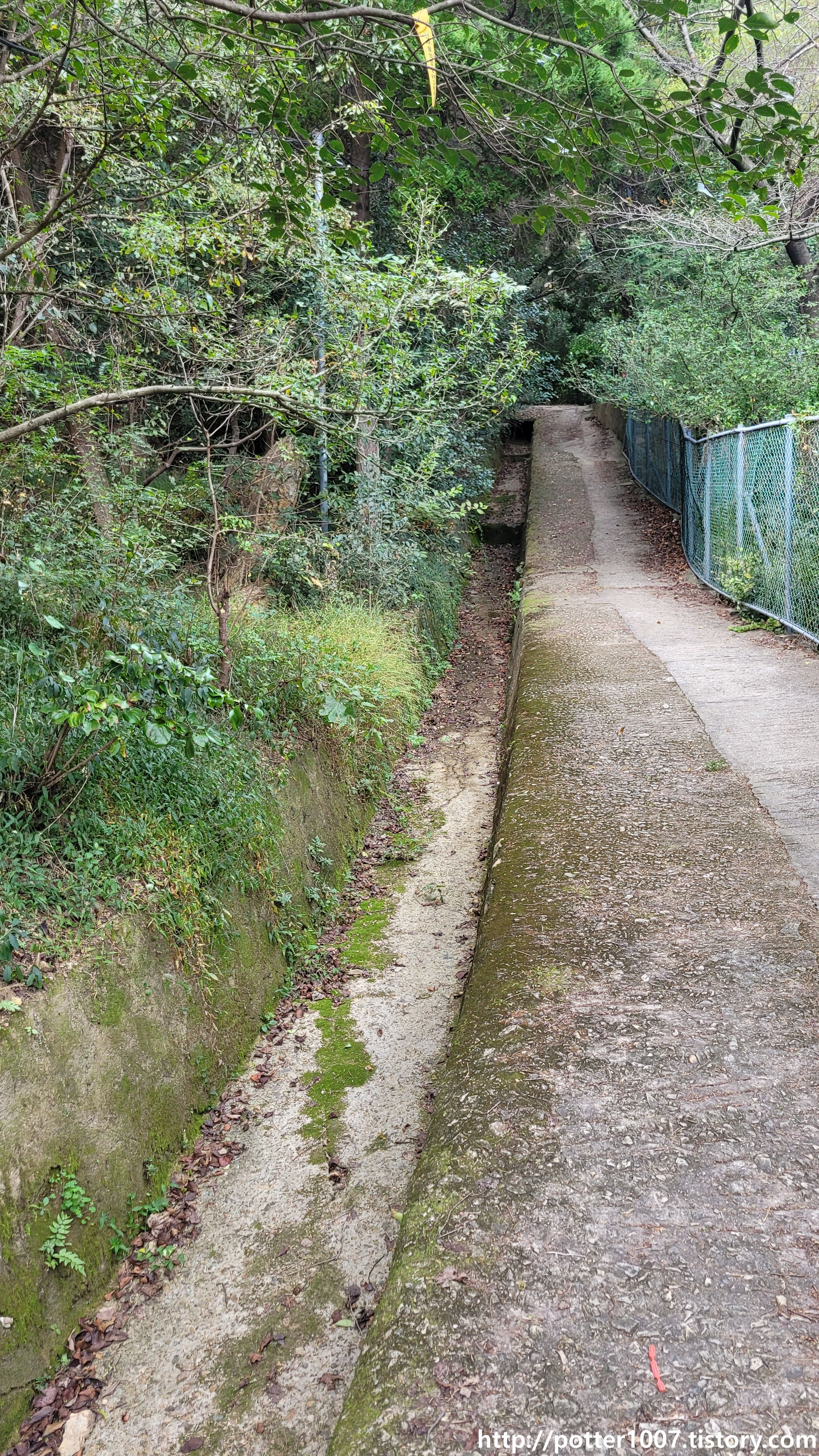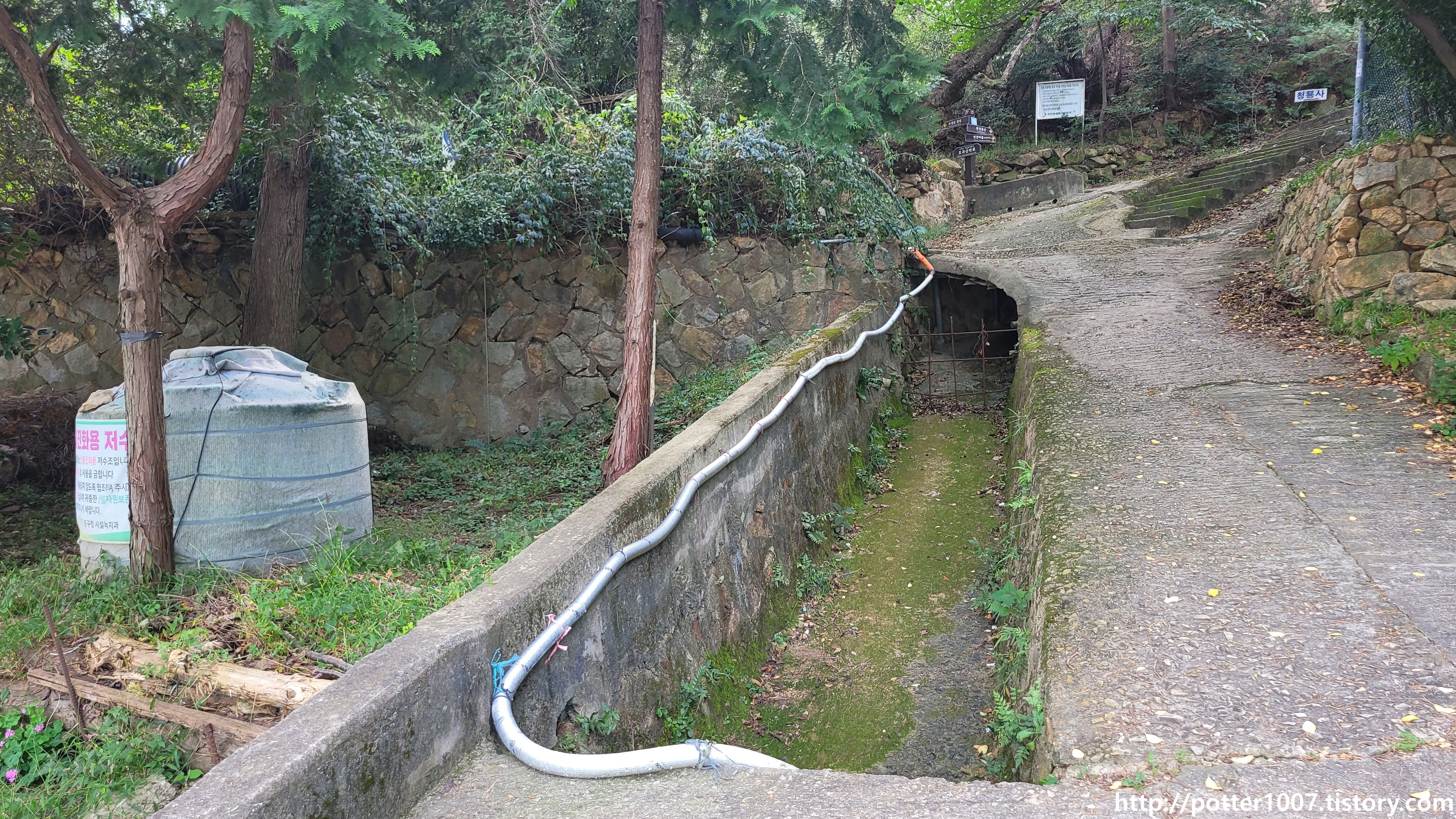 왼편을 보니 '정수장'이라고 써있는 콘크리트 구조물이 있습니다. 과거 상수도 시설이 미비했을 때 산기슭에서 지하수를 퍼올려 상수도원으로 썼는데, 그때 썼던 시설물입니다. 이러한 시설물 구축이 90년대까지 있었다고 합니다.