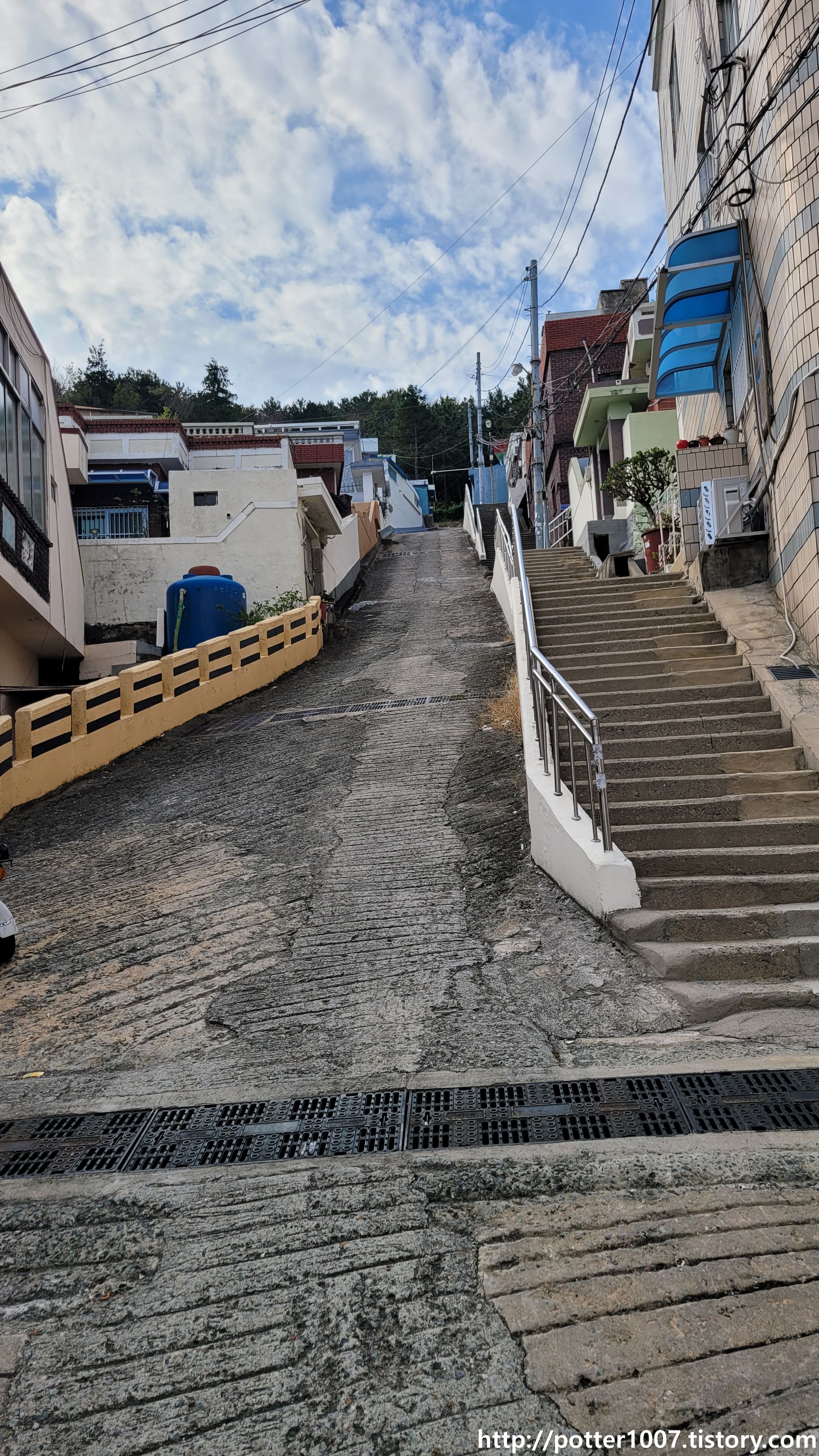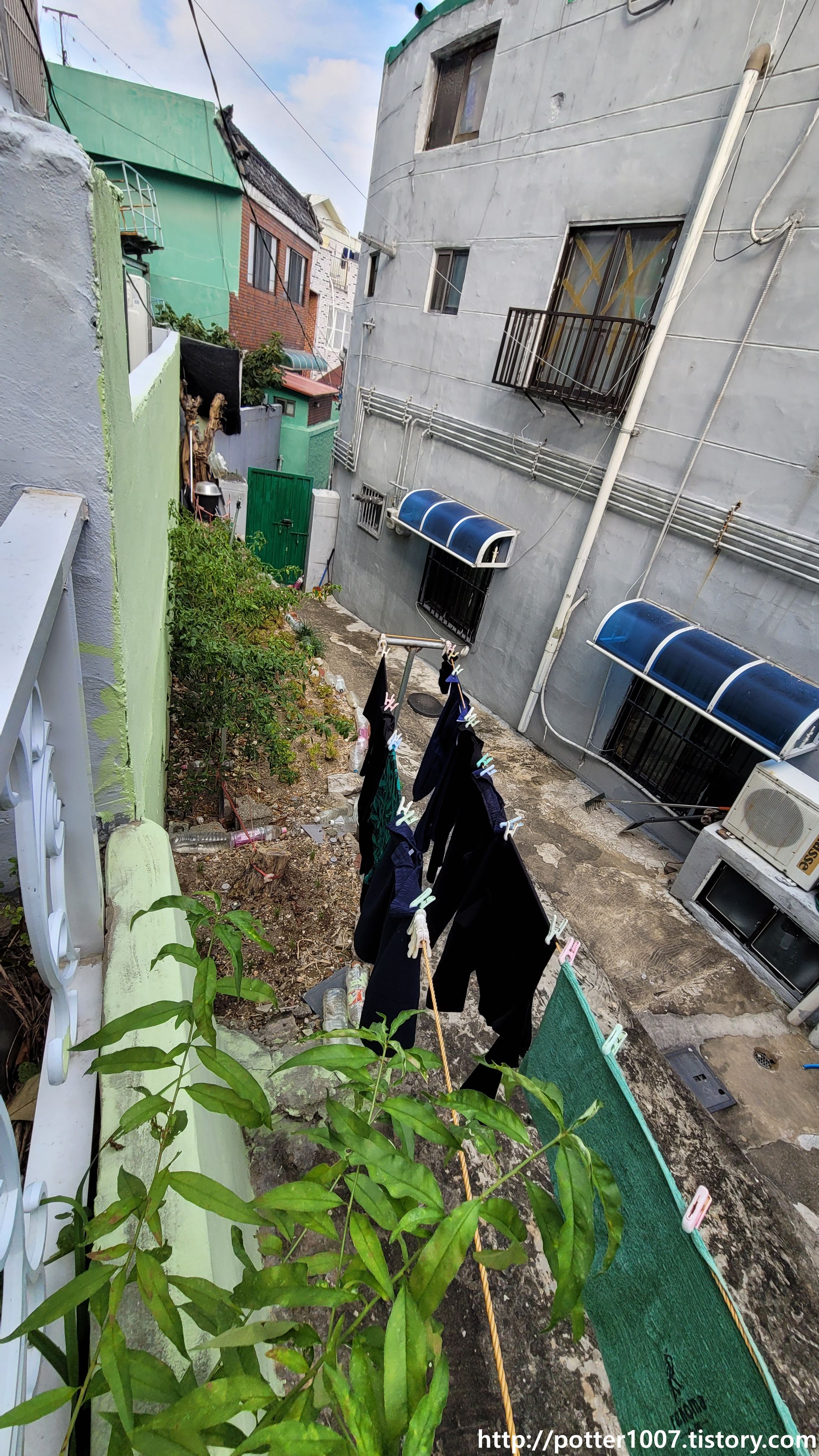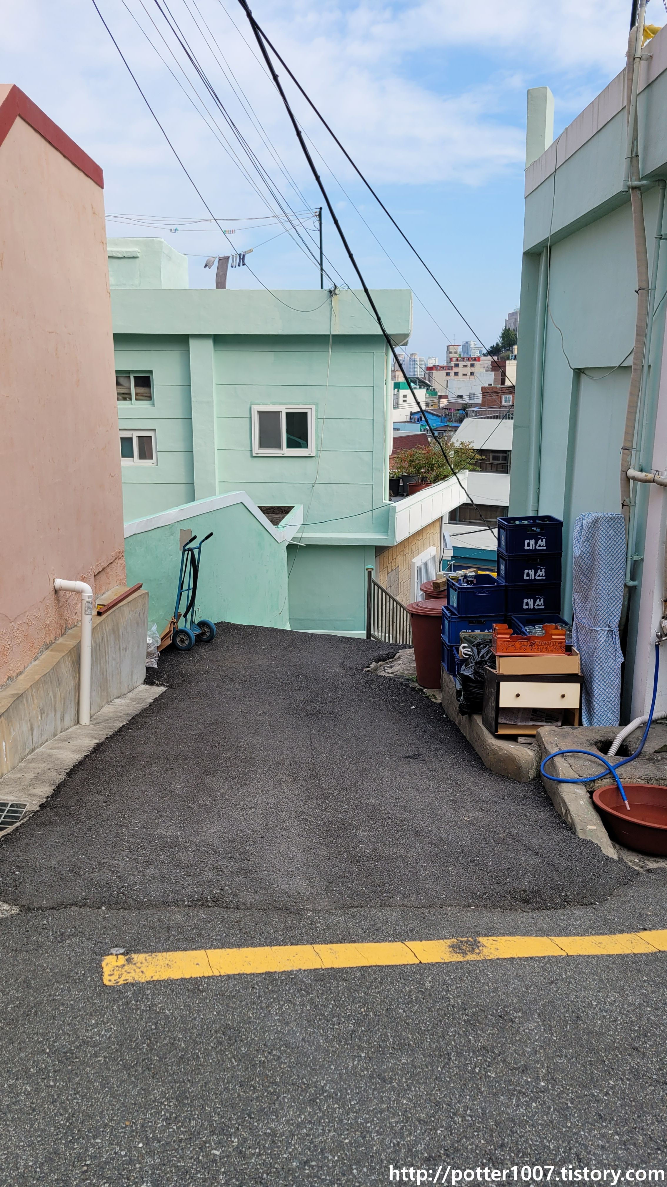 그런데 이곳 끝쪽으로 가보면, 이전에 녹색 집 대문으로 막혀 못봤던 그 집 대문 뒷편을 볼수 있습니다.