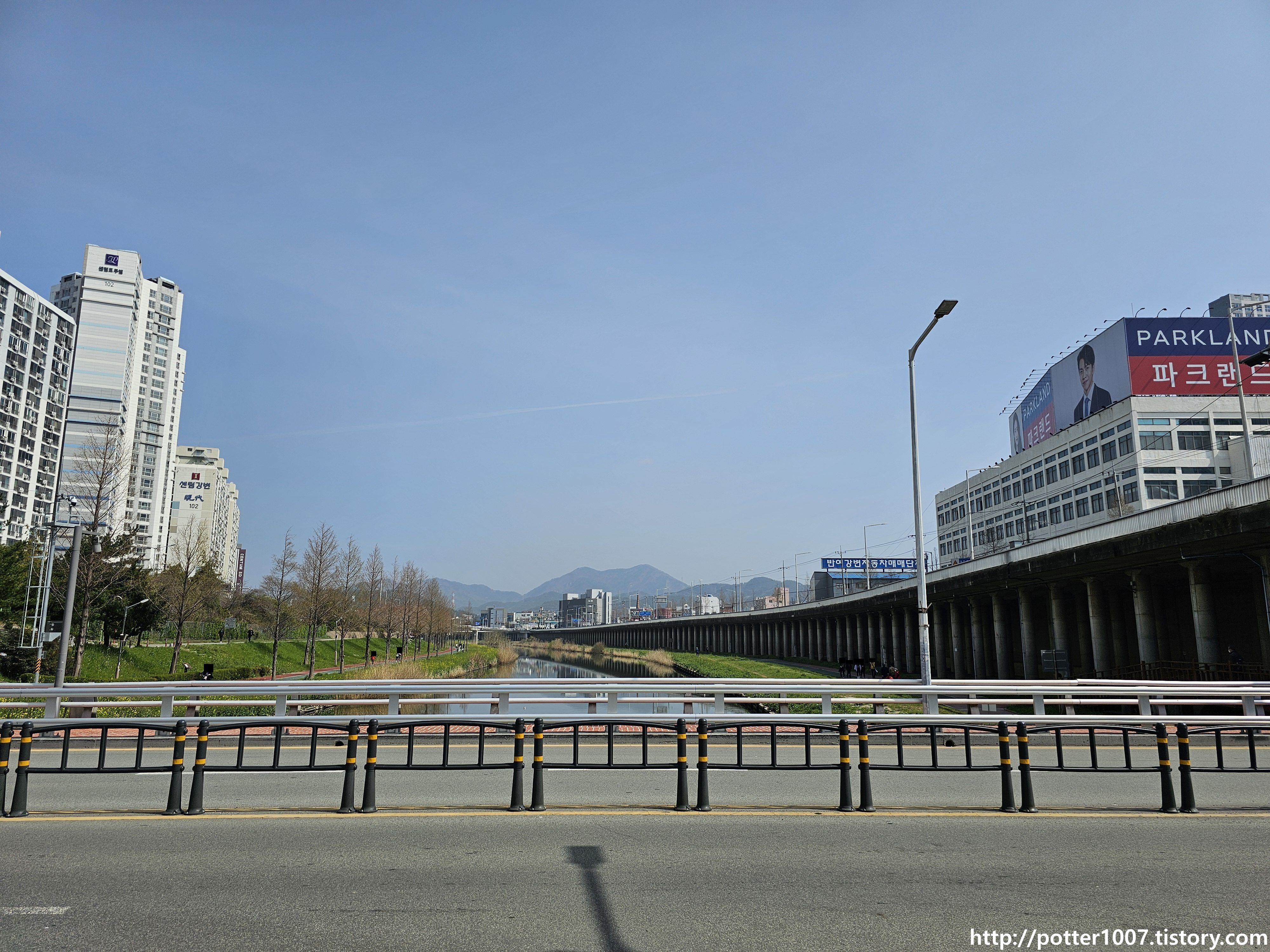 선수촌로와의 사거리를 지나갑니다. 사진은 상류방향 모습입니다.