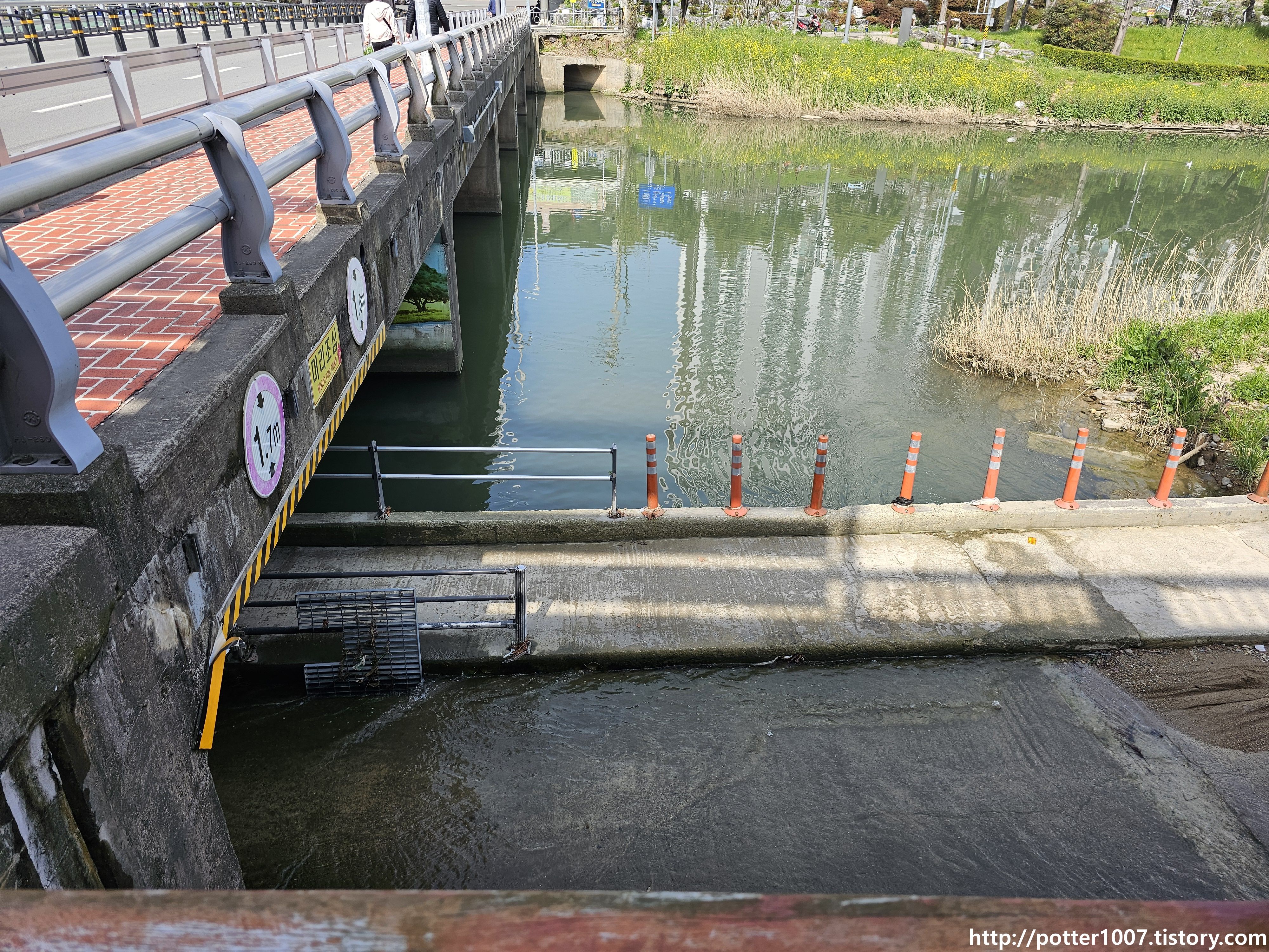 그러다가 세월교 아래 인도 밑 작은 다수의 흄관을 통해 수영강쪽으로 빠져나가는 구조를 하고 있습니다.