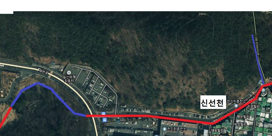 왼편 위가 재반로입니다. 반여천 옆쪽으로는 따라가는 길이 없으며 재반로쪽에서 봐야합니다.