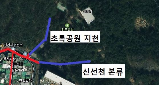그리고 여기서 왼편으로 초록공원 지천이 합류하는데 이 지천 답사기는 아래 링크를 참고하시기 바랍니다.