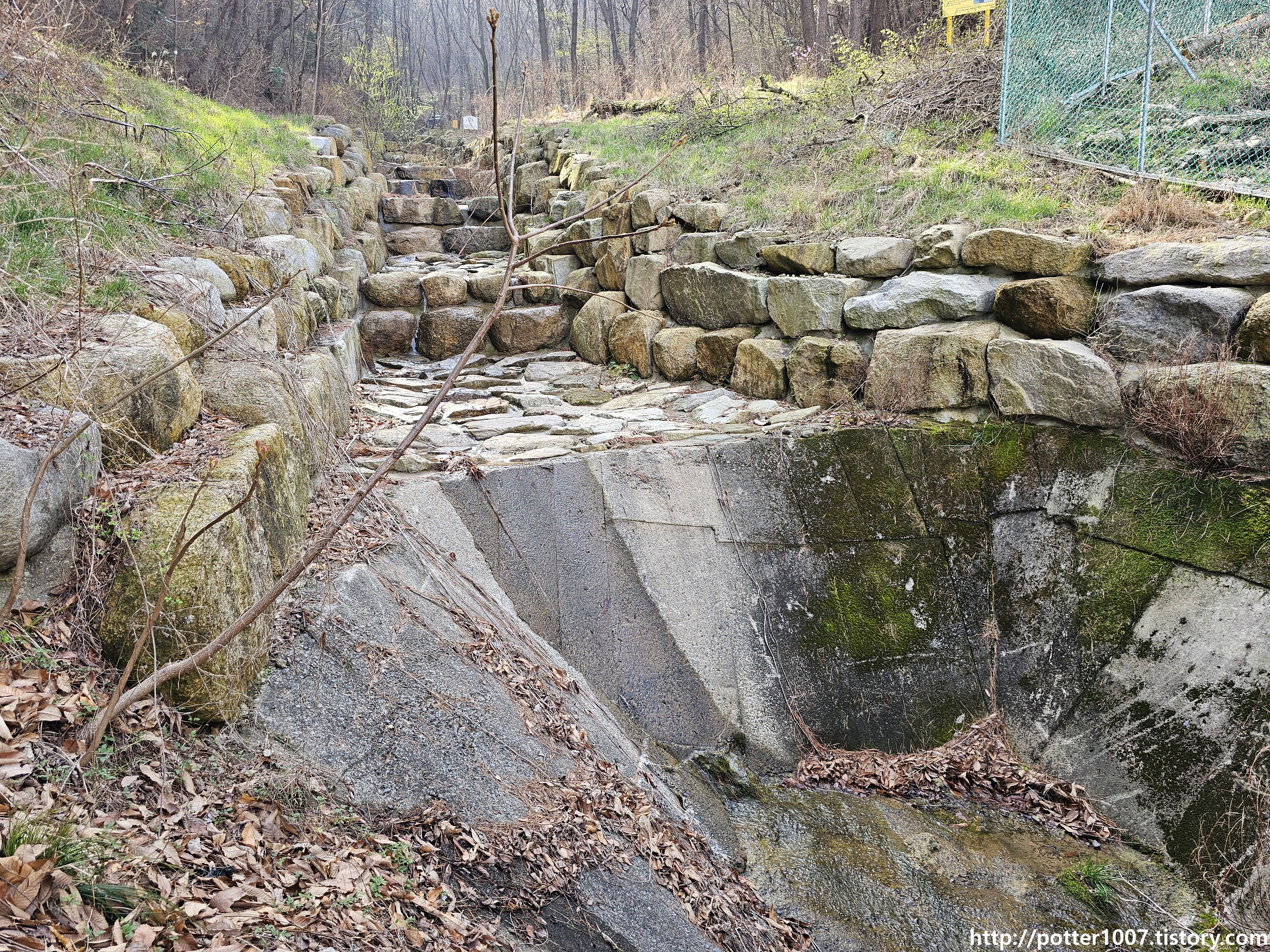 왼편으로 산자락에 붙은 배수로가 있는데, 지천과는 별개의 시설물이었습니다.