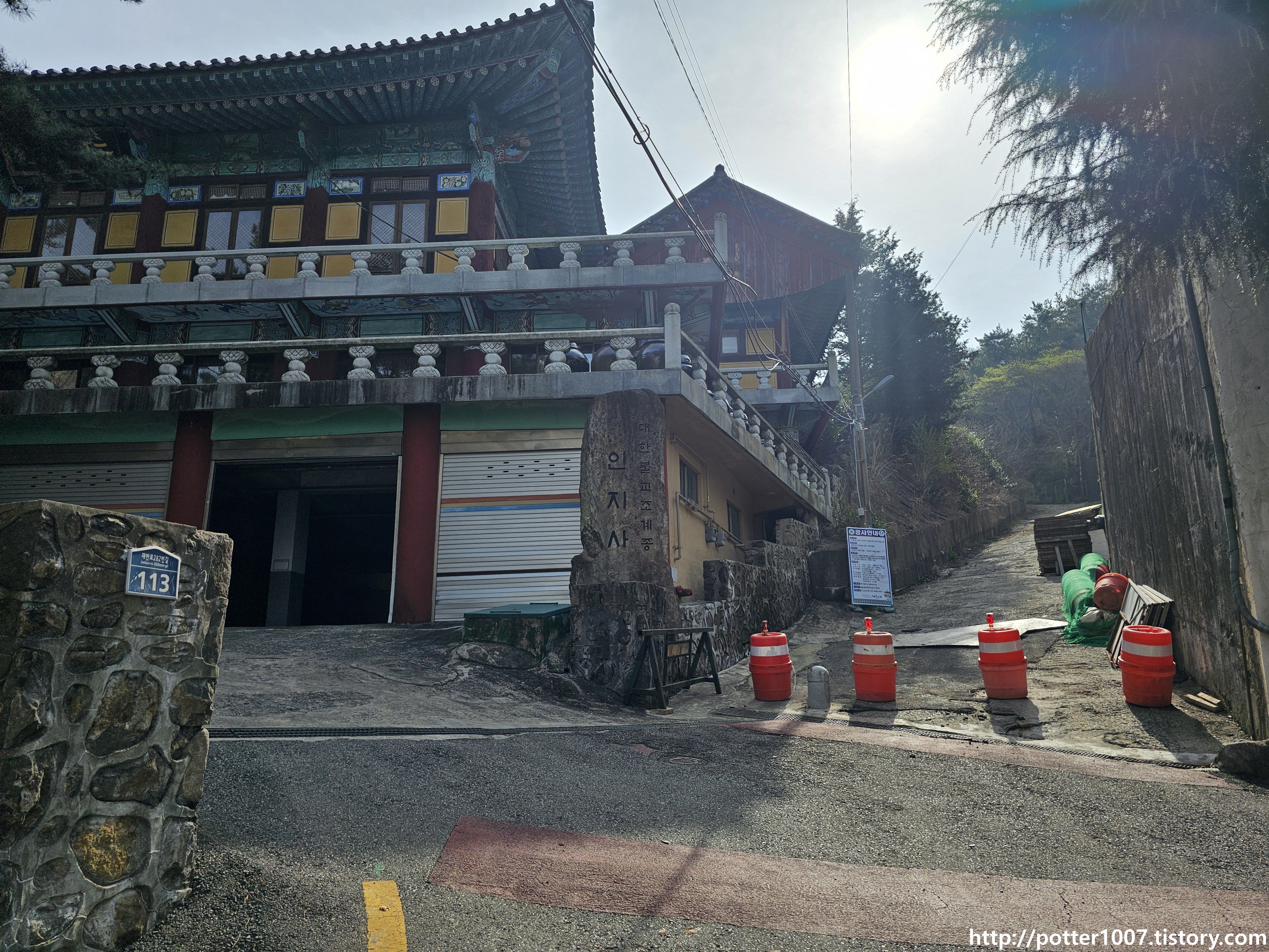 여기서 처음에는 지천이 오른쪽으로 간다 생각하고 올라갔는데, 알고보니 왼편 인지사 건물 아래를 통과합니다.