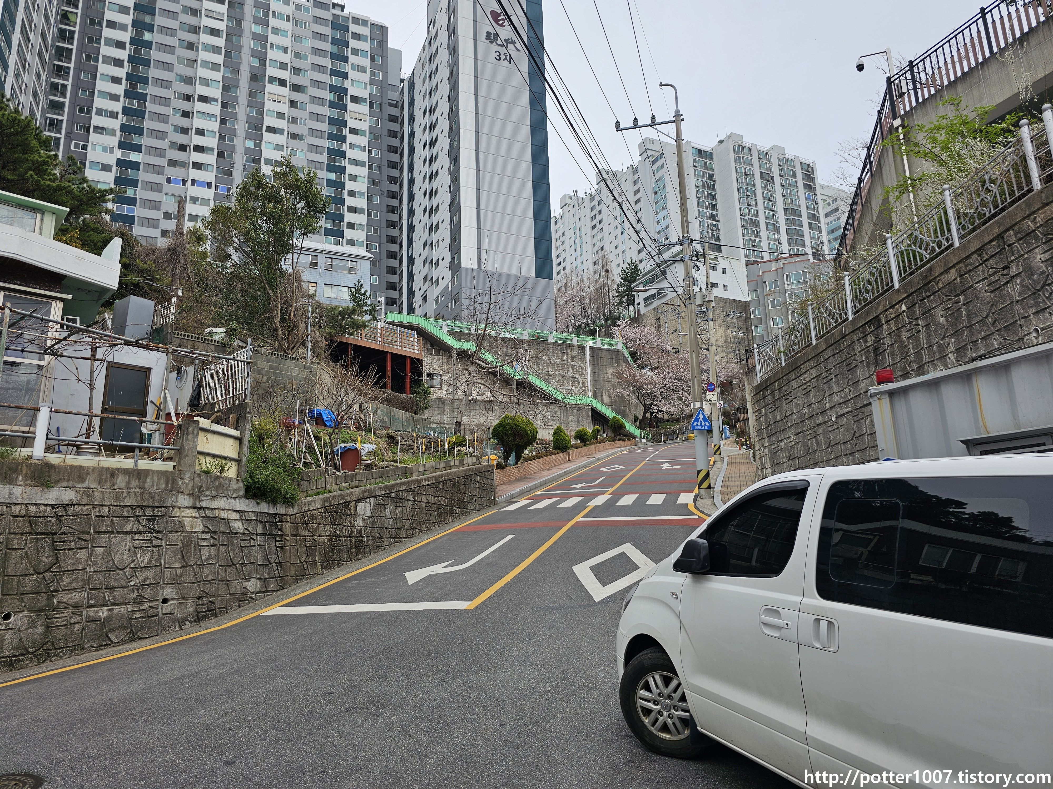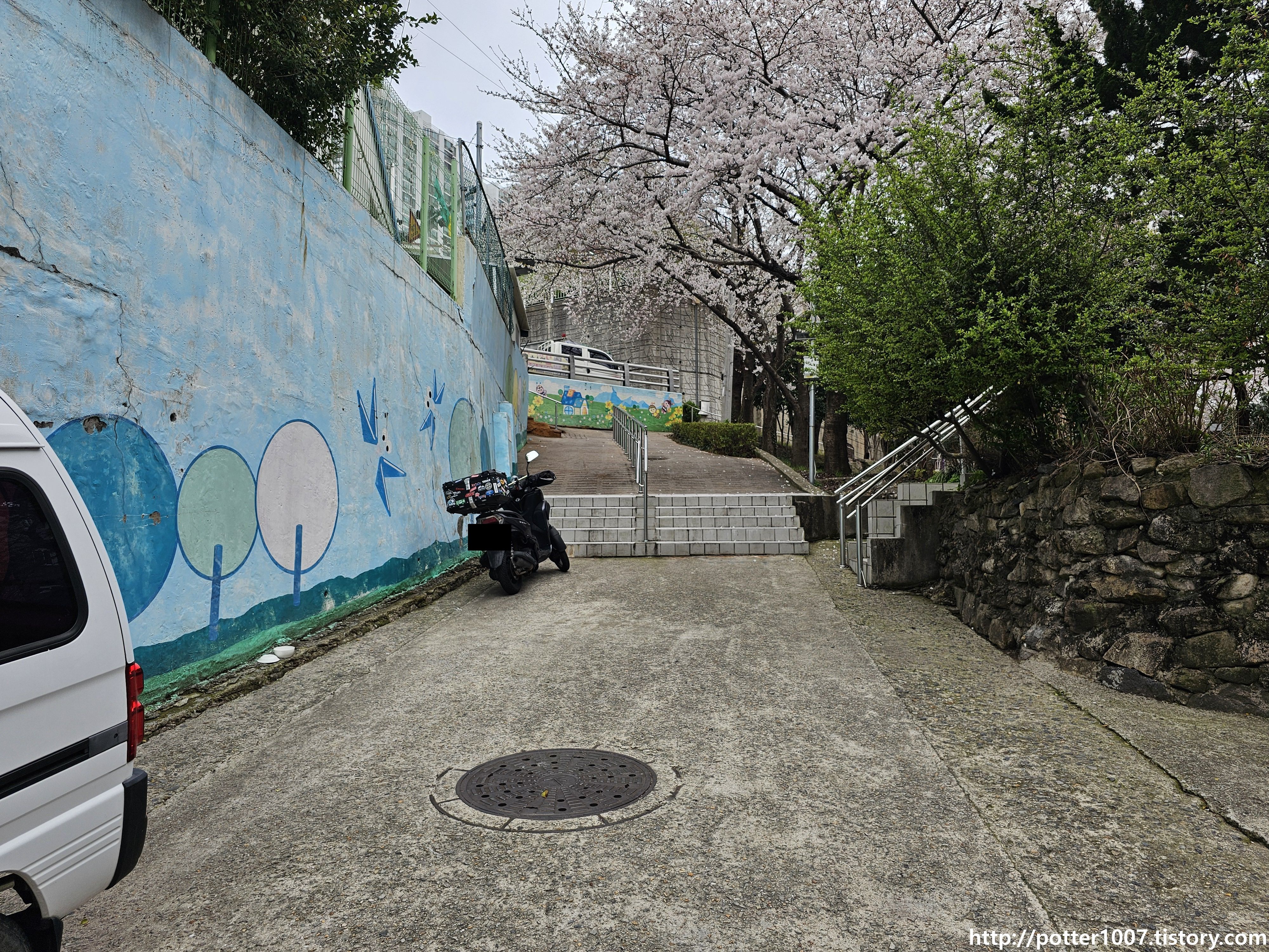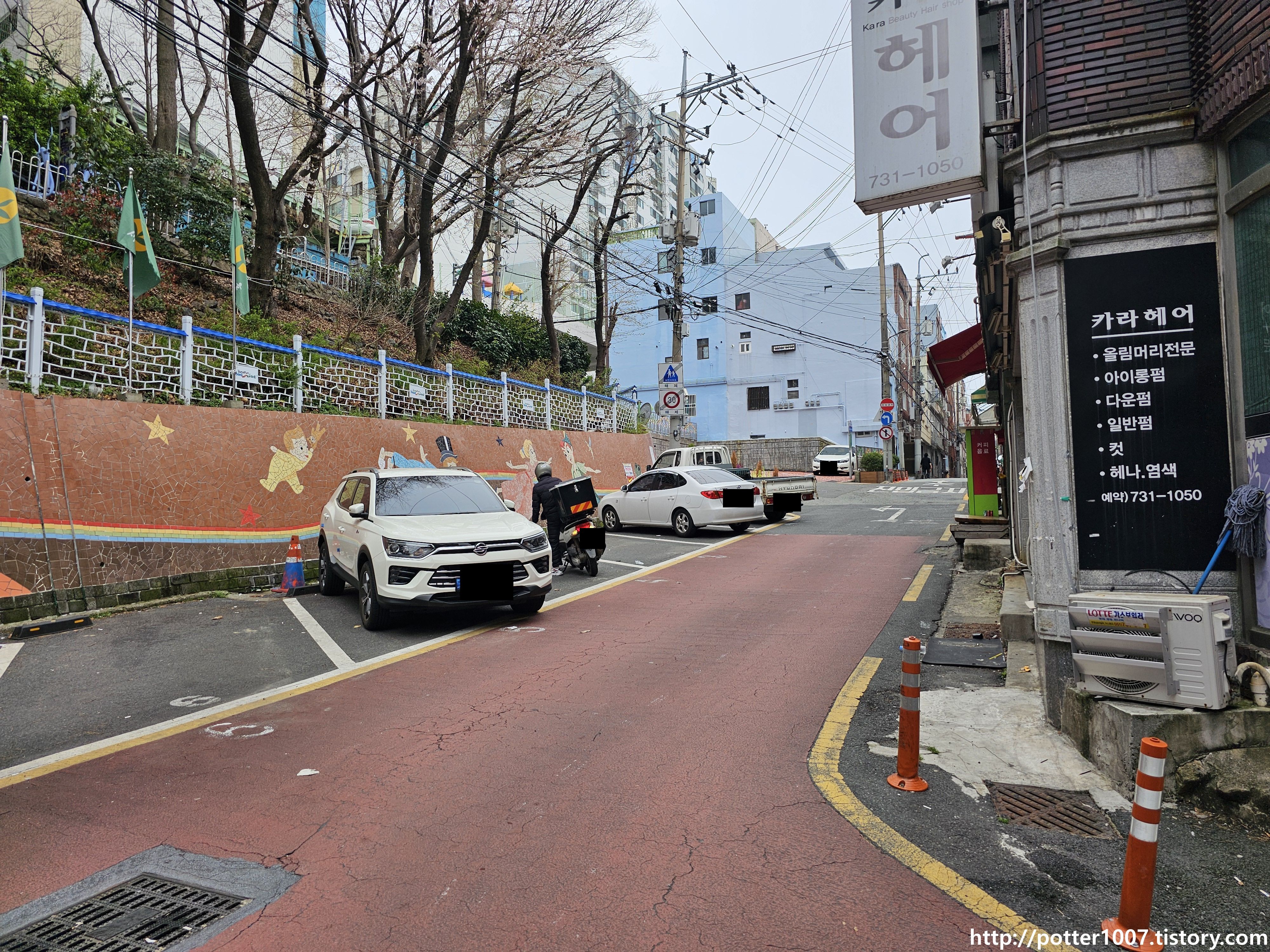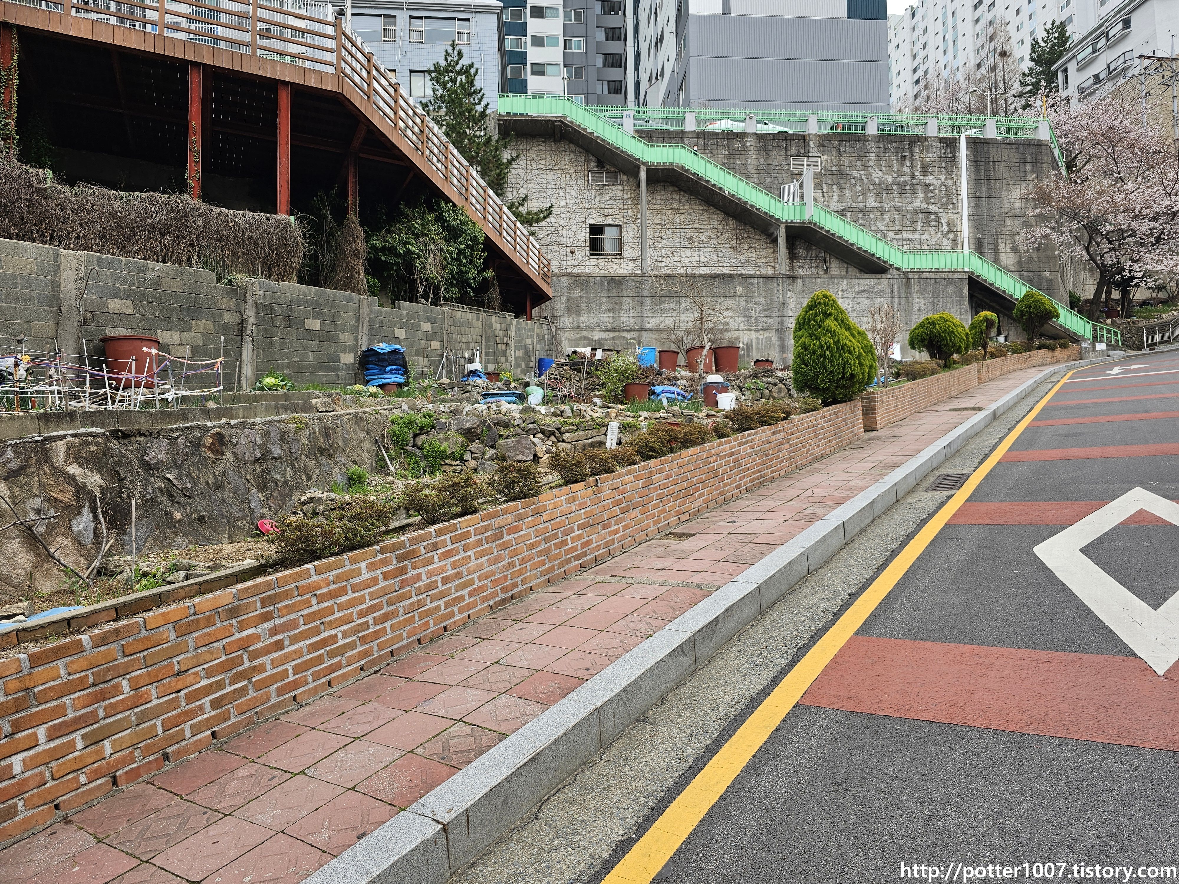 위로 올라오면 아까 지나갔던 재반로 212번길을 만나게 됩니다.