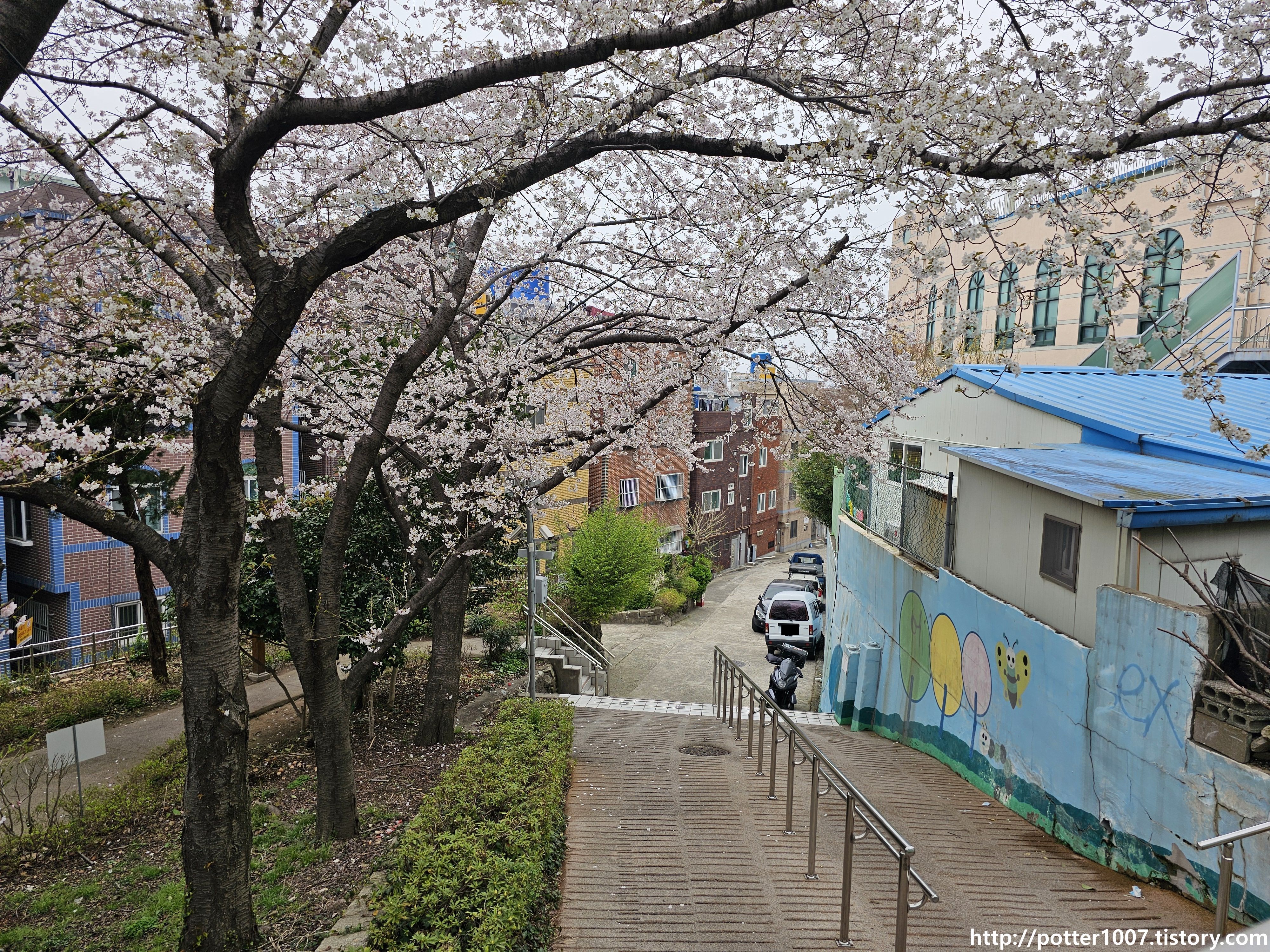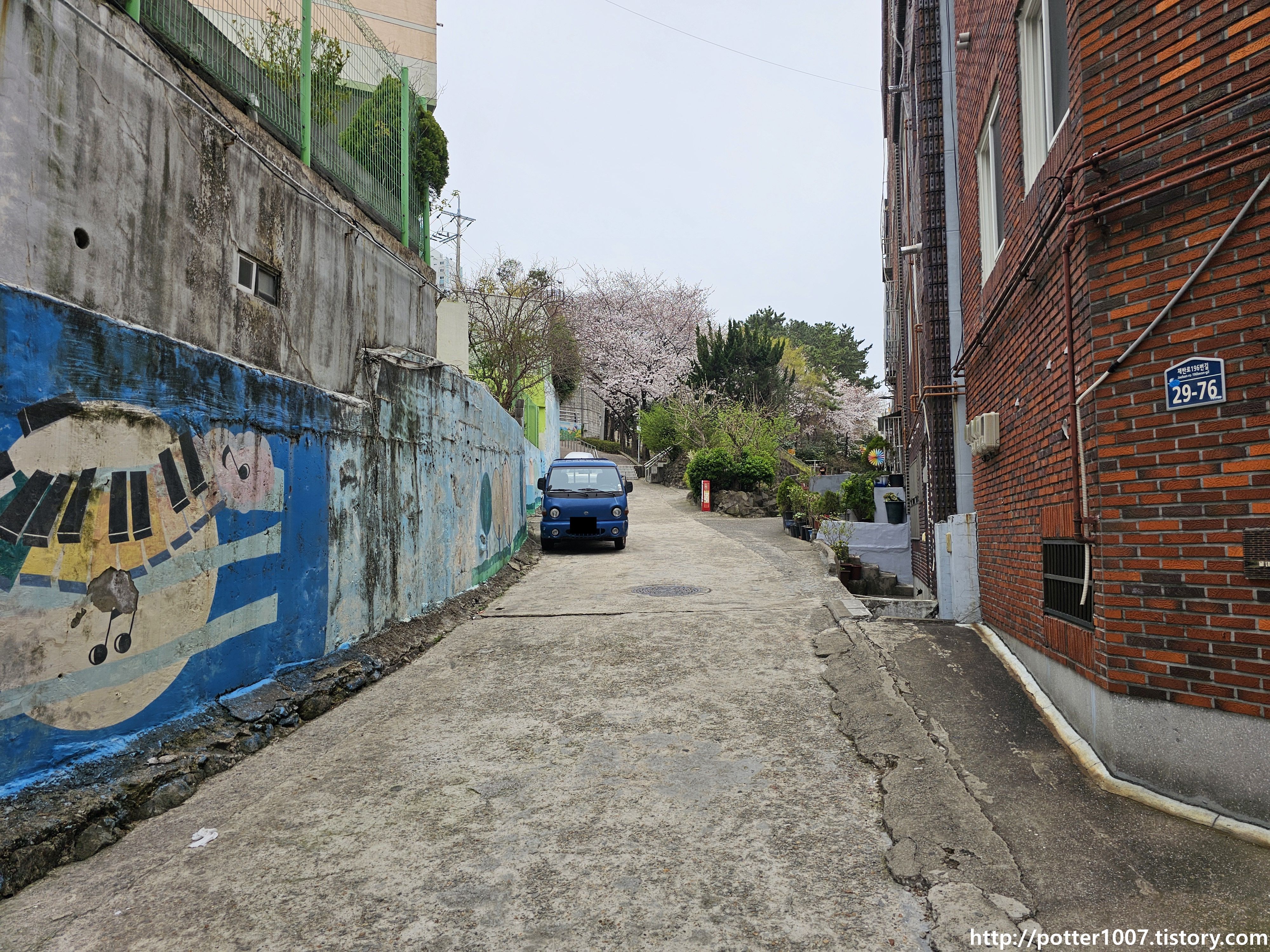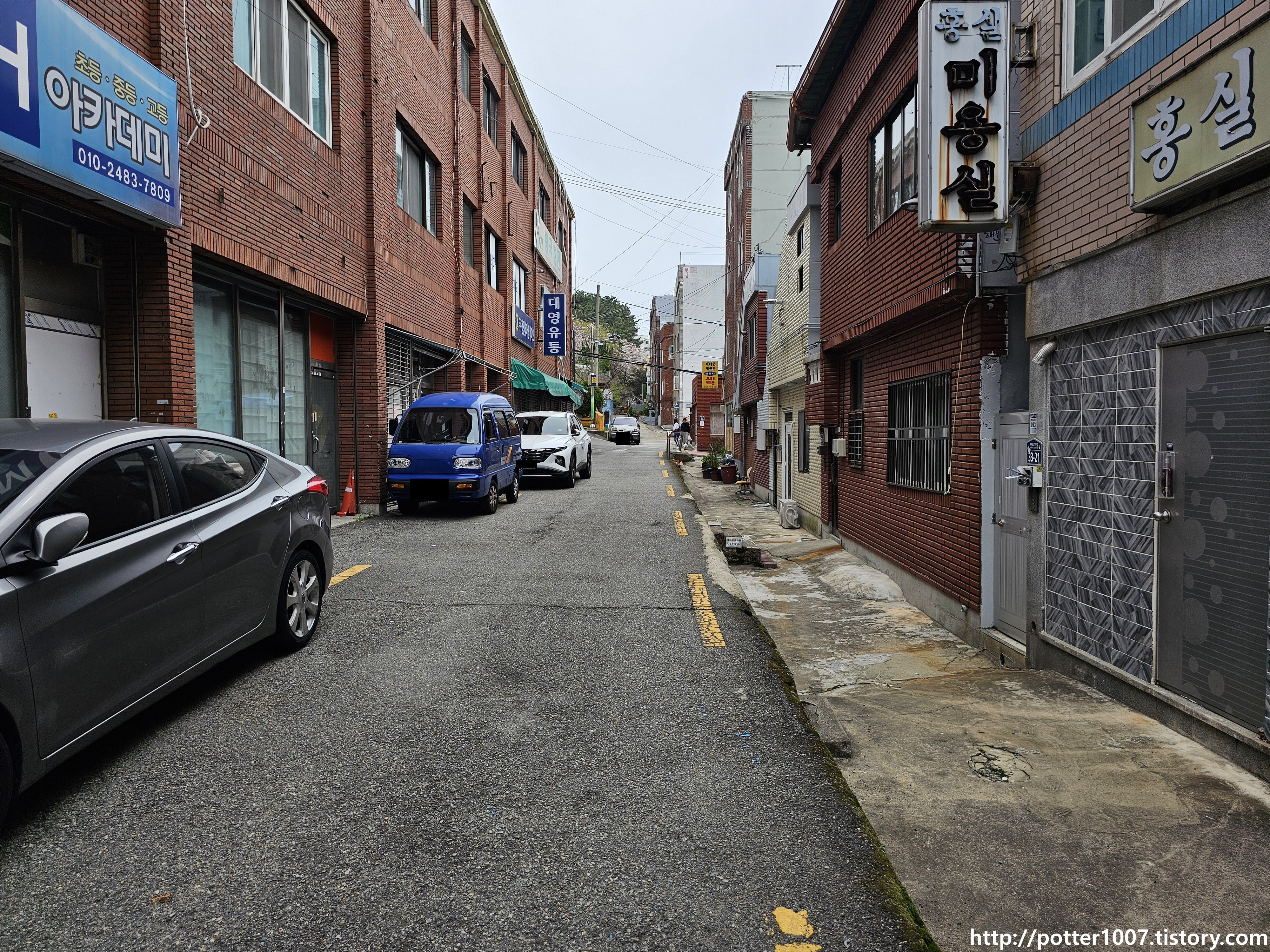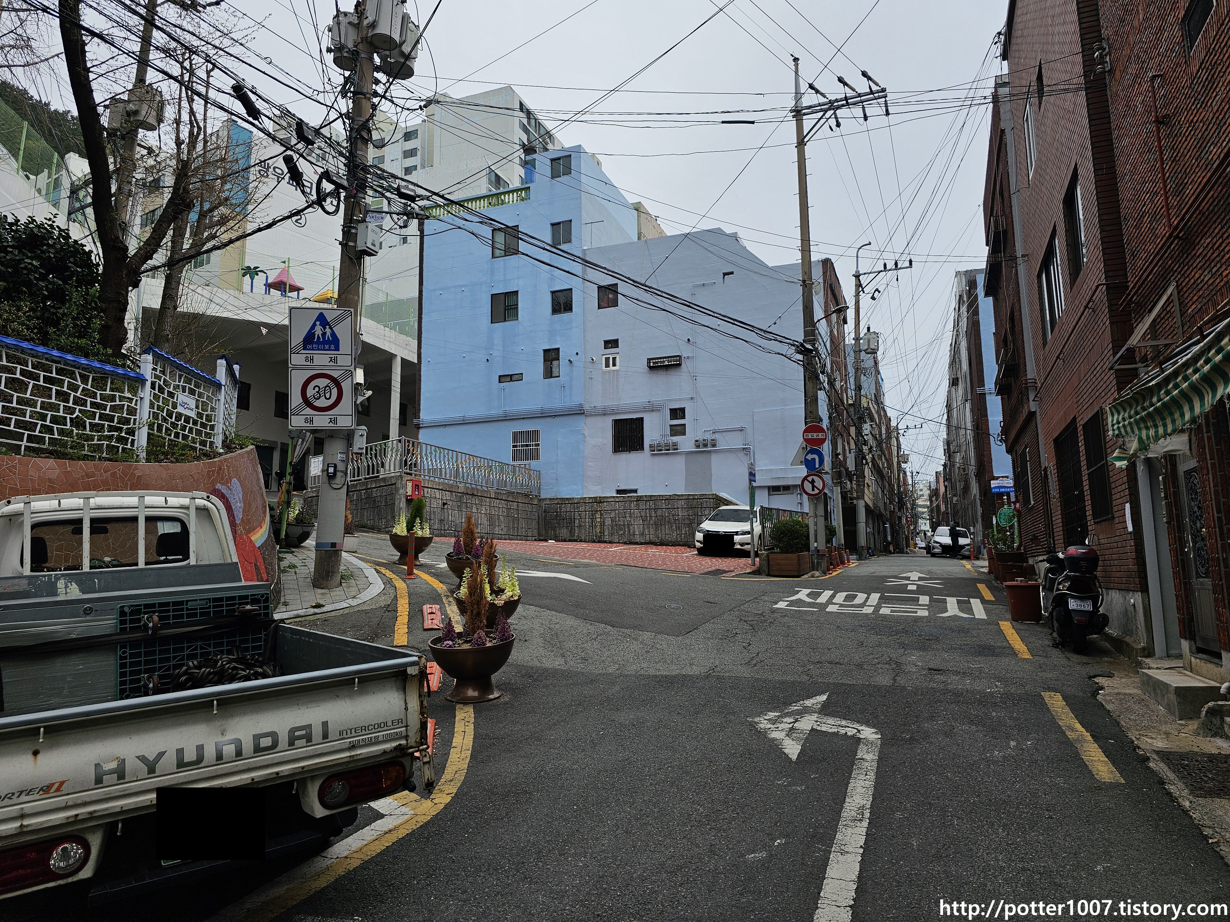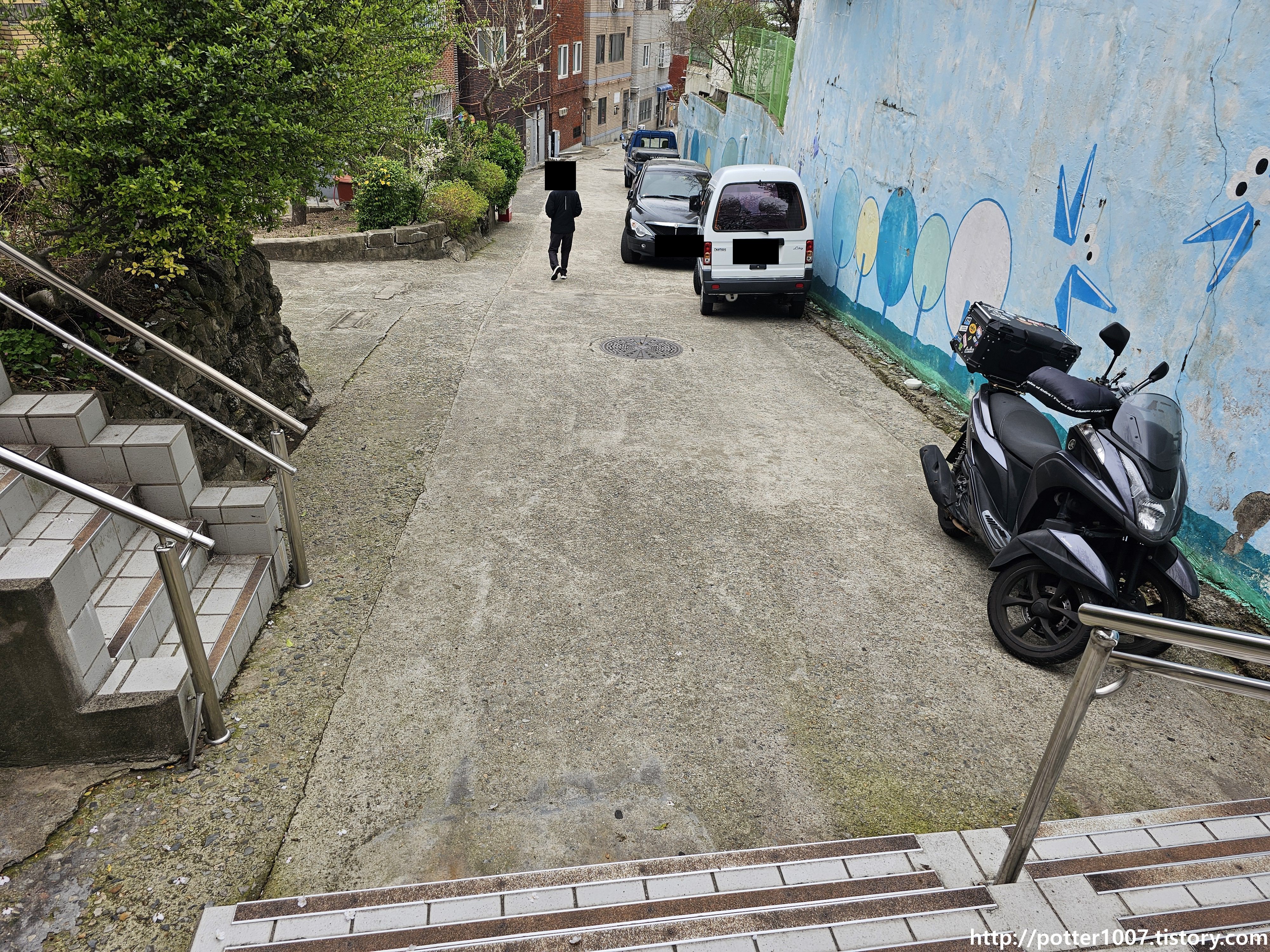 위로 올라오면 아까 지나갔던 재반로 212번길을 만나게 됩니다.