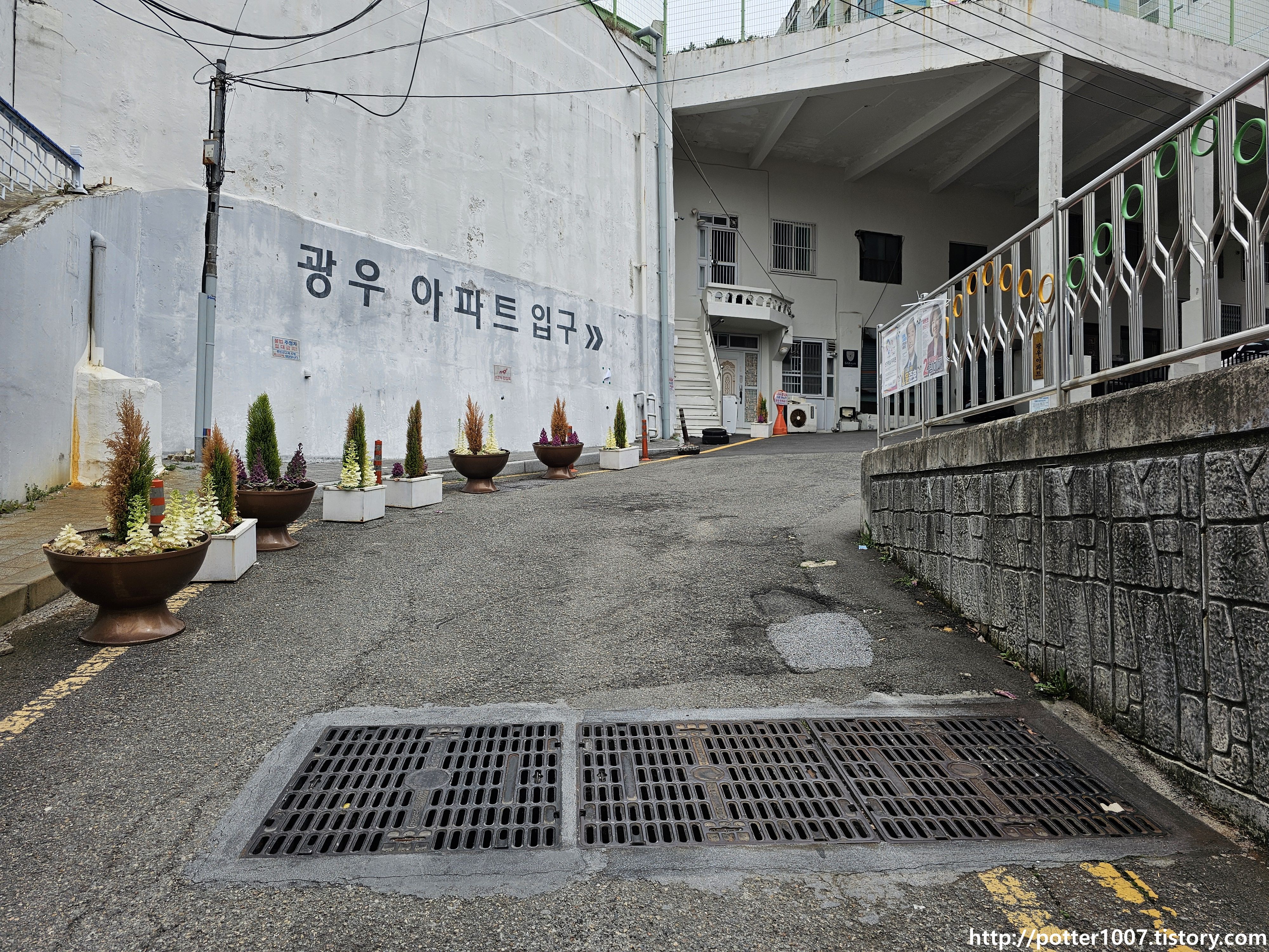 정면에 광우아파트 입구라고 써있어서 말그대로 광우아파트의 진입로인줄 알았으나, 실제로는 길입니다. 물론 광우아파트로 들어가는 길도 있습니다.