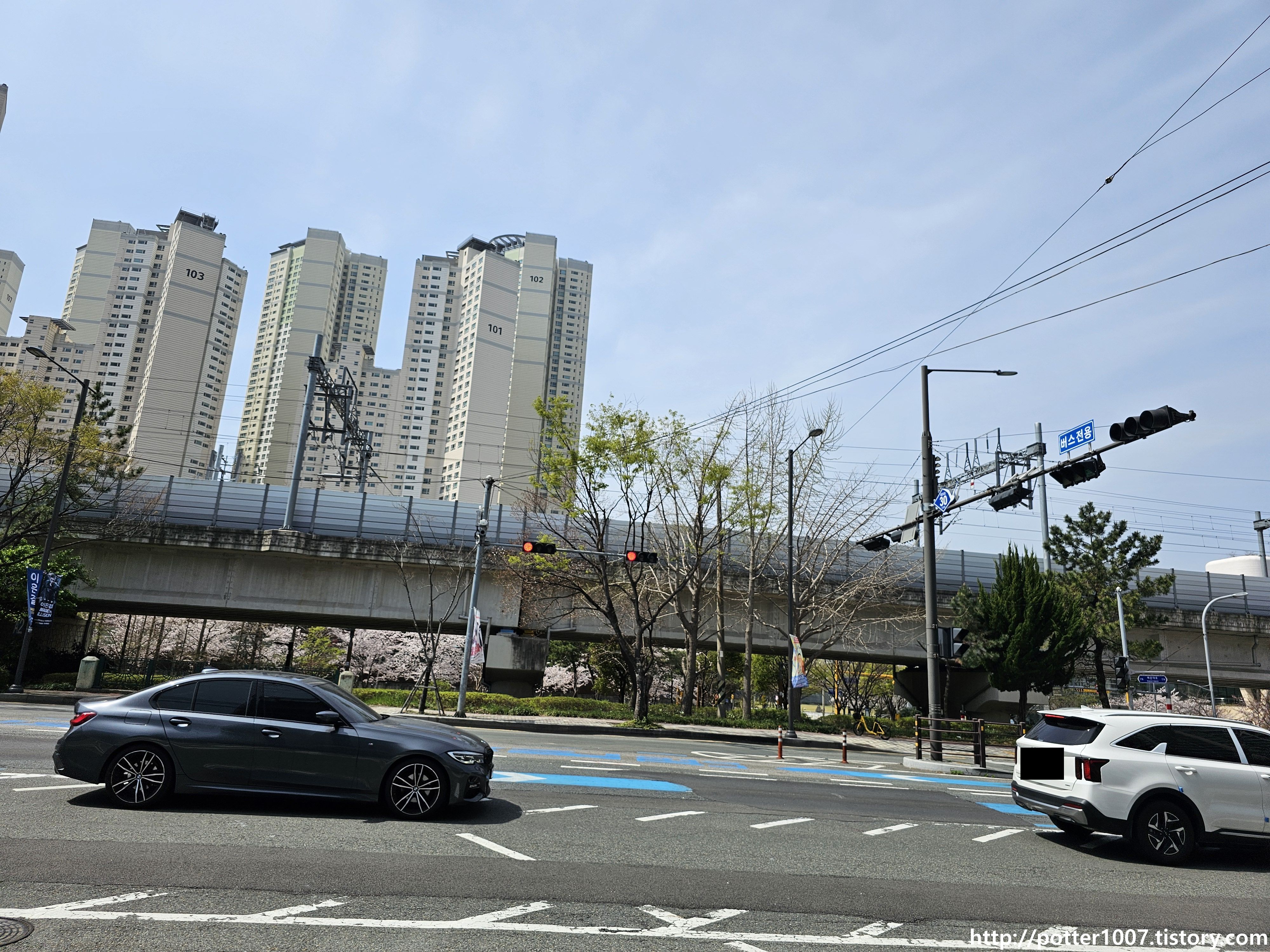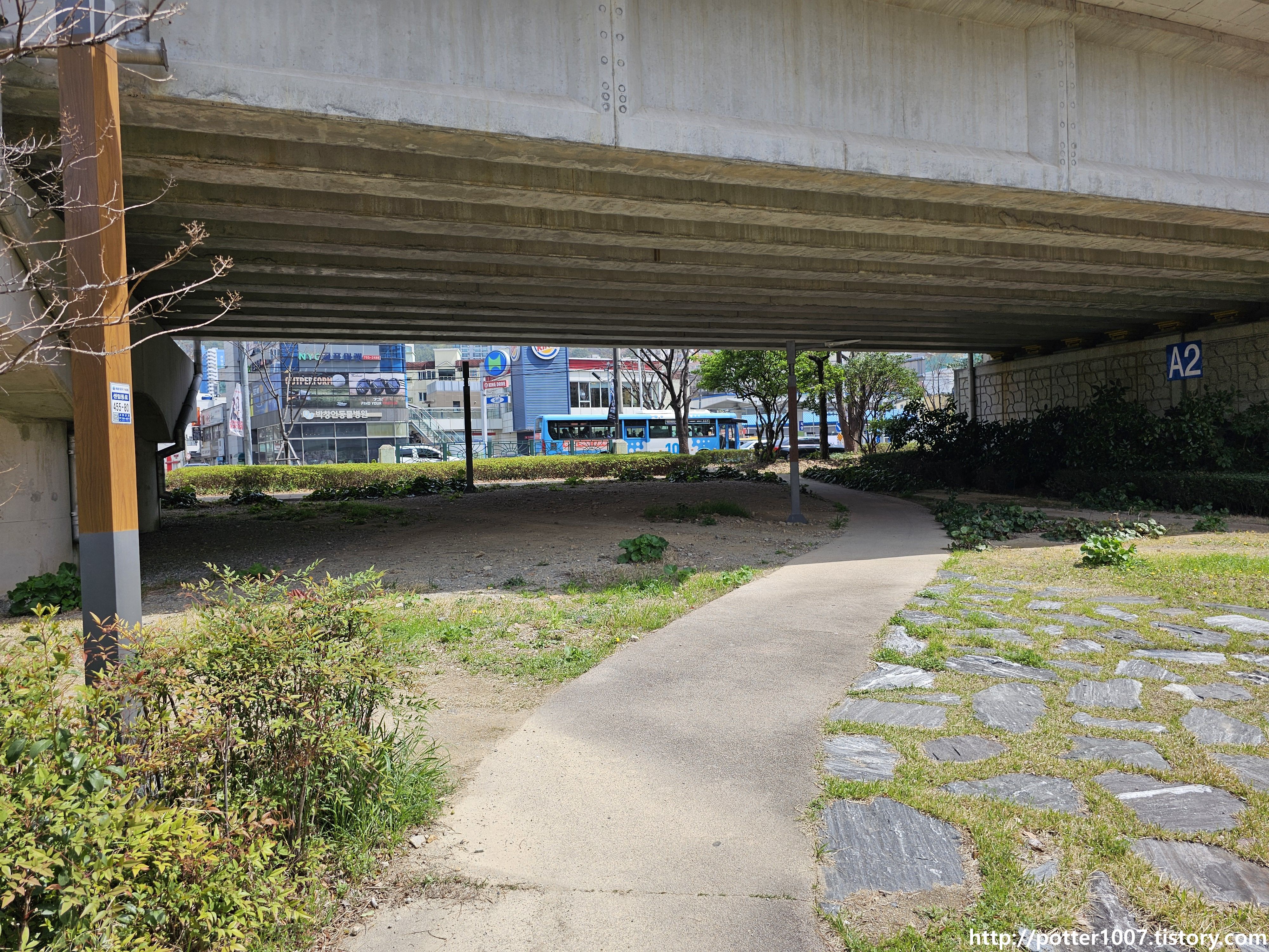 그 다음에는 동해선 고가 아래를 지나가는데, 도로를 따라가지 않고 오른편으로 빠집니다.