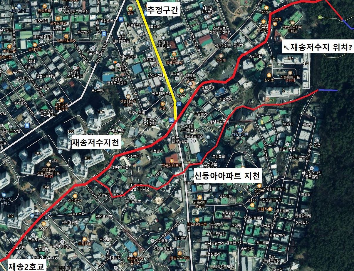 재송저수지가 있었다면 이 부근이었을 것입니다.