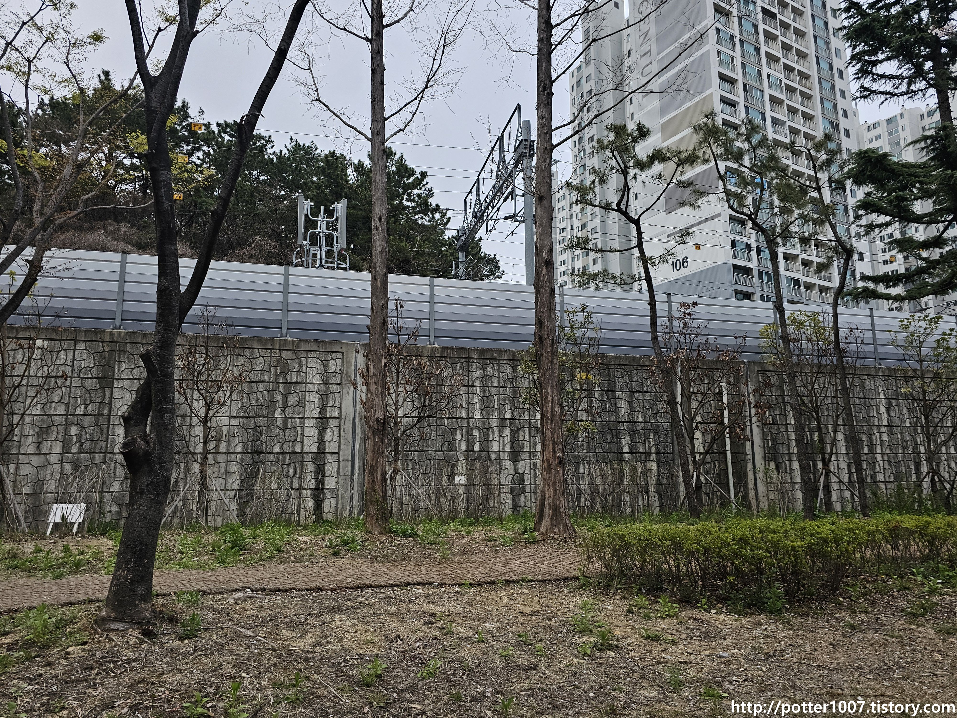 얼마 안가서 재송천은 사진에 보이는 방음벽 너머 동해남부선을 넘어갑니다.