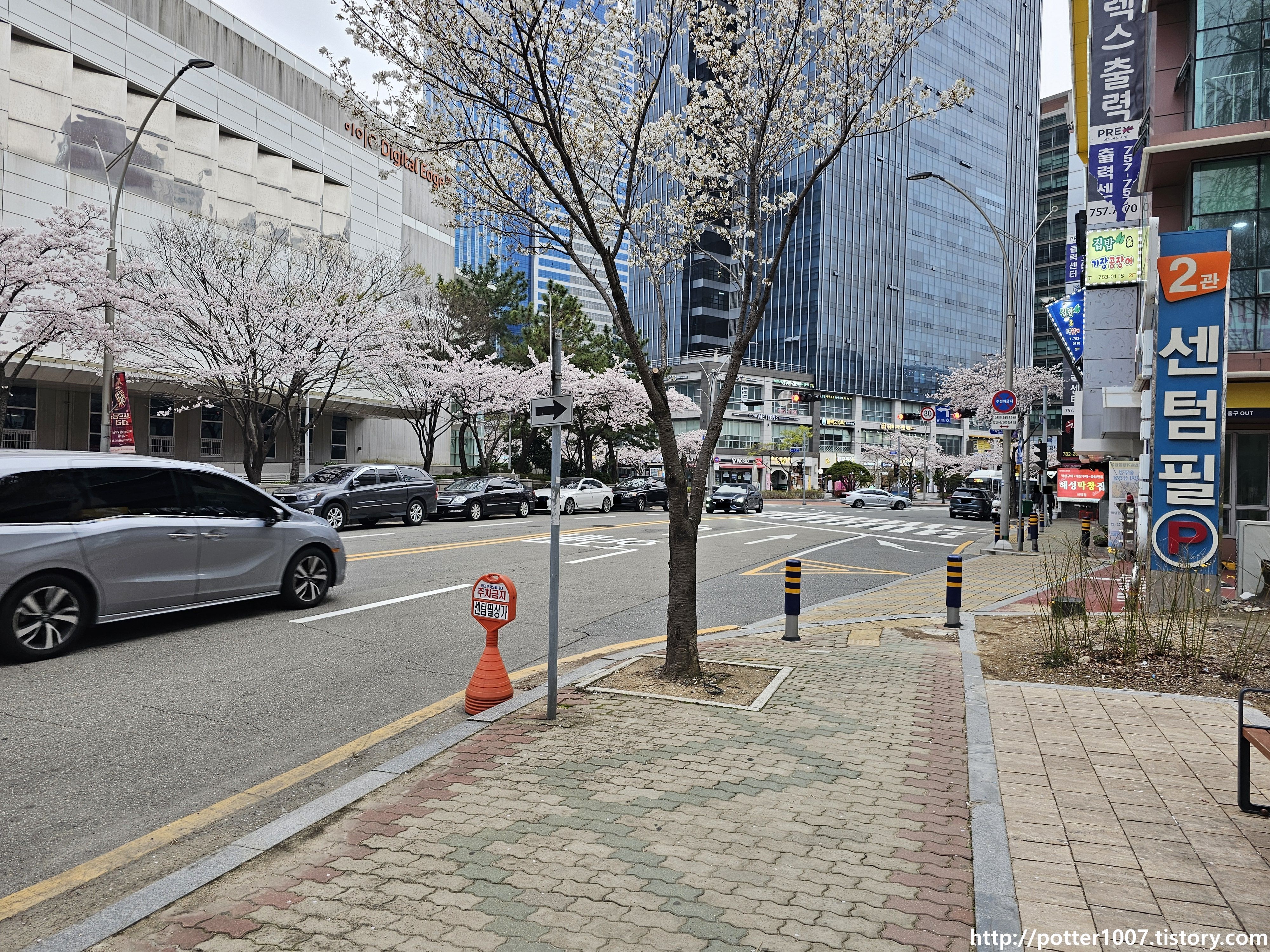센텀동로와 센텀7로와의 삼거리에서부터 시작합니다. 왜 하필 여기서부터냐면, 처음에는 센텀7로쪽으로 빠져나가 수영강에 합류한다고 생각했기 때문입니다. 이전에도 언급했지만 센텀시티는 과거 수영공항이었던 곳을 개발한곳인데, 공항의 활주로가 서북-동남방향으로 길게 뻗어있었기 때문에, 하천들이 우회해서 흘렀습니다. 그래서 재송천이 재송저수지천까지 있는곳까지 가서 수영강에 합류했던건데, 센텀시티를 개발하면서 유로변경을 했을거라 생각하고 답사했더니만 아니더군요. 어쩐지 센텀7로쪽으로 가도 수영강쪽 토출구가 없어서 이상하다고는 생각했는데... ㅠㅠ