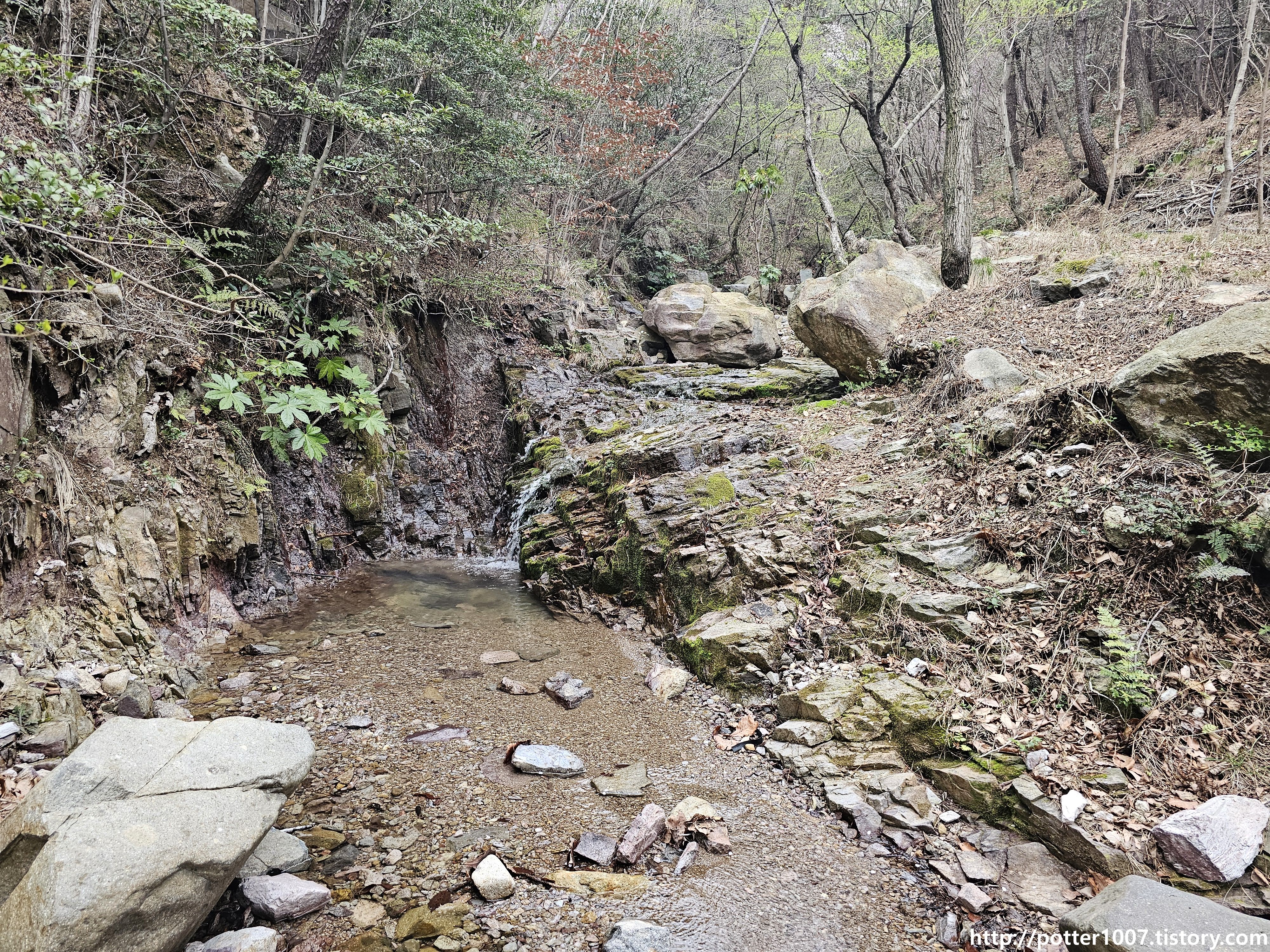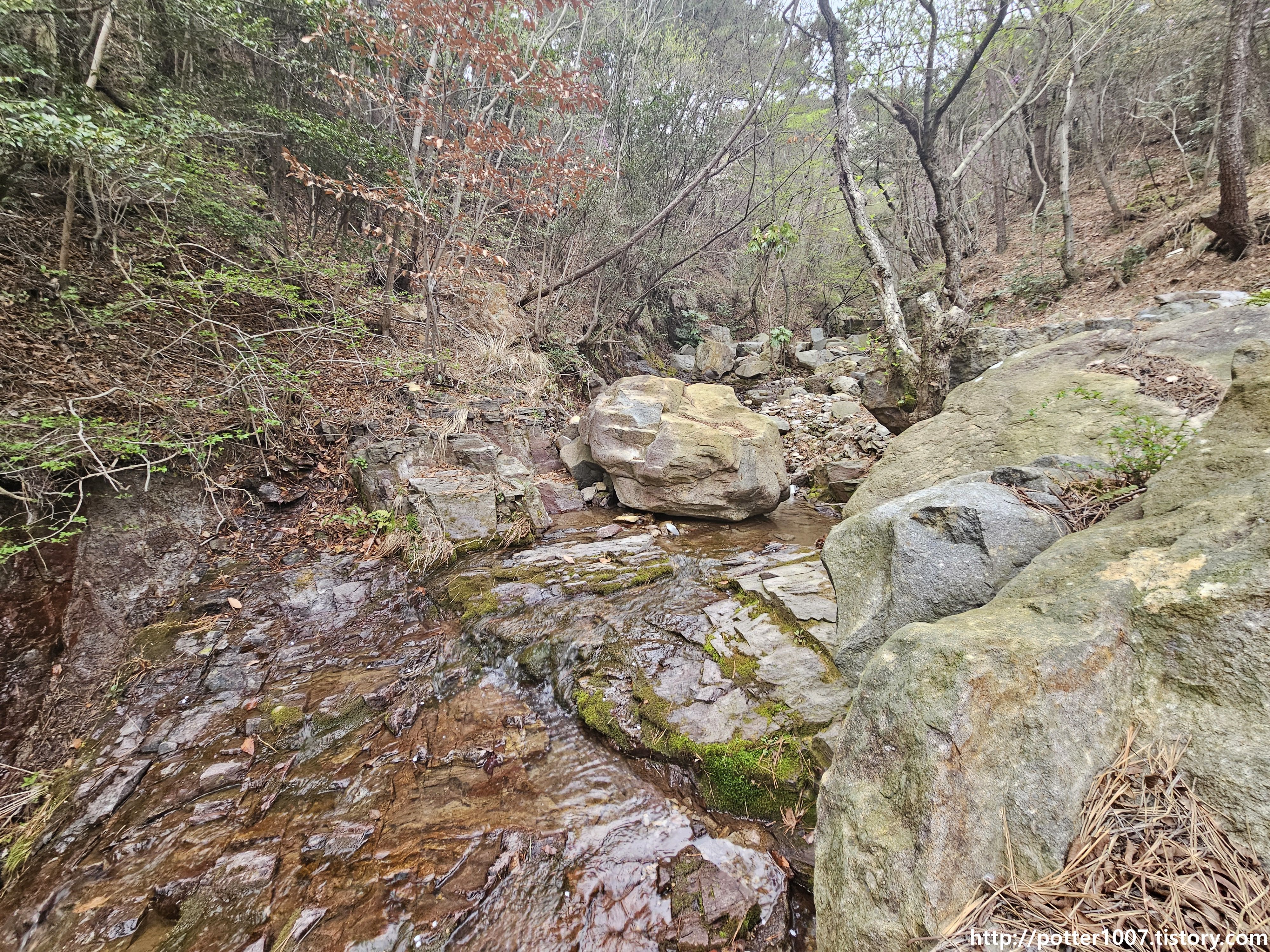 하천을 따라가는 등산로가 있어서 하천을 보기가 쉽습니다. 근데 이 등산로를 접근하는 길이 괴상할 뿐입니다.