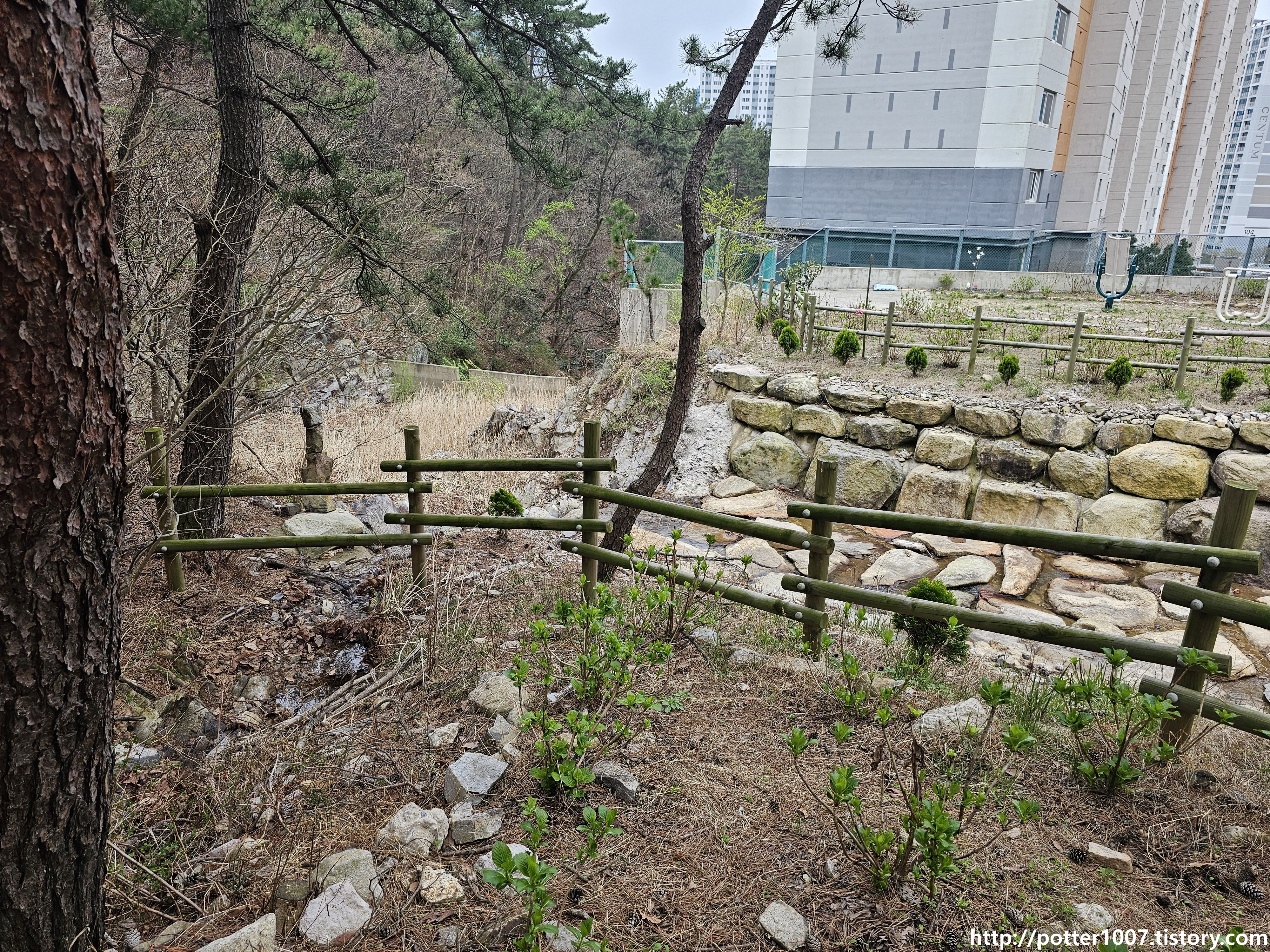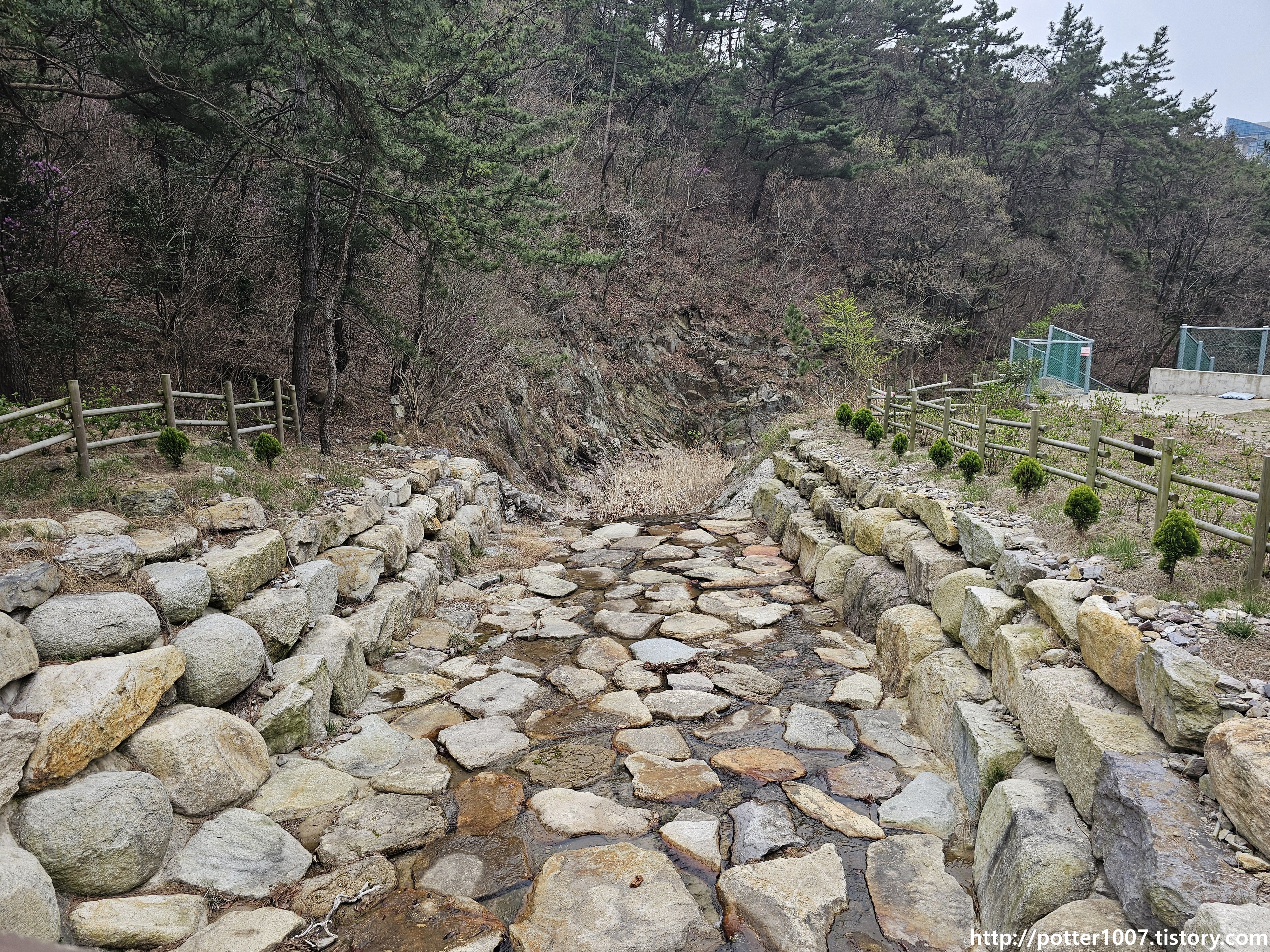 아파트 뒤쪽으로 오니 비교적 정비된 사방댐이 나옵니다.
