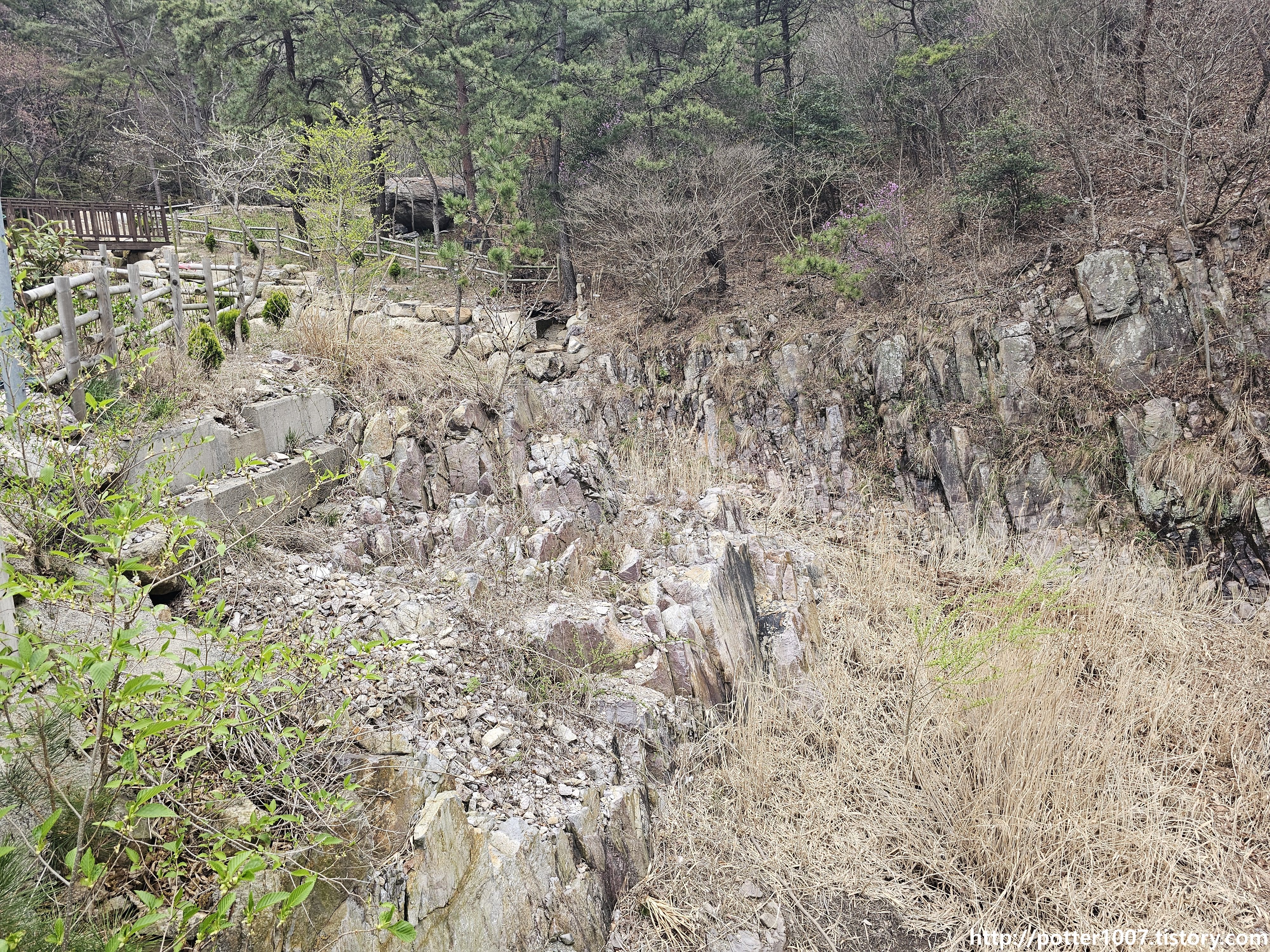 이곳은 하천정비 관련하여 의도적으로 바위를 쪼갠듯 합니다.