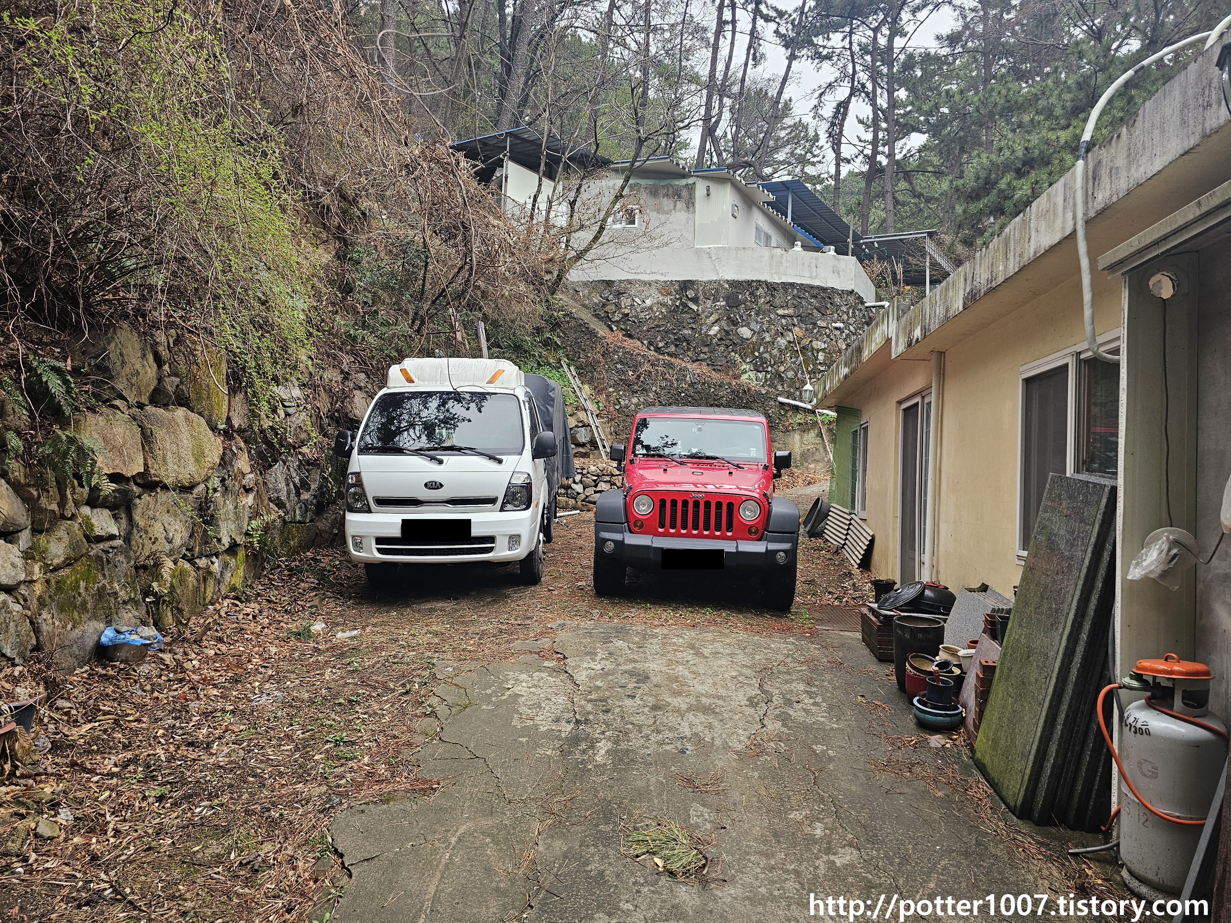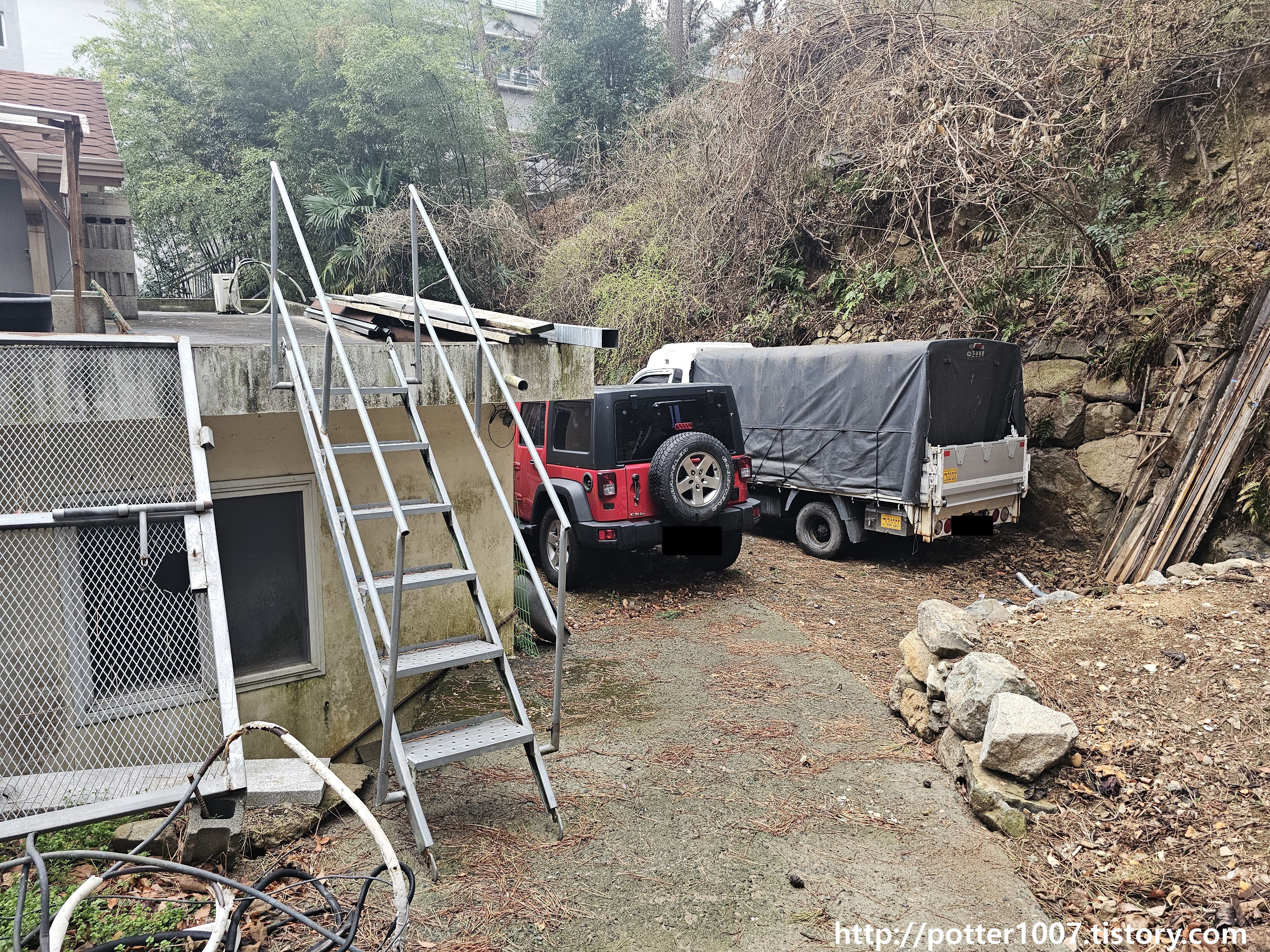 하천 위를 복개하여 집 마당으로 쓰고 있습니다.