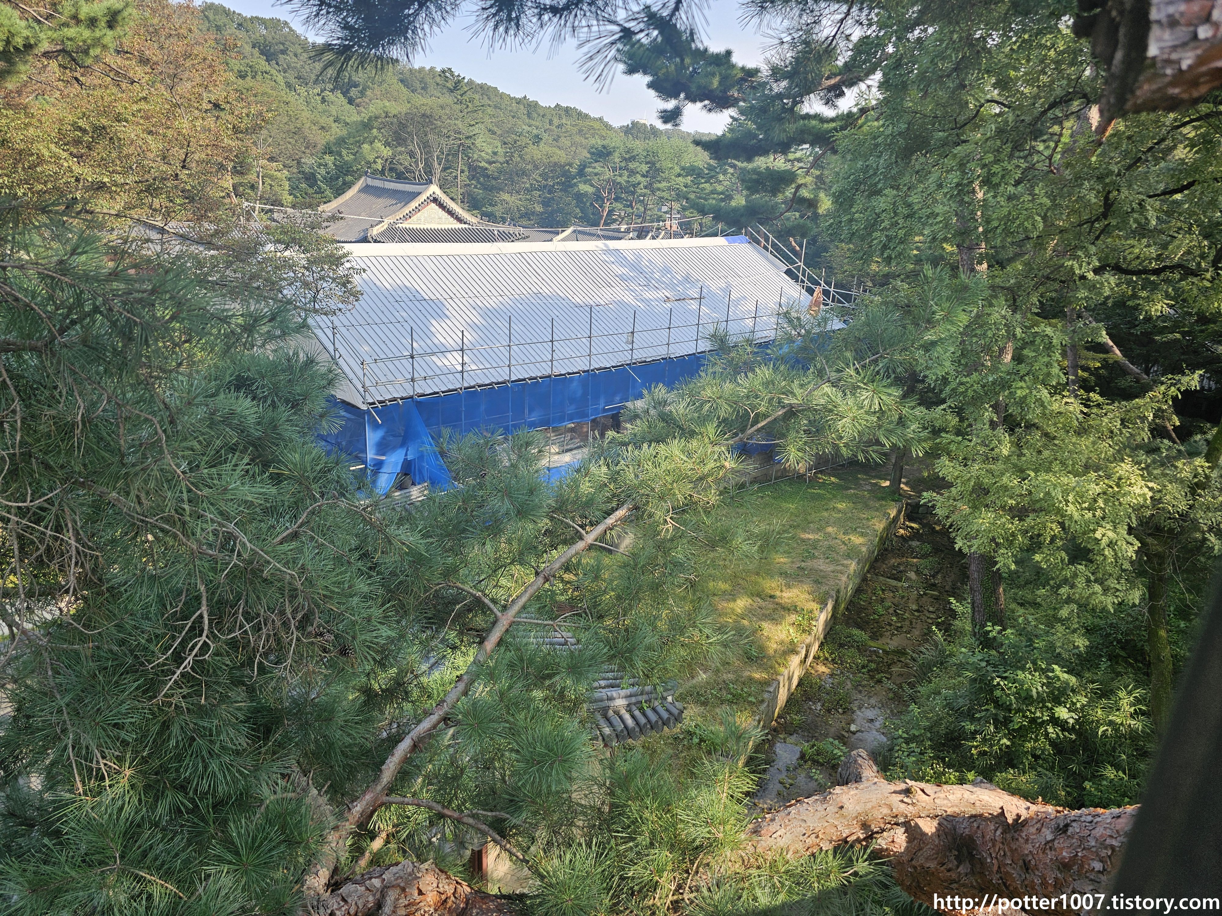건너편에는 보수공사중인 모습이 보이는데, 위치상 재실로 보입니다.