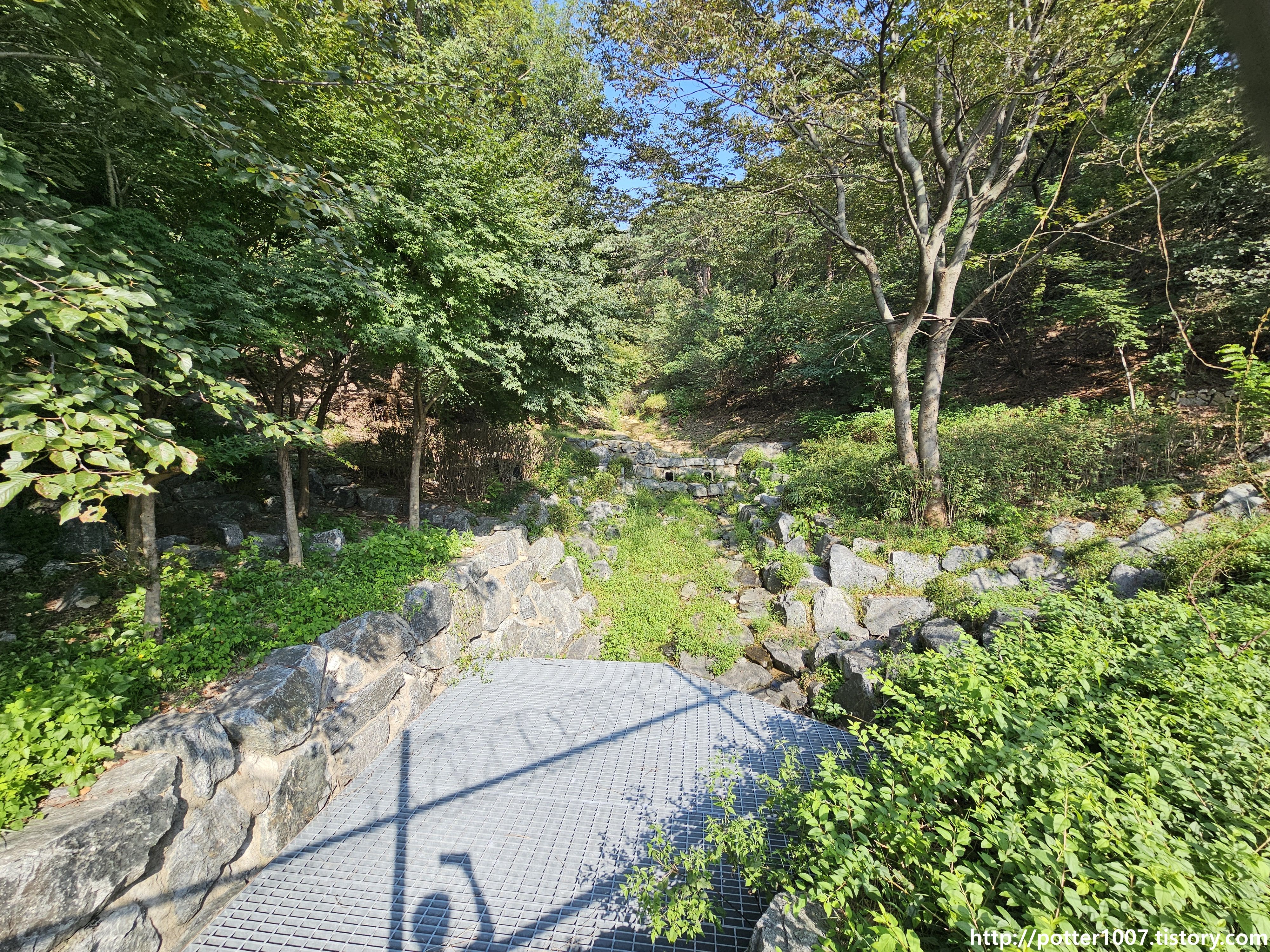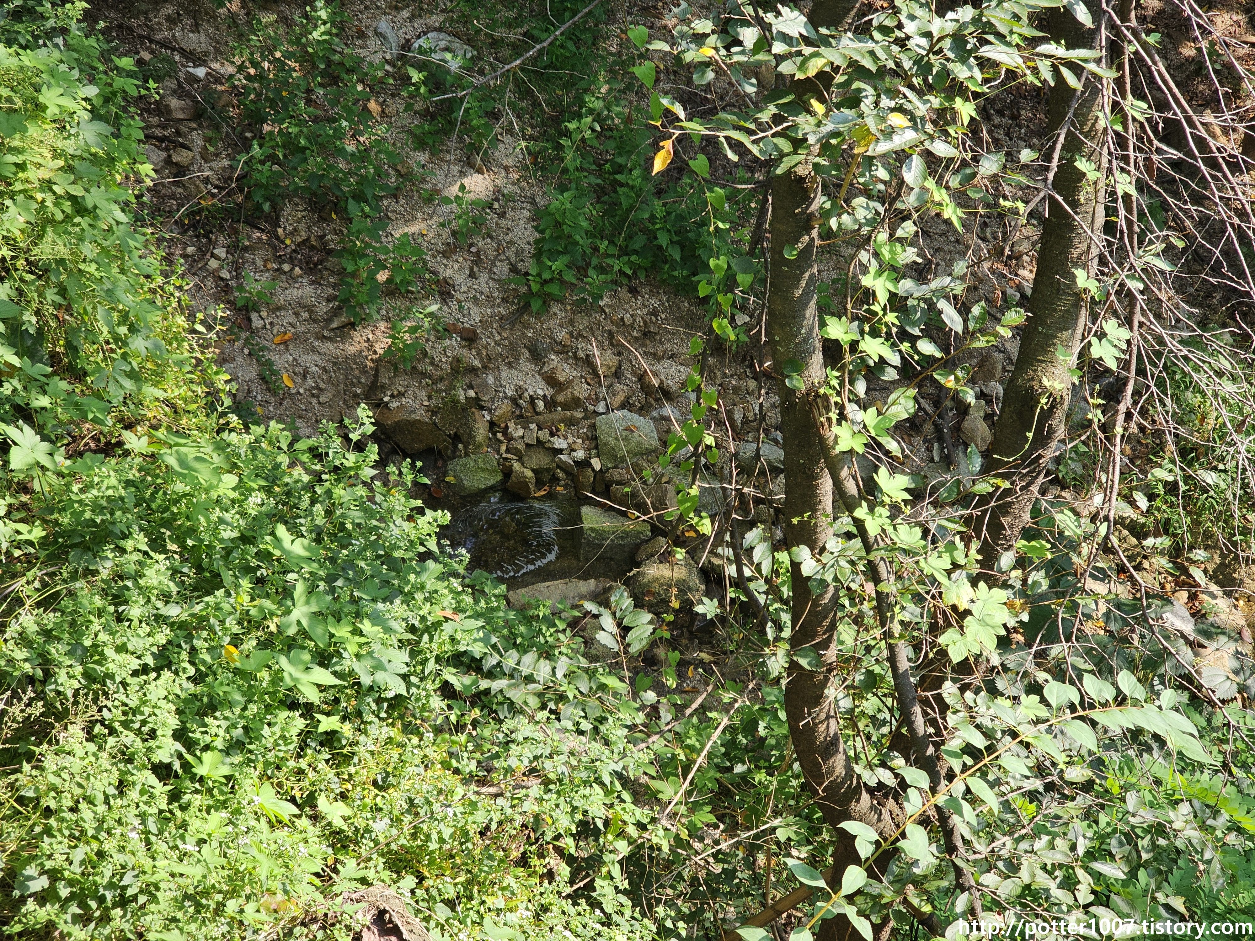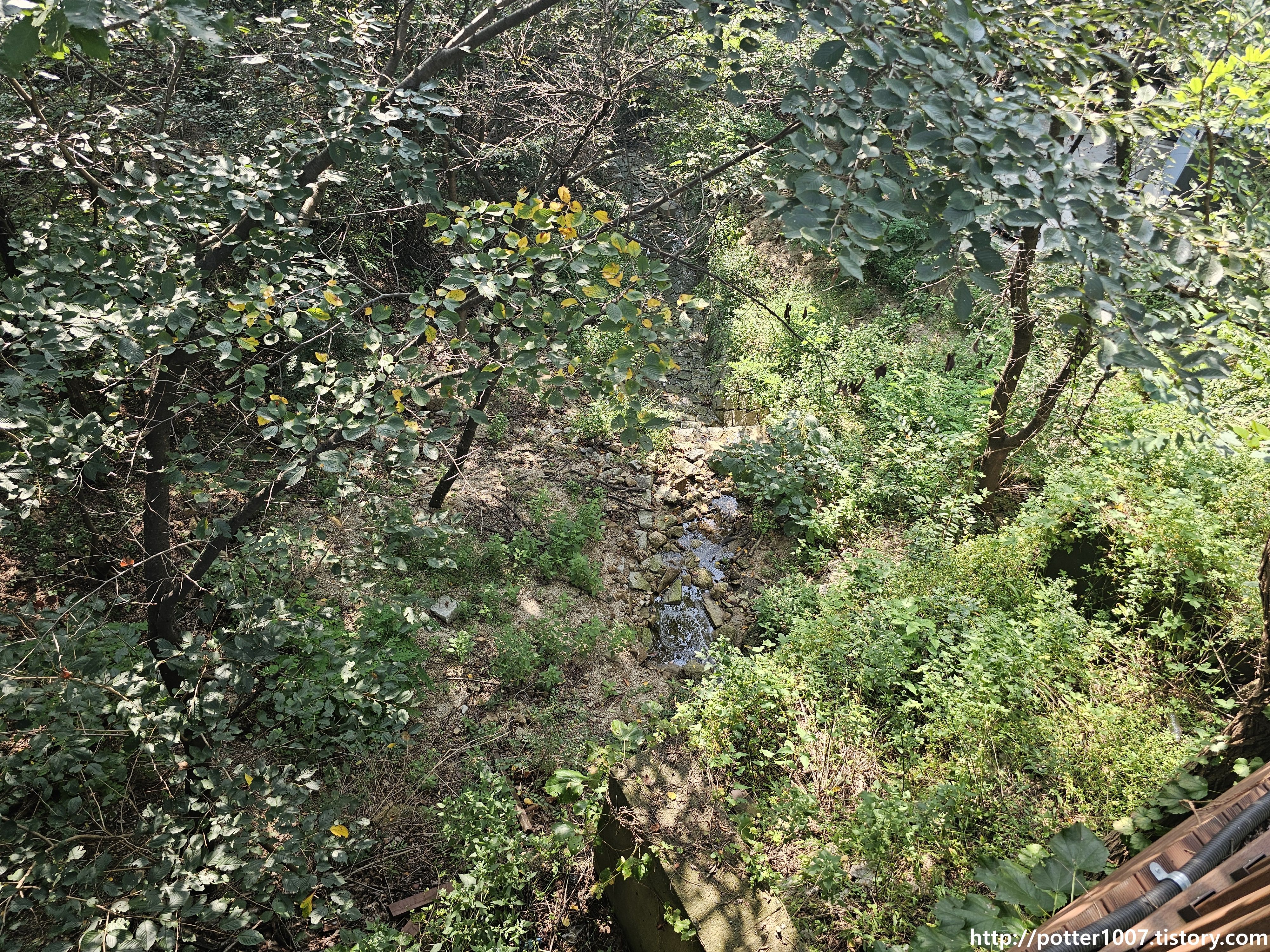 와룡공원길을 따라 더 올라가면 신선원전 서쪽 지천에 합류하는 또다른 지천을 만날수 있는데, 이쪽은 상류방향쪽으로는 흔적이 없으므로 하류방향만 봤습니다. 그래봤자 물이 거의 흐르지 않아서 대충 보면 알아보기가 어려울 정도입니다.