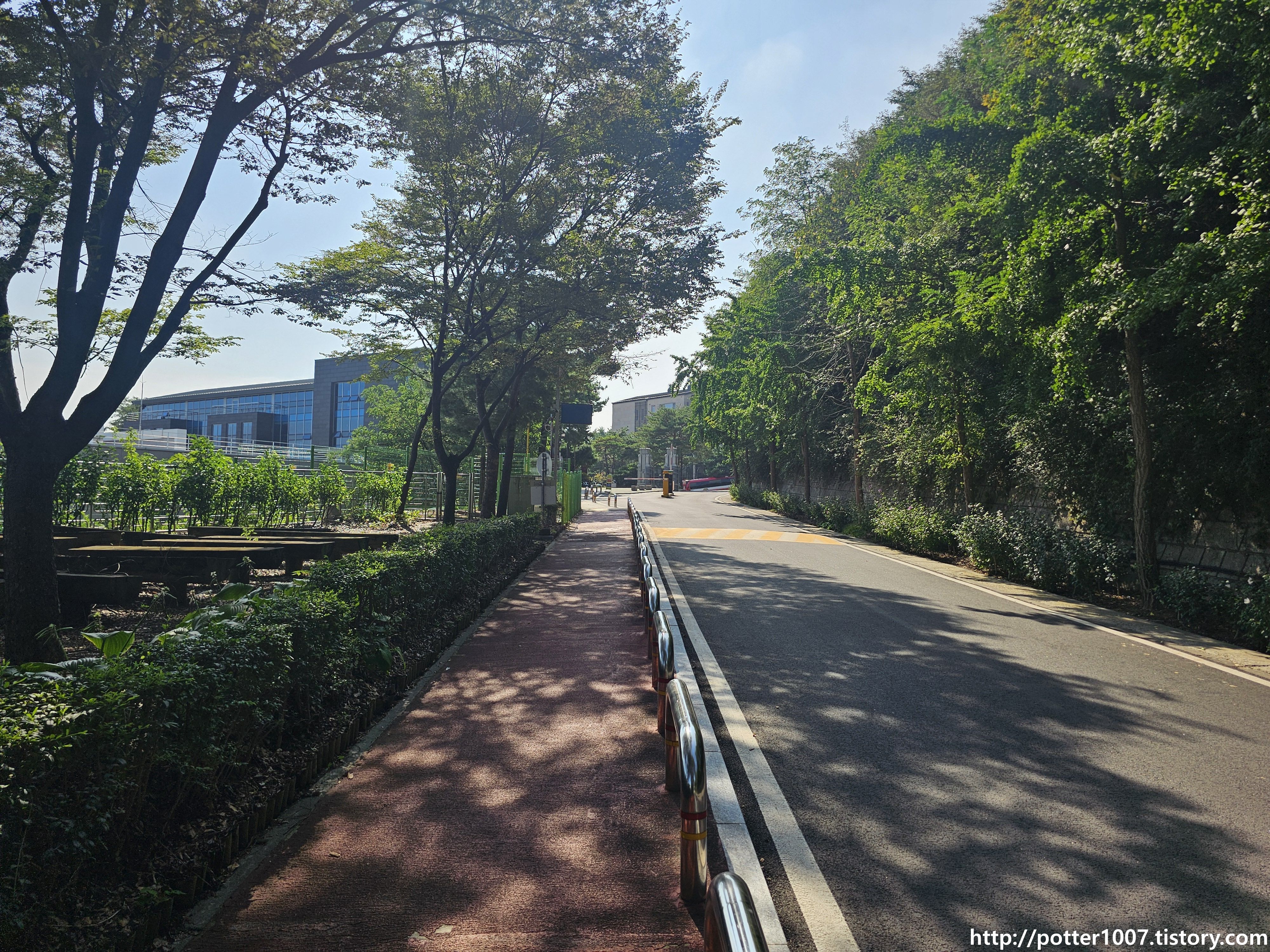 그래서 중앙중학교 뒤쪽에 있는 고려사이버대학교까지 옵니다.