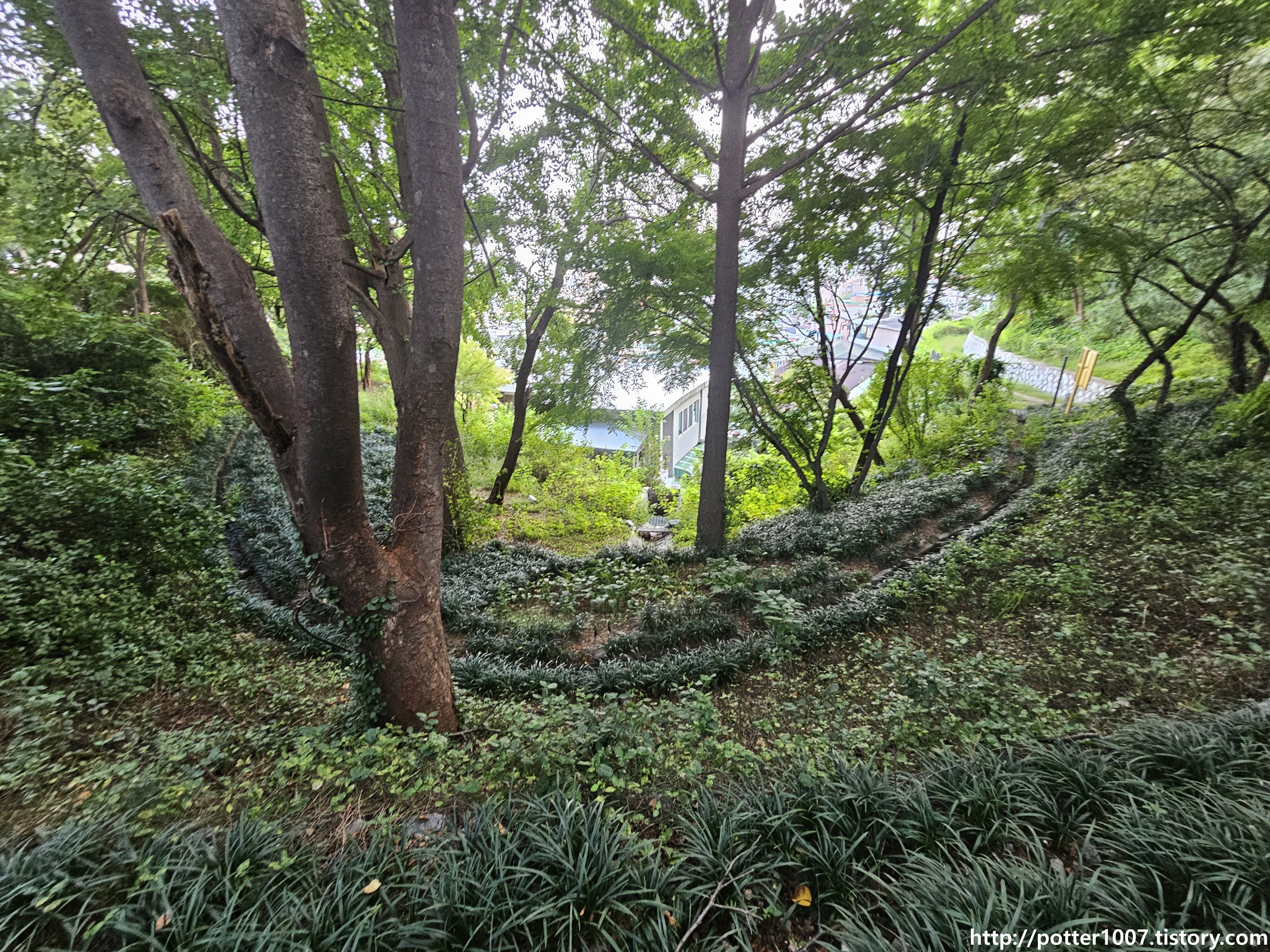무엇보다 이 지천은 산책로까지 이어지지 않고 중간 산등성이를 두르는 배수로와 연결되어 끝납니다. 어짜피 위 사진 뒷편으로는 얼마 올라가지 못하므로 지천이라고 보기에도 민망한 수준인 셈입니다.