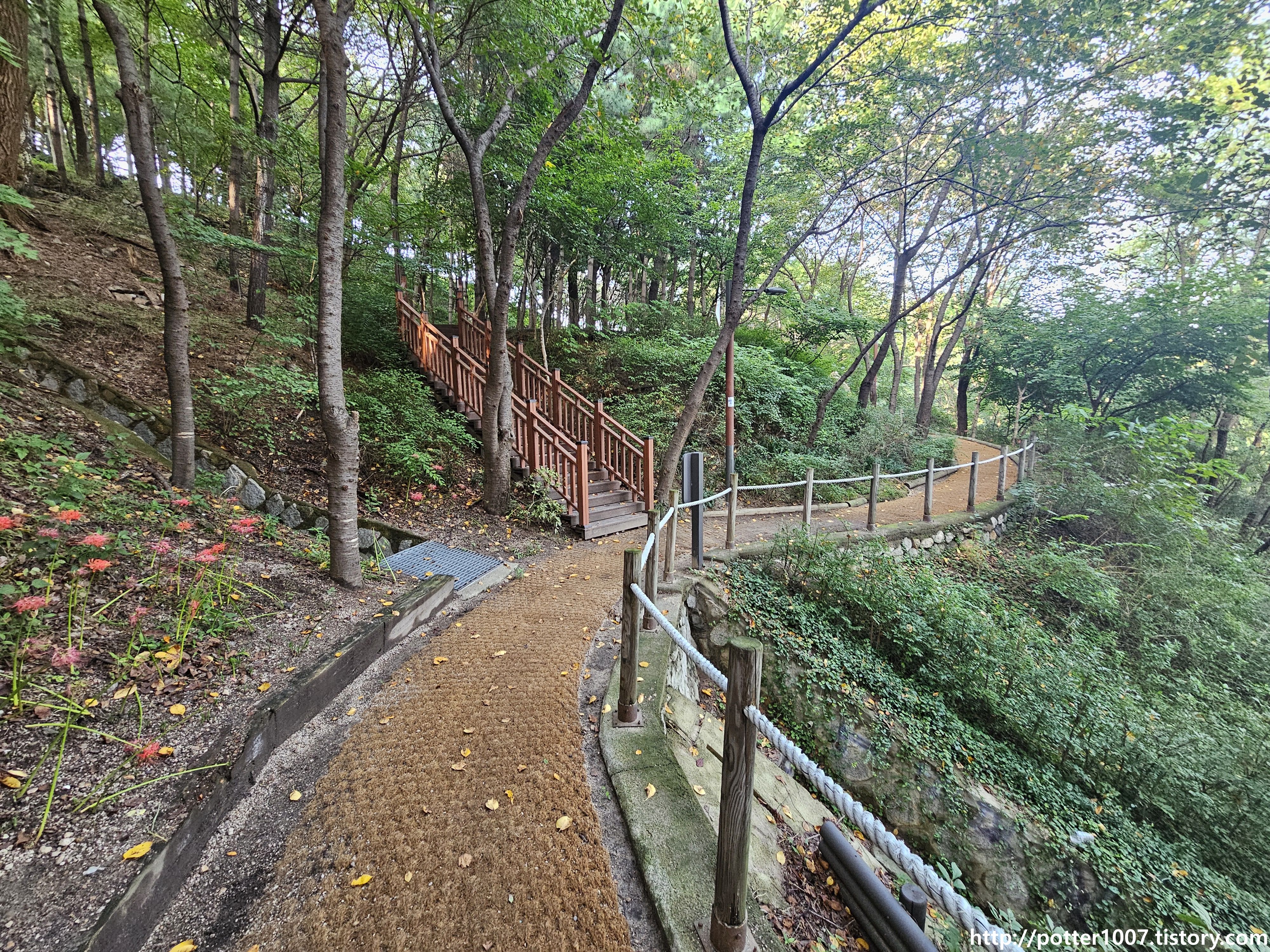 위쪽으로 올라가려면 명륜10길을 통해 길 종점까지 가서 산책로로 들어가야 합니다.