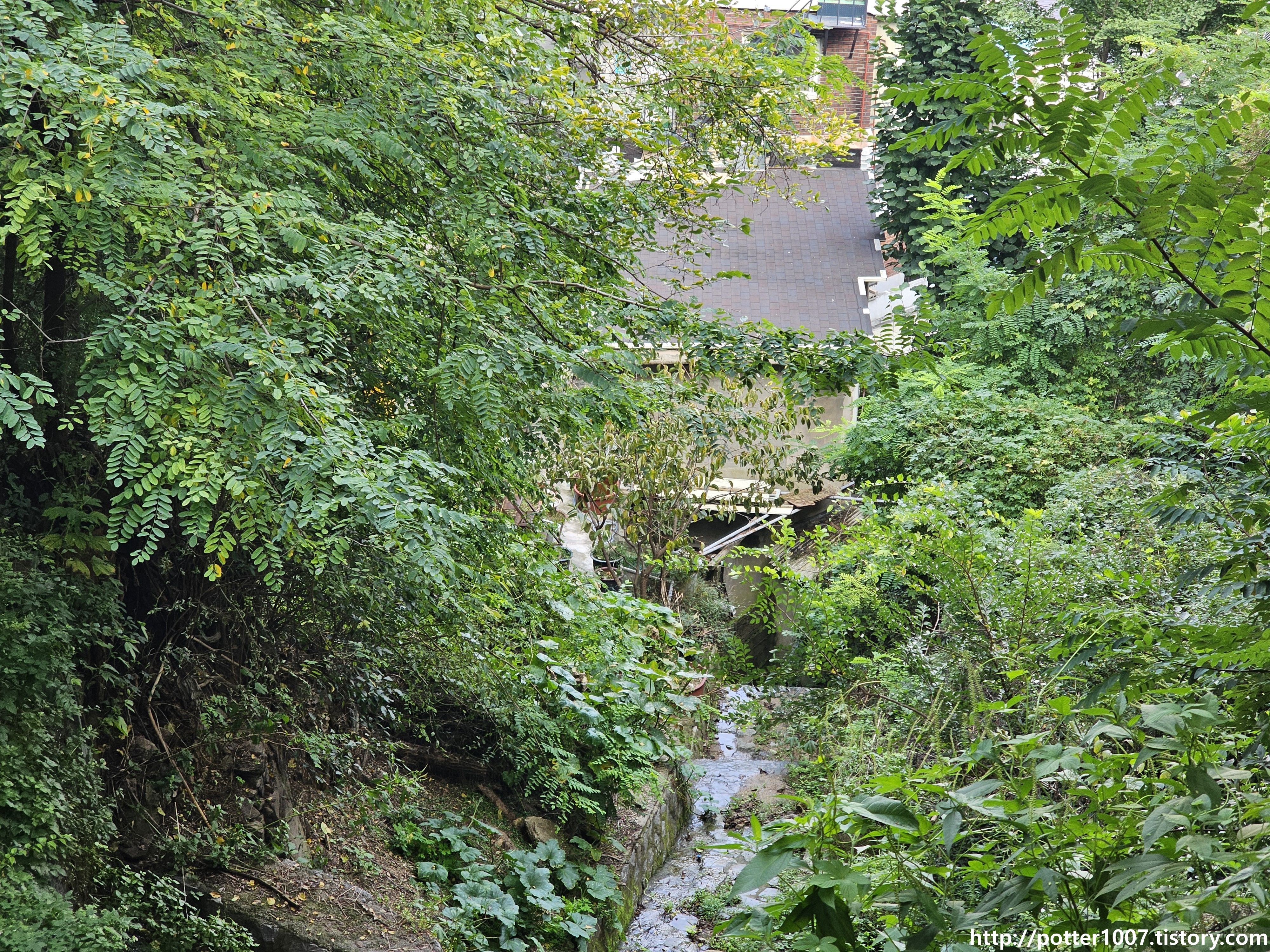 다만 하천이 이쪽이 아닌 왼쪽으로 내려가서 들어가기 때문에 복개되는 지점이 잘 보이지 않습니다.