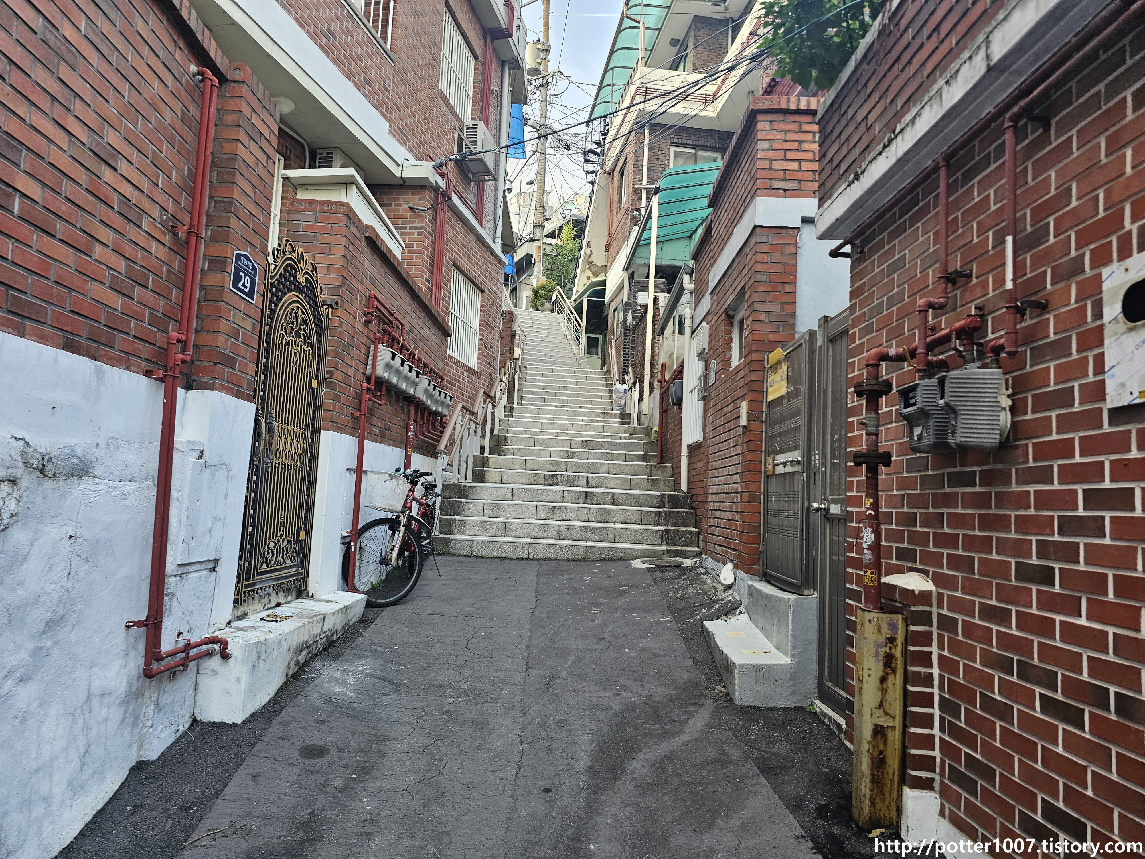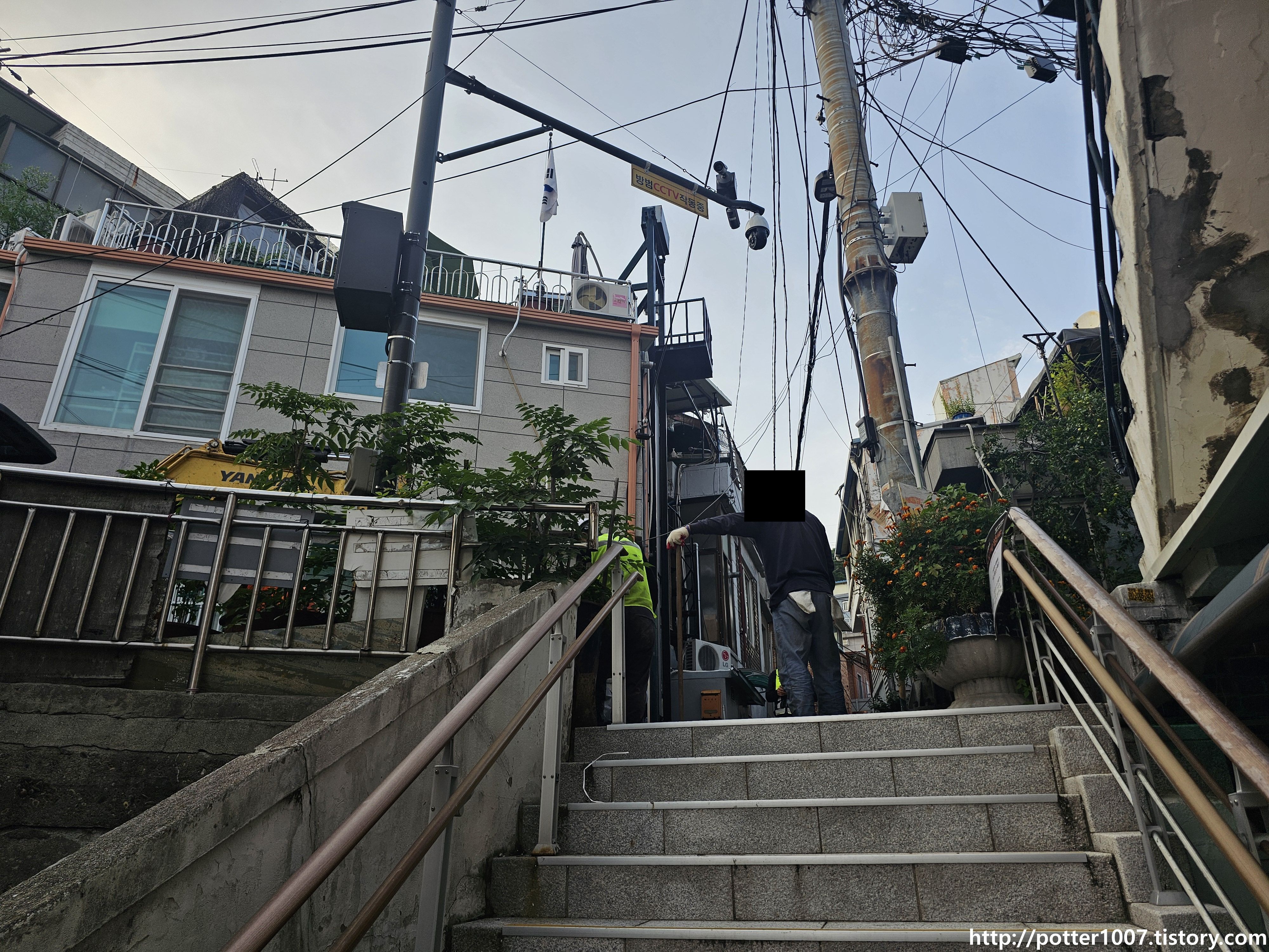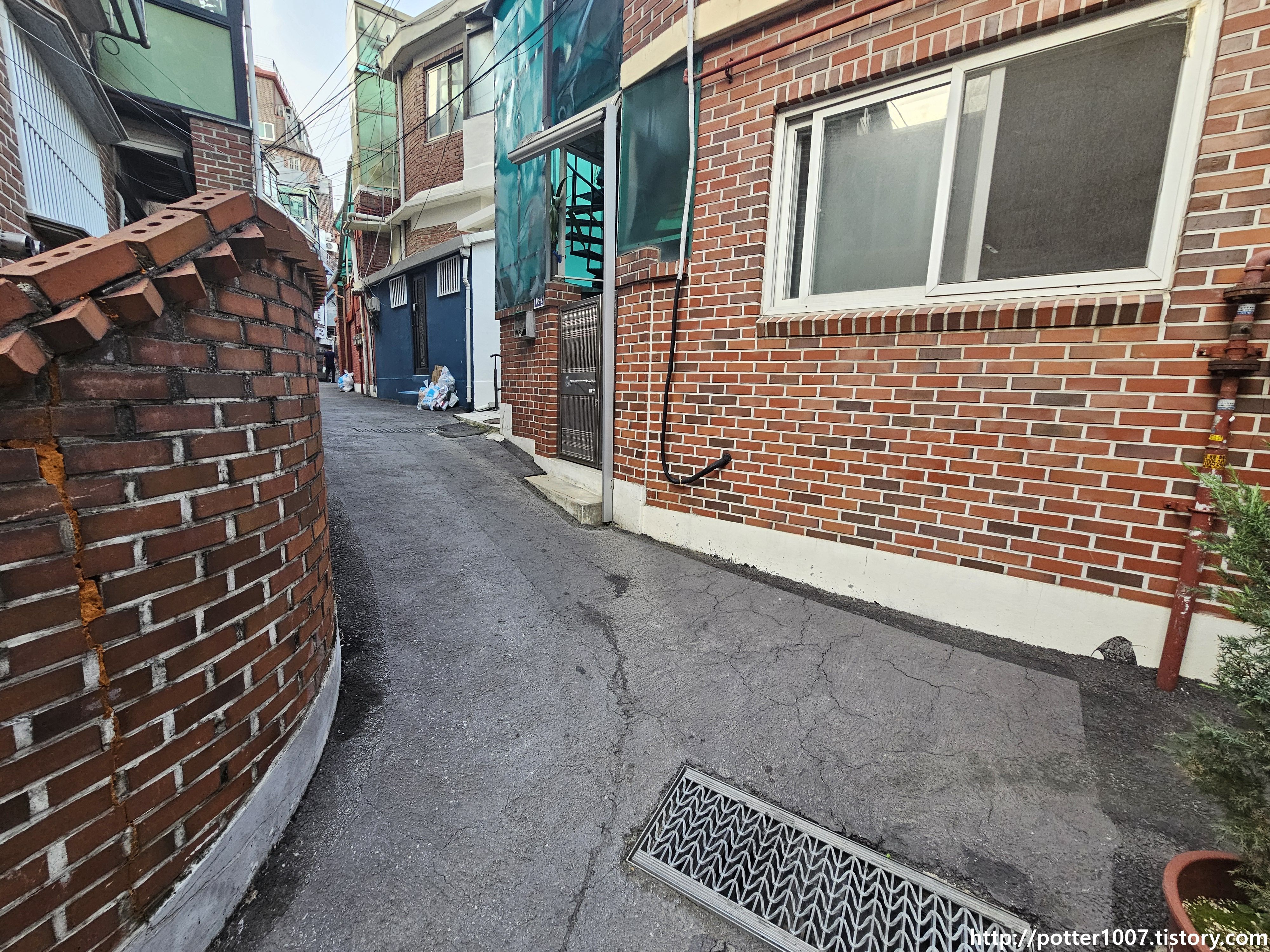 올라가면 명륜7길과 교차하는 지점이 나옵니다. 그곳에서 상수도 공사중이었는데 아쉽게도 지나가는 지점을 땅파고 있지는 않았습니다.