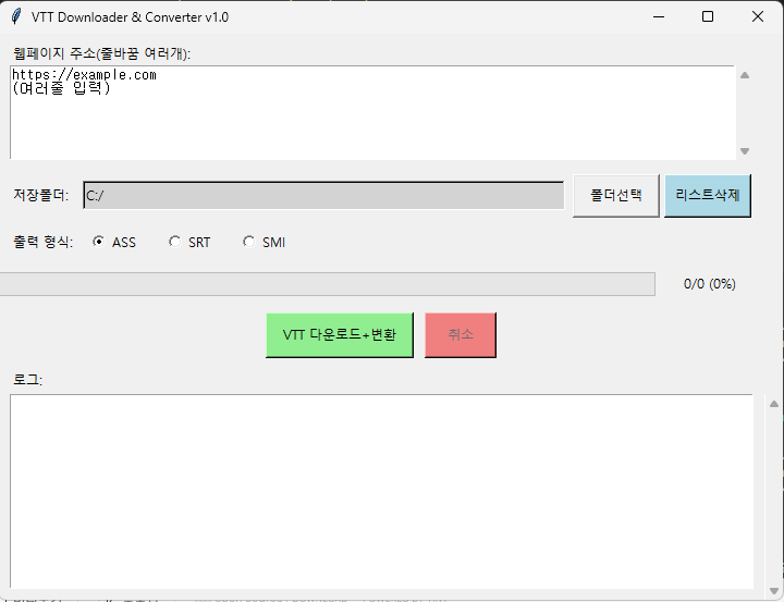 4. VTT 다운로드&변환 버튼을 누르면 알아서 웹페이지에서 vtt 자막파일을 찾아서 다운로드후 변환까지 해줍니다.