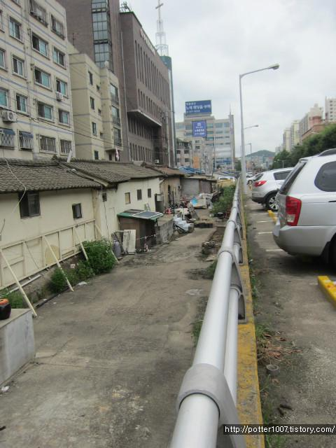 주차장 공간도 끝나고 이제는 각종 잡동사니가 복개천 위를 점령하고 있네요.