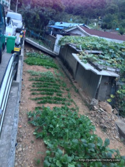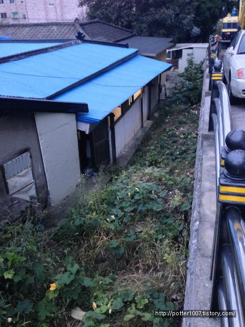 단층주택이 길보다 낮은곳에 위치해 있어 마치 절벽아래 집 같습니다.