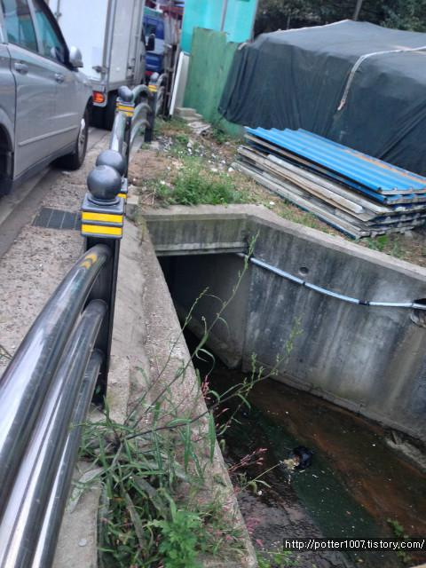 저 끝쪽이 하천이 아닌가 싶었으나 그렇게 보기에는 너무나도 작은 수로였습니다.