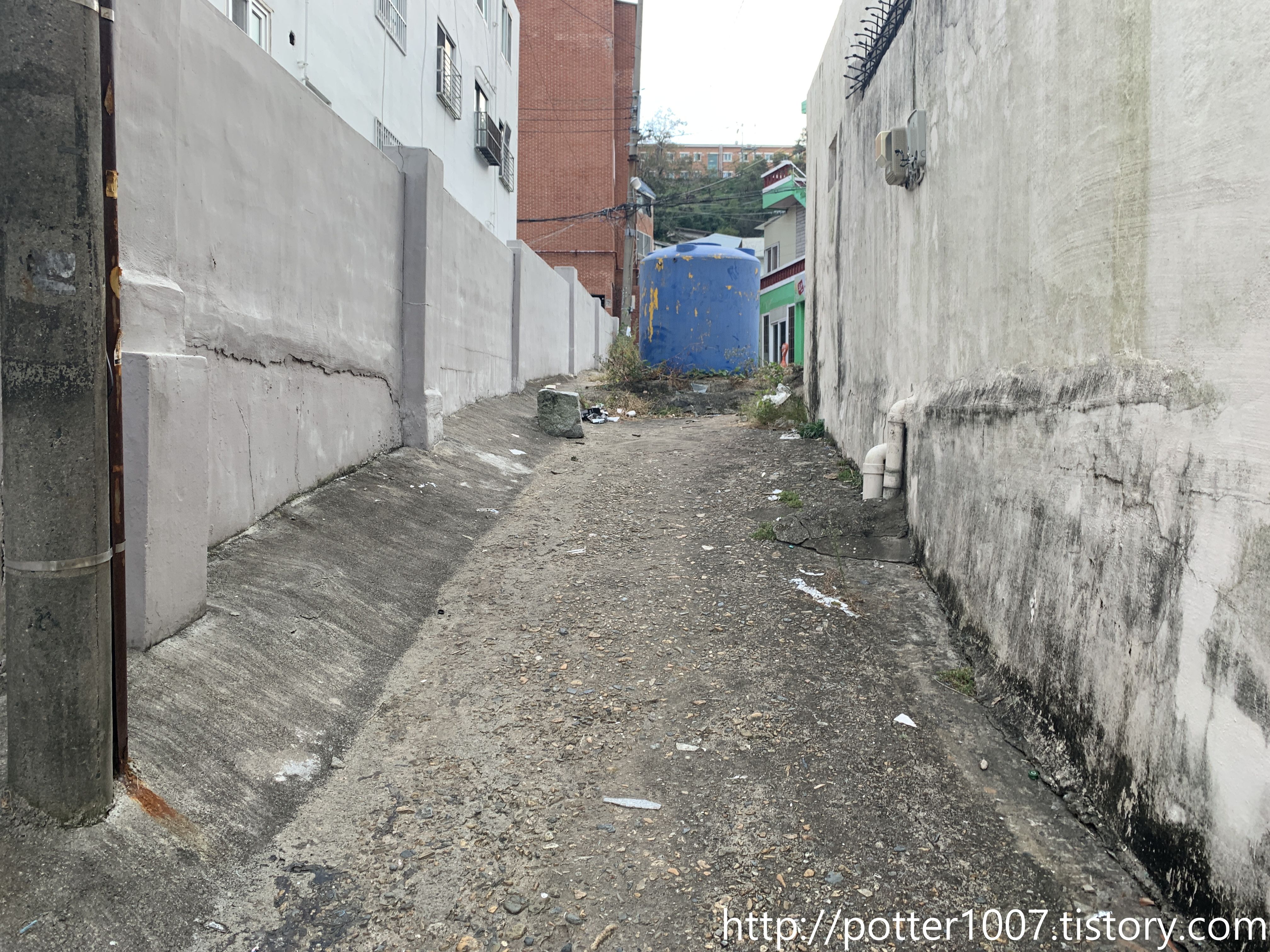 뜬금없이 나타나는 물탱크를 지나게 되면 옆길과 만나는 공터가 나옵니다.