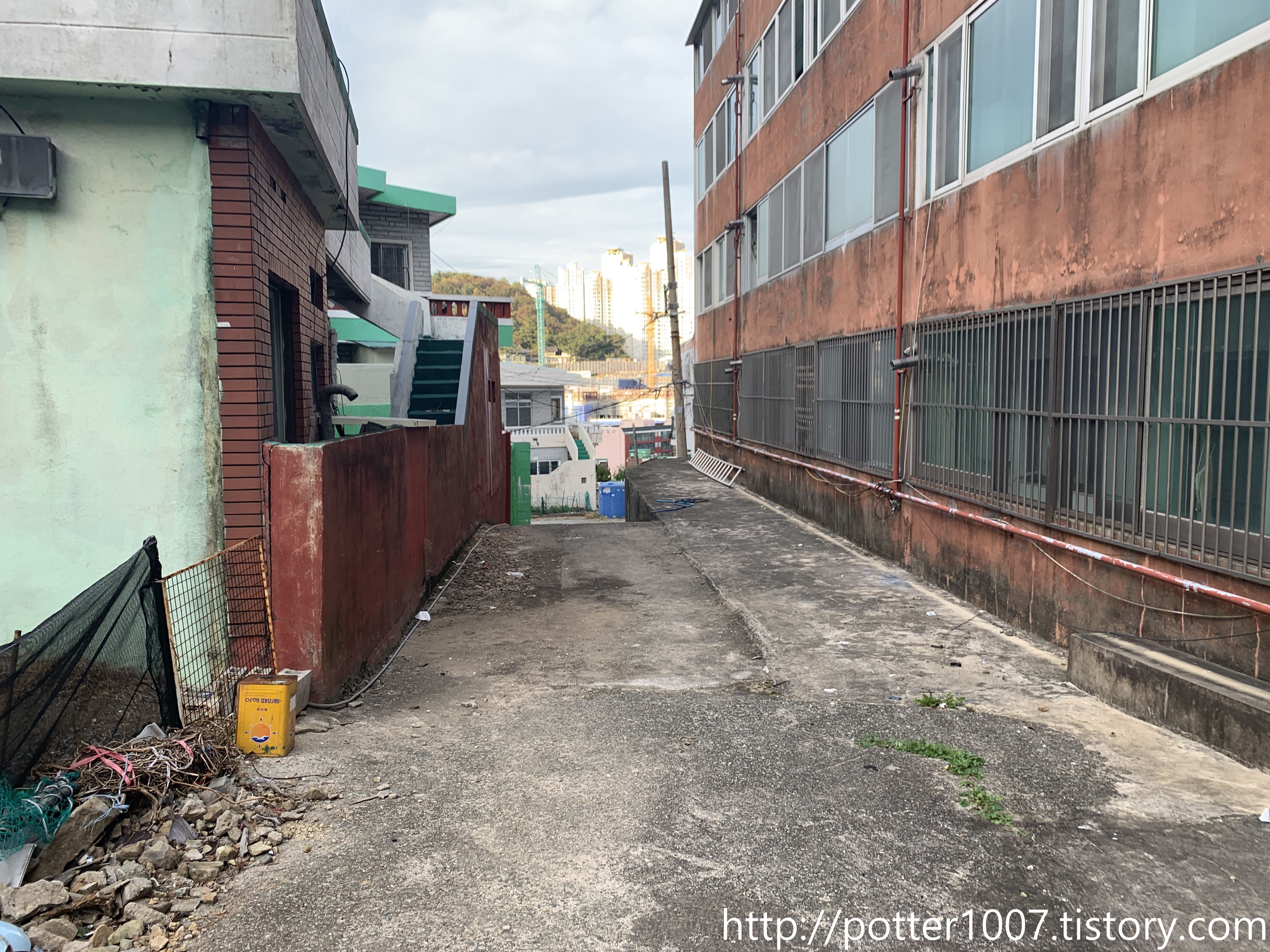 왼편 건물도 폐건물같이 으스스합니다. 이동네도 재개발 예정인가 봅니다.