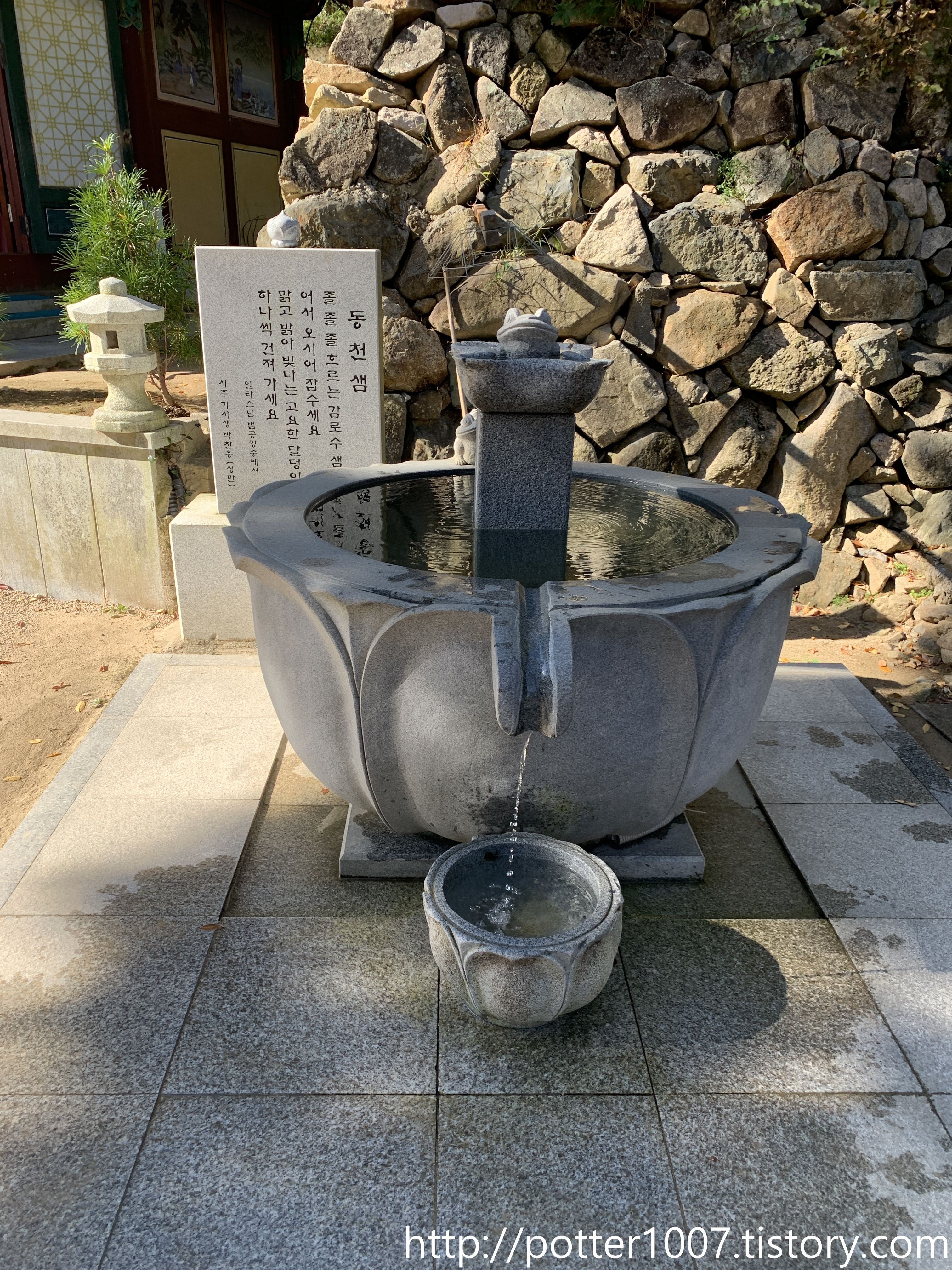 근처에는 동천샘이 있습니다. 먹는물은 아닌듯 합니다. 근데 뒤에는 마시라고 써있네요.