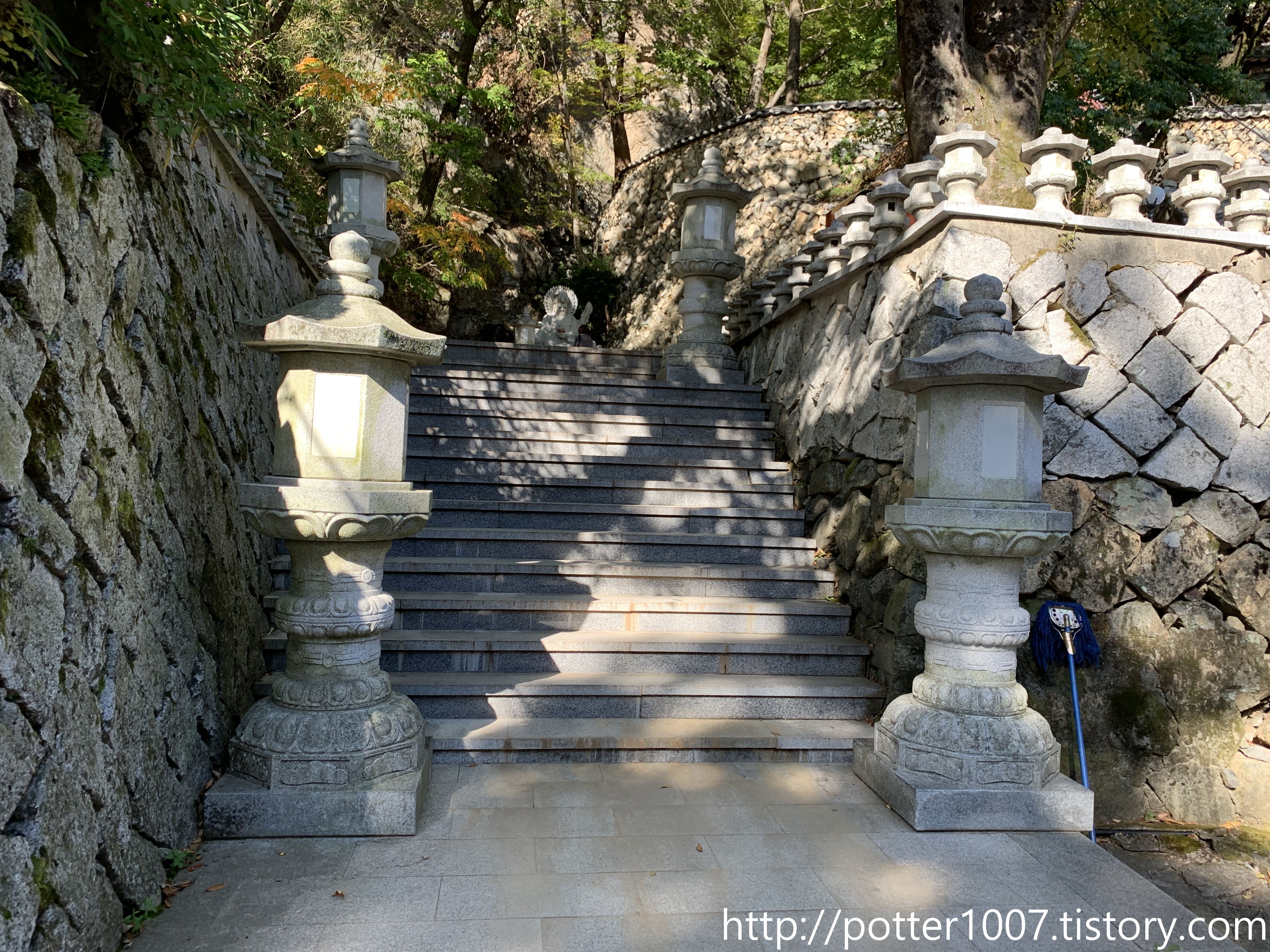 이 계단 아래에 동천 본류가 지나갑니다.