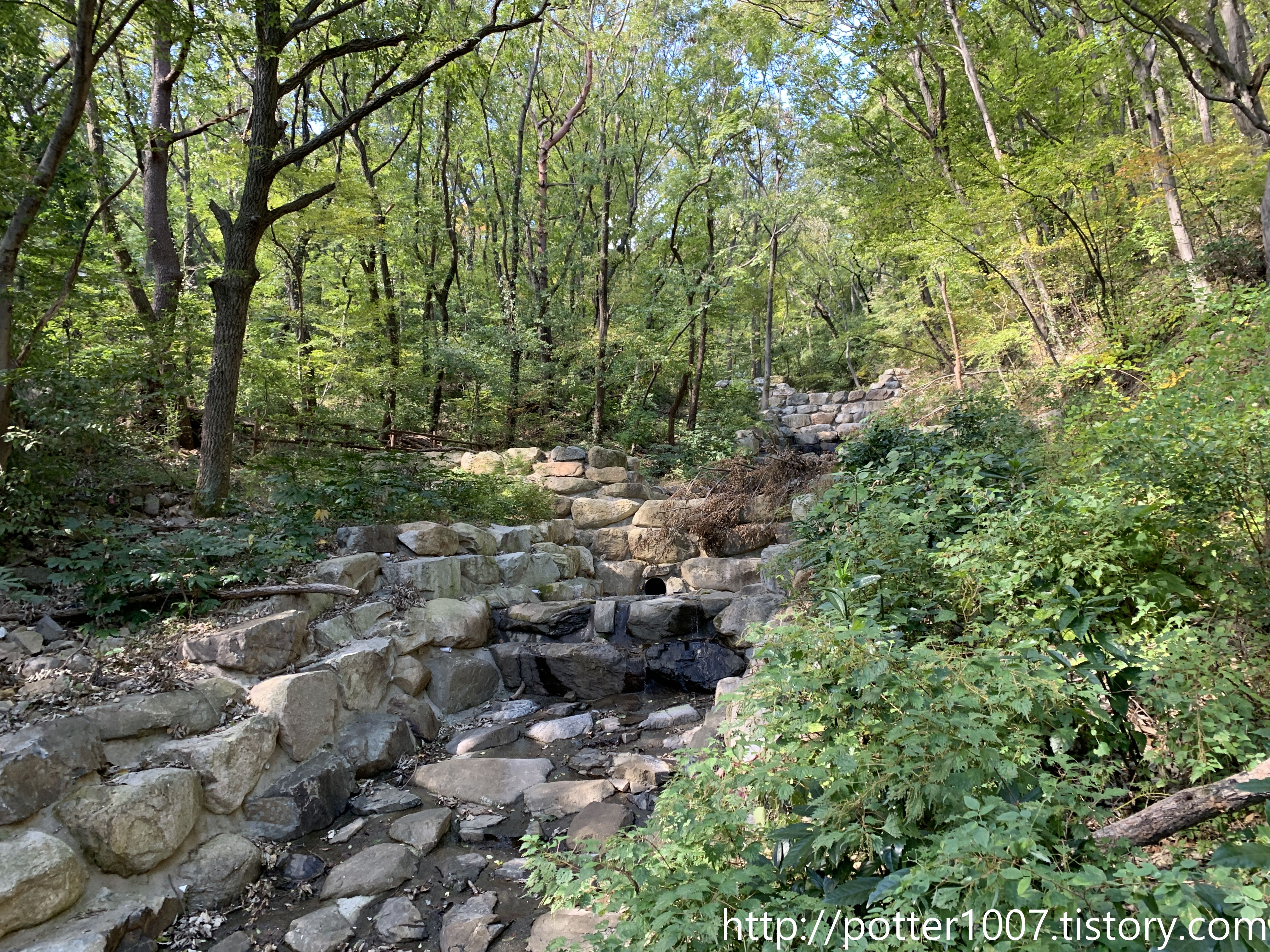 나름 정비가 되어있으나 등산로가 없으므로 하천을 따라가지 않는 이상 상류부분을 보기 어려울 뿐더러 위에는 사방댐도 있습니다.