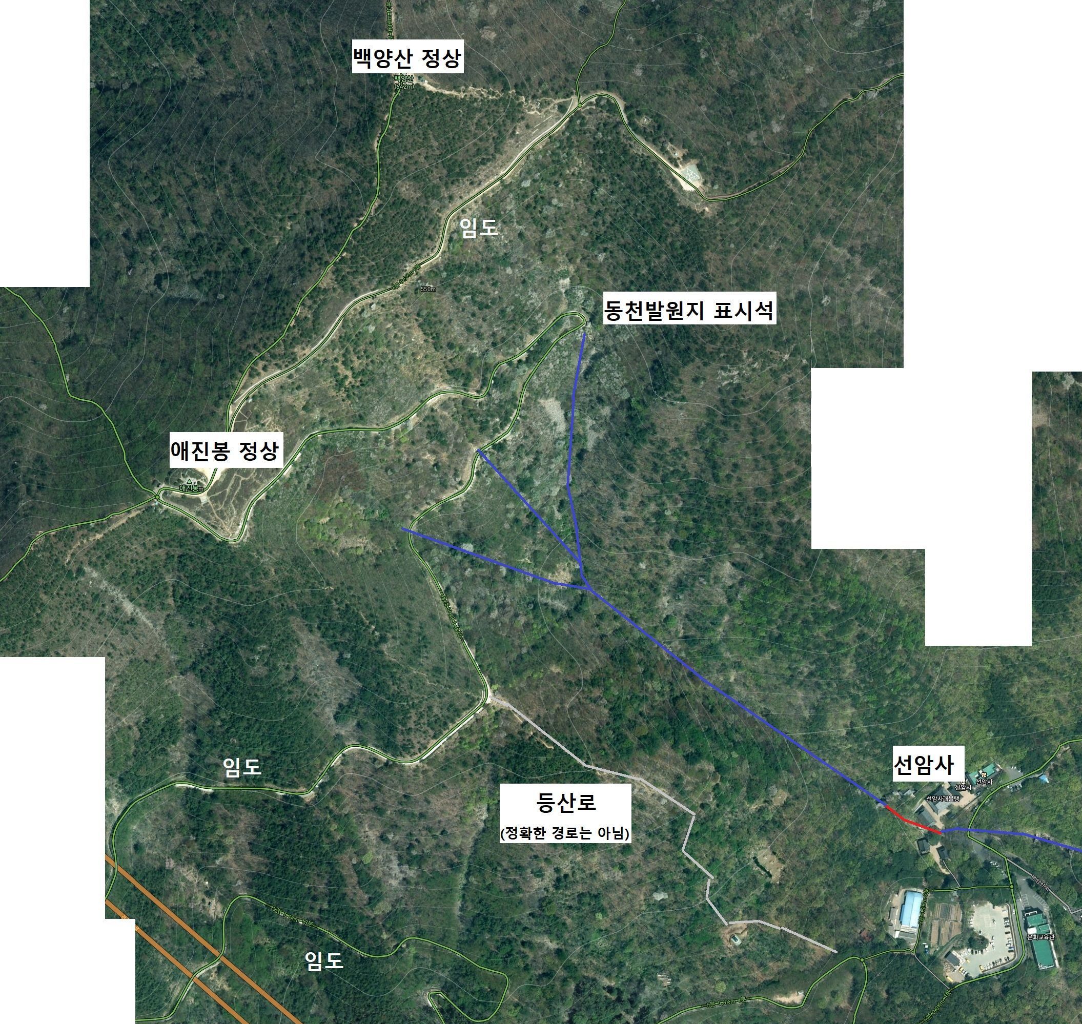 등산로의 대략적인 위치입니다.