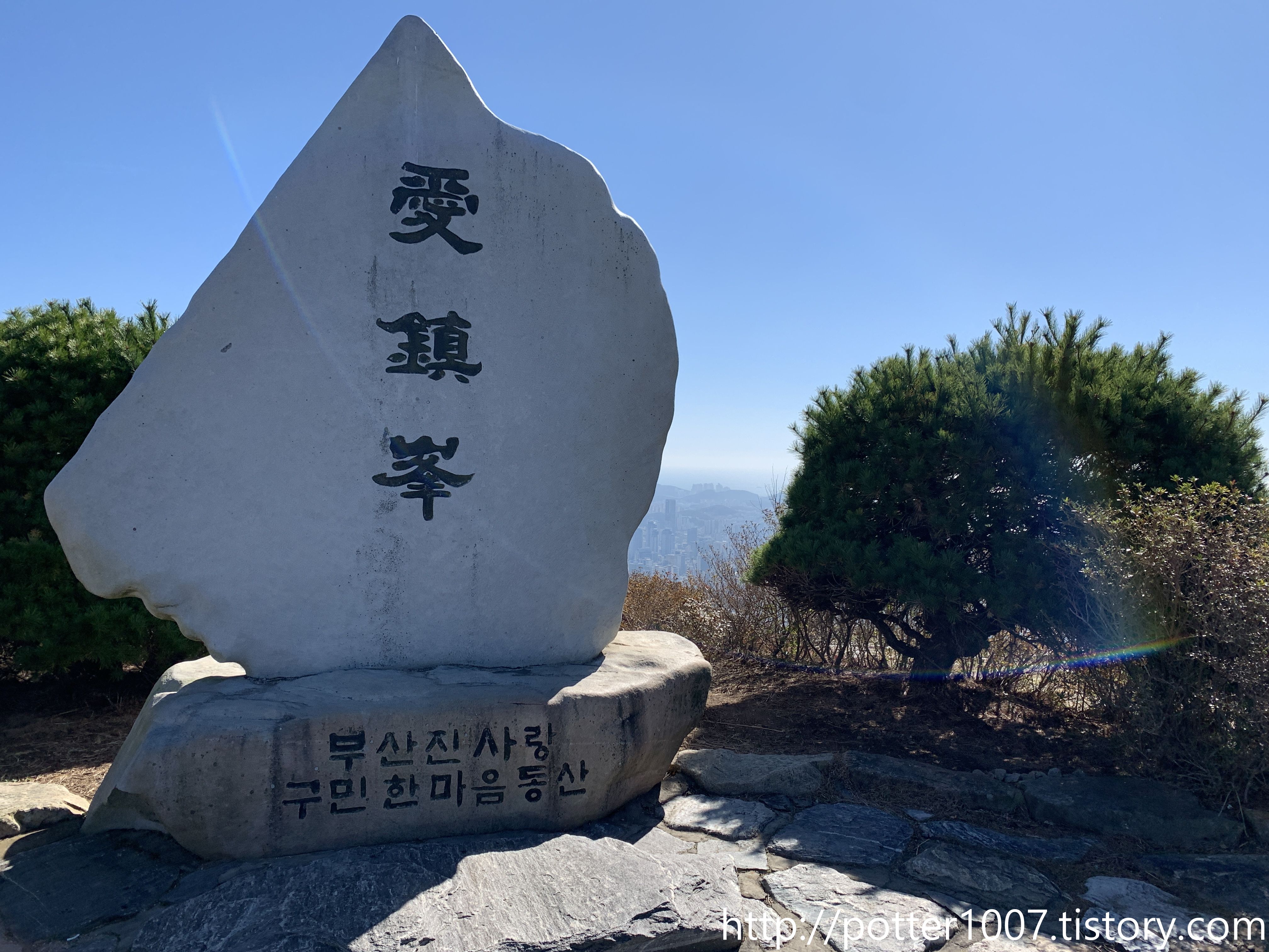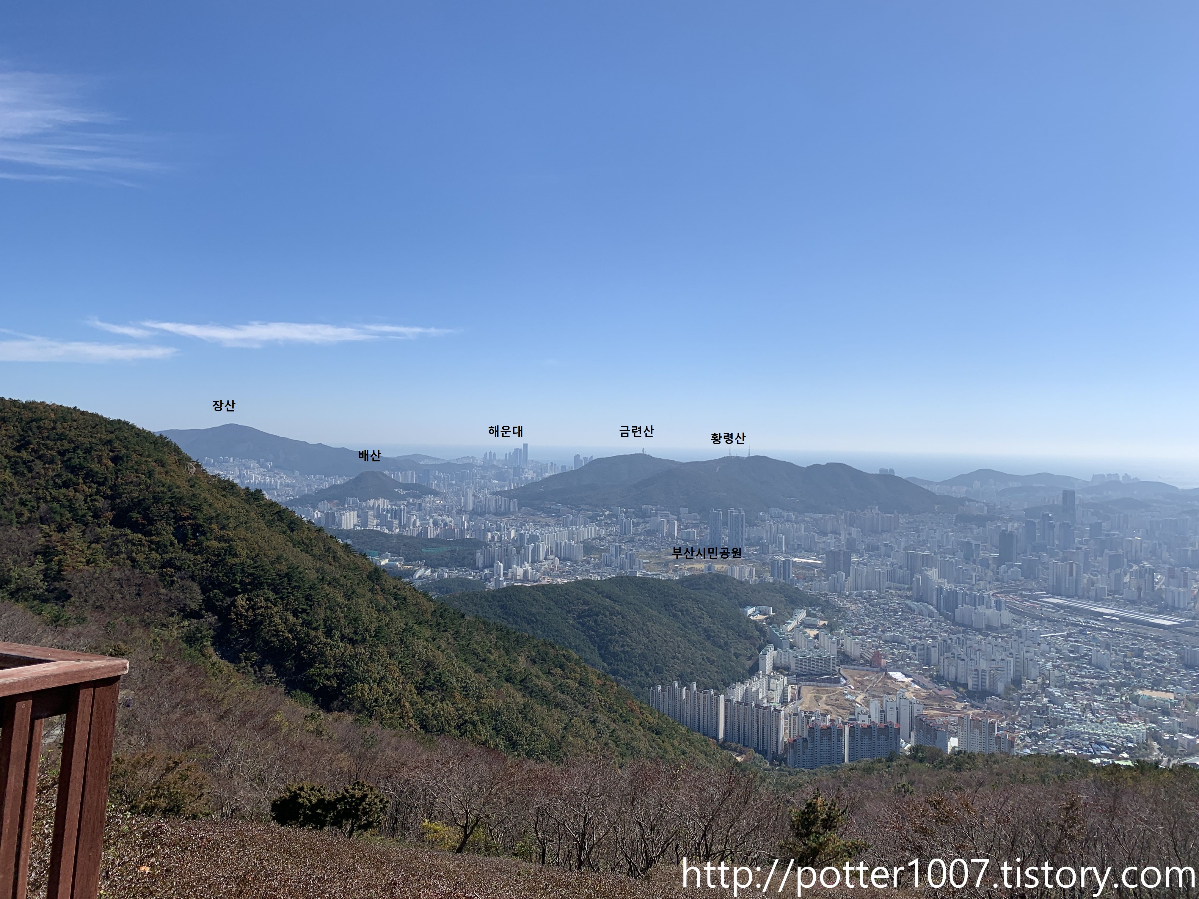 고개를 살짝 틀어 동남쪽으로 보면 해운대의 고층 건물들도 보일 정도입니다.